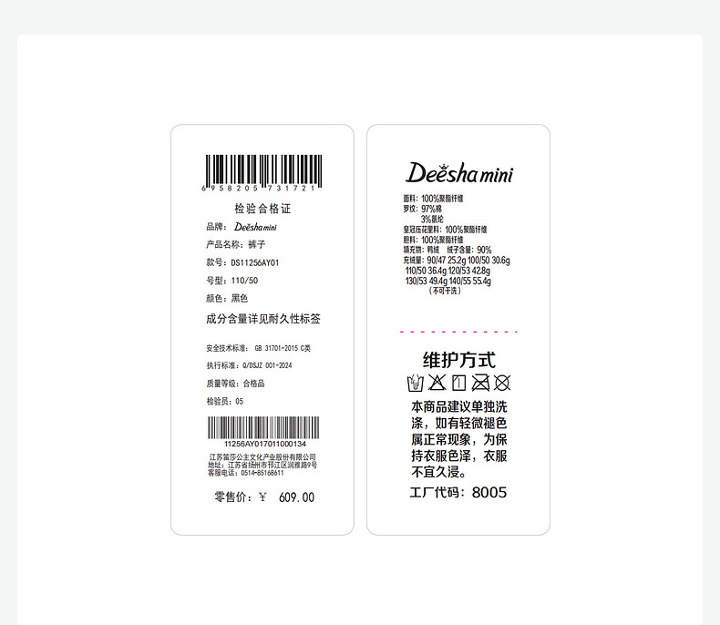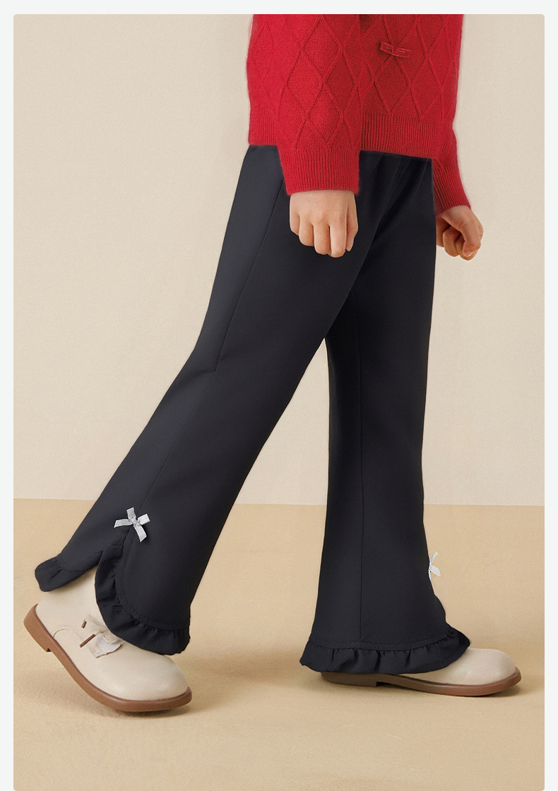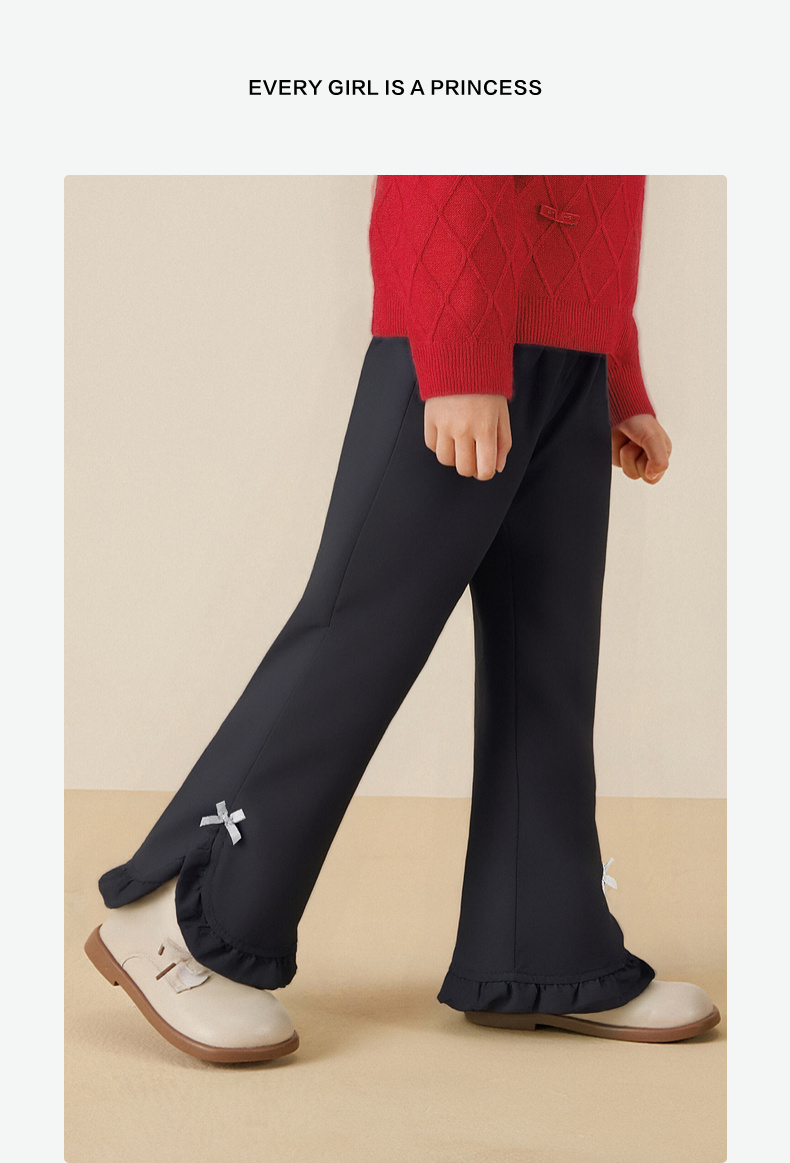 笛莎Deesha 童装女童裤子2025冬新款甜美木耳边微喇羽绒裤