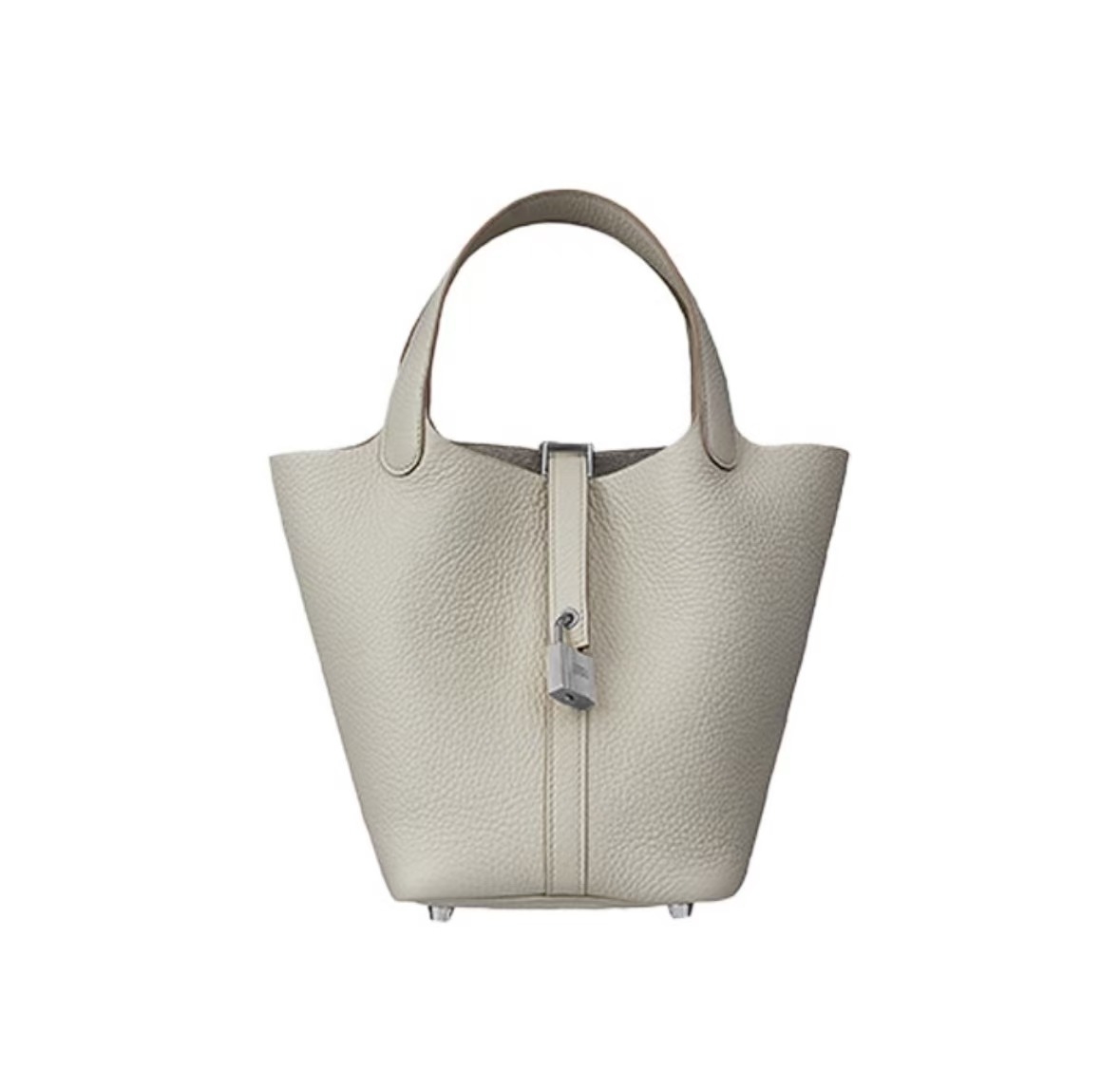 HERMES爱马仕 Picotin Lock 18 银扣 Clemence小公牛皮 菜篮子水桶包手提包 18 女款 8L Beton冰川白