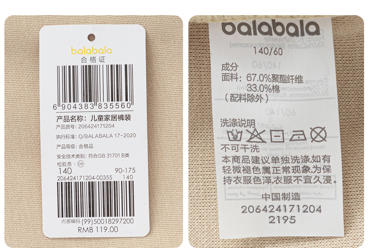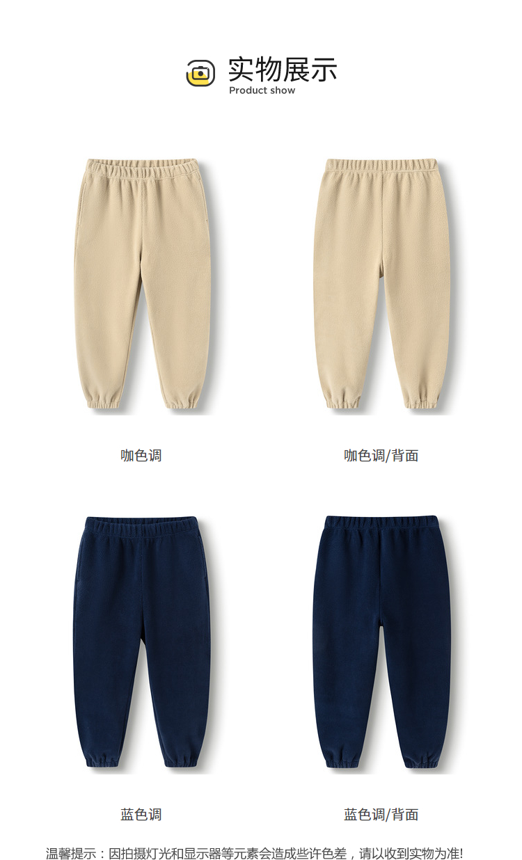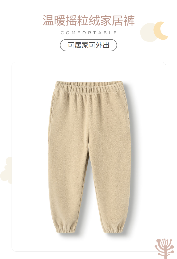 巴拉巴拉儿童家居裤冬季摇粒绒保暖可外穿男童女童纯色亲肤柔软萌