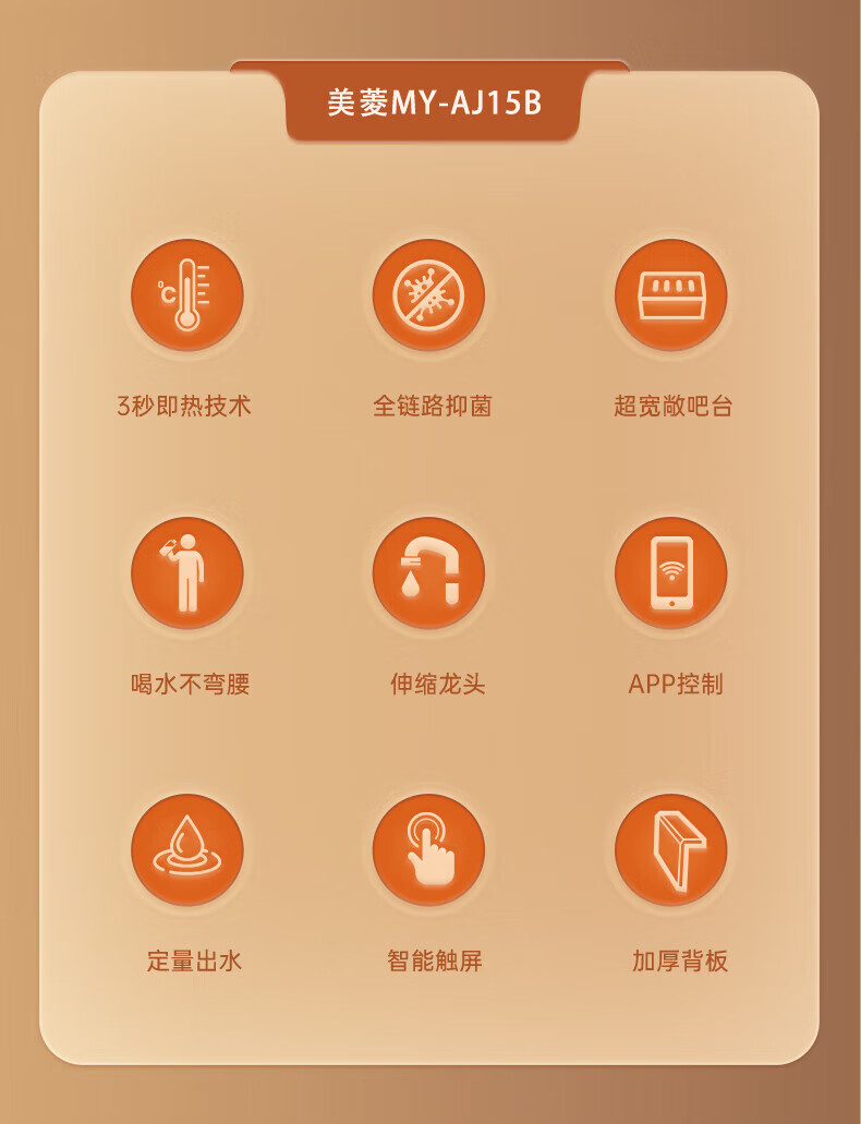 美菱(MeiLing)可调温家用制热制冷饮水机茶吧机 3秒即热技术无需等待 隐藏式下置水桶 MY-AJ15 即热型