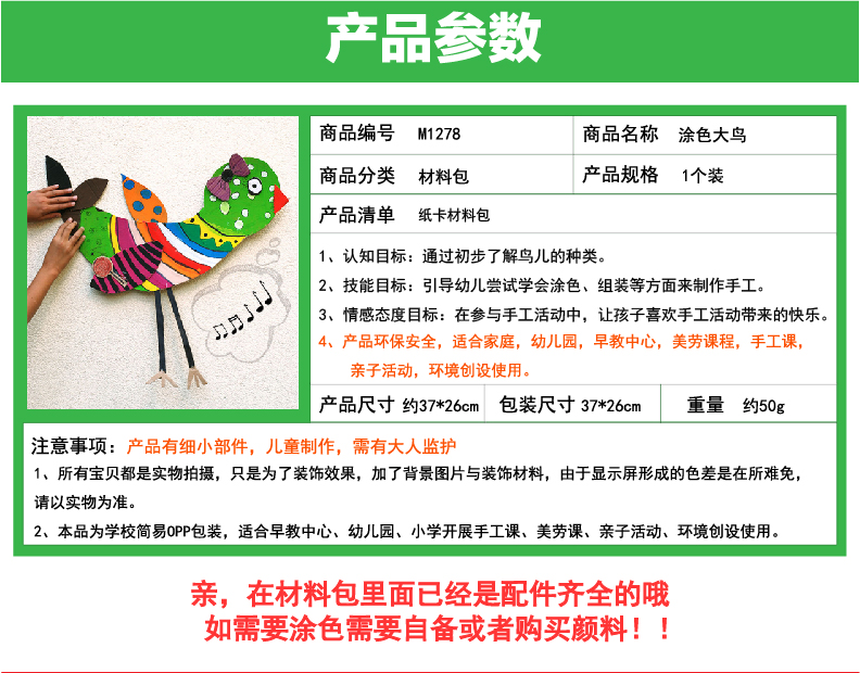 涂色大鸟幼儿园创意美术材料手工DIY制作儿童学画画益智创意自然 商品缩略图0 涂色大鸟幼儿园创意美术材料手工DIY制作儿童学画画益智创意自然 商品缩略图1 涂色大鸟幼儿园创意美术材料手工DIY制作儿童学画画益智创意自然 商品缩略图2 涂色大鸟幼儿园创意美术材料手工DIY制作儿童学画画益智创意自然 商品缩略图3 涂色大鸟幼儿园创意美术材料手工DIY制作儿童学画画益智创意自然 商品缩略图4