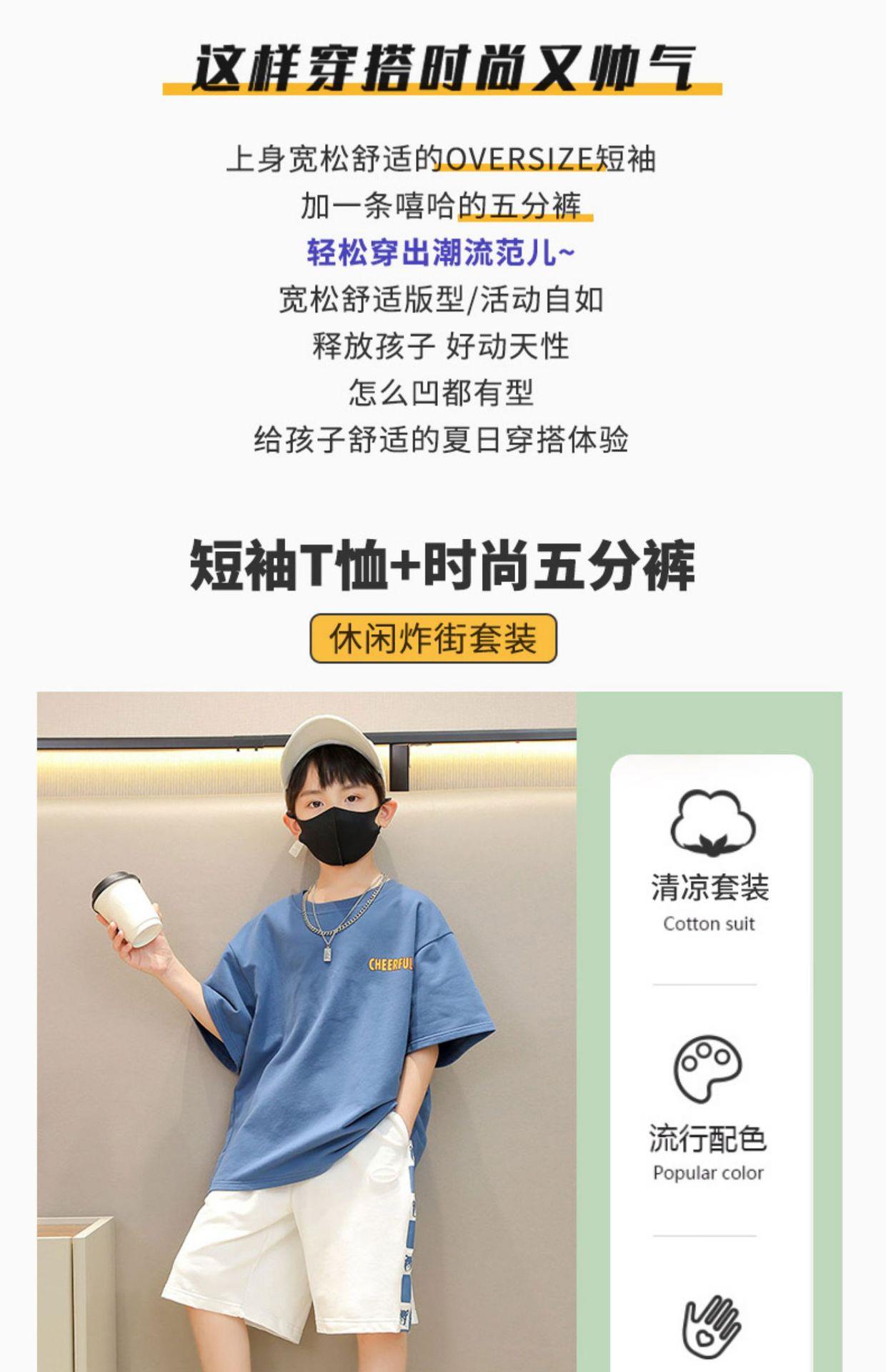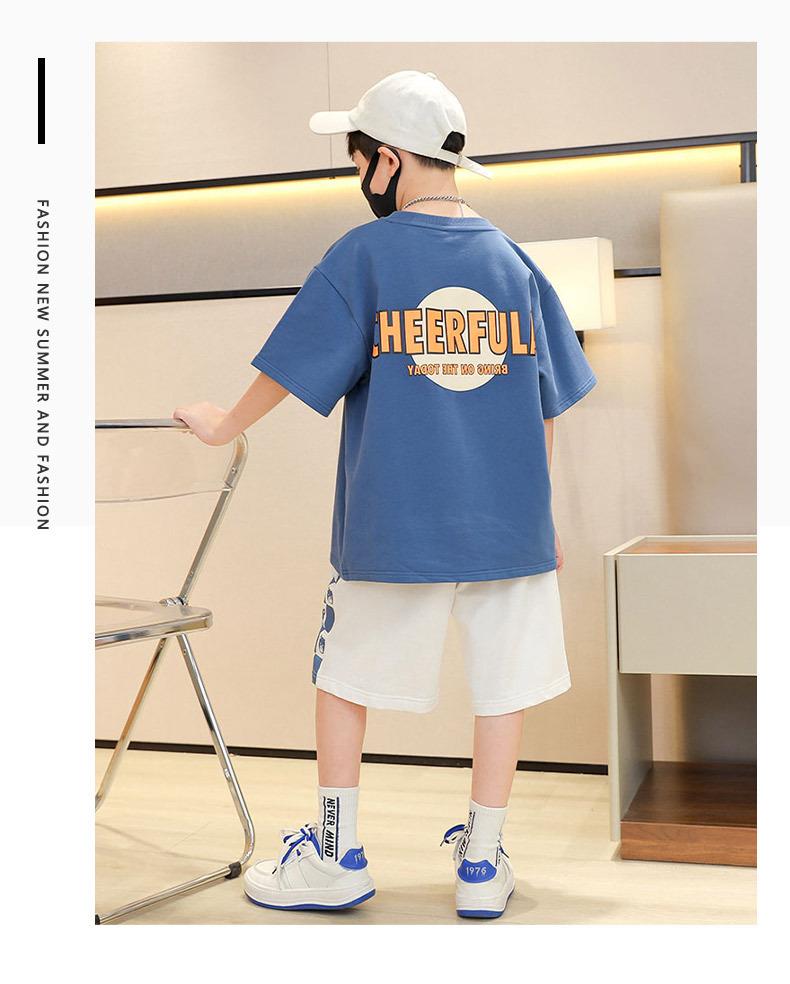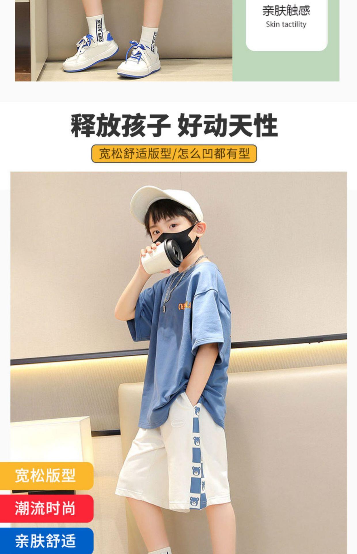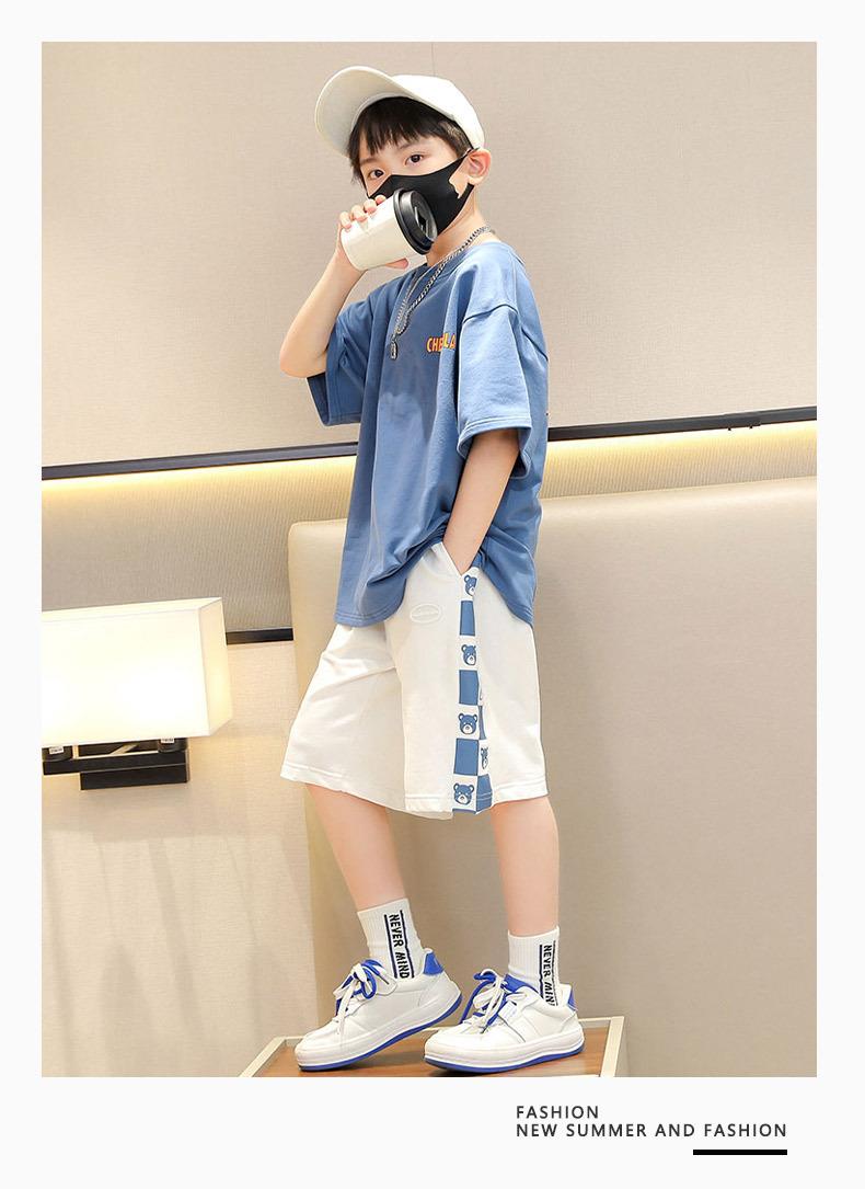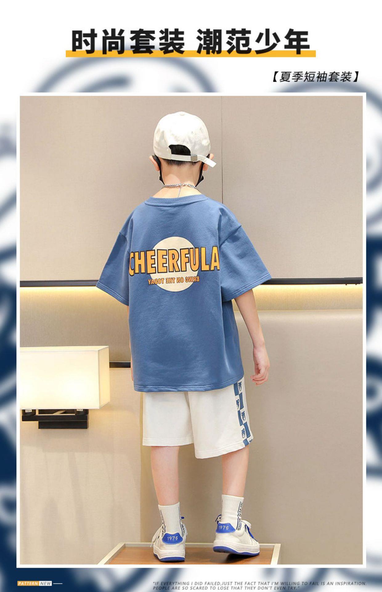 童装男童夏季运动套装儿童洋气时髦短袖短裤两件套2023大童夏装潮