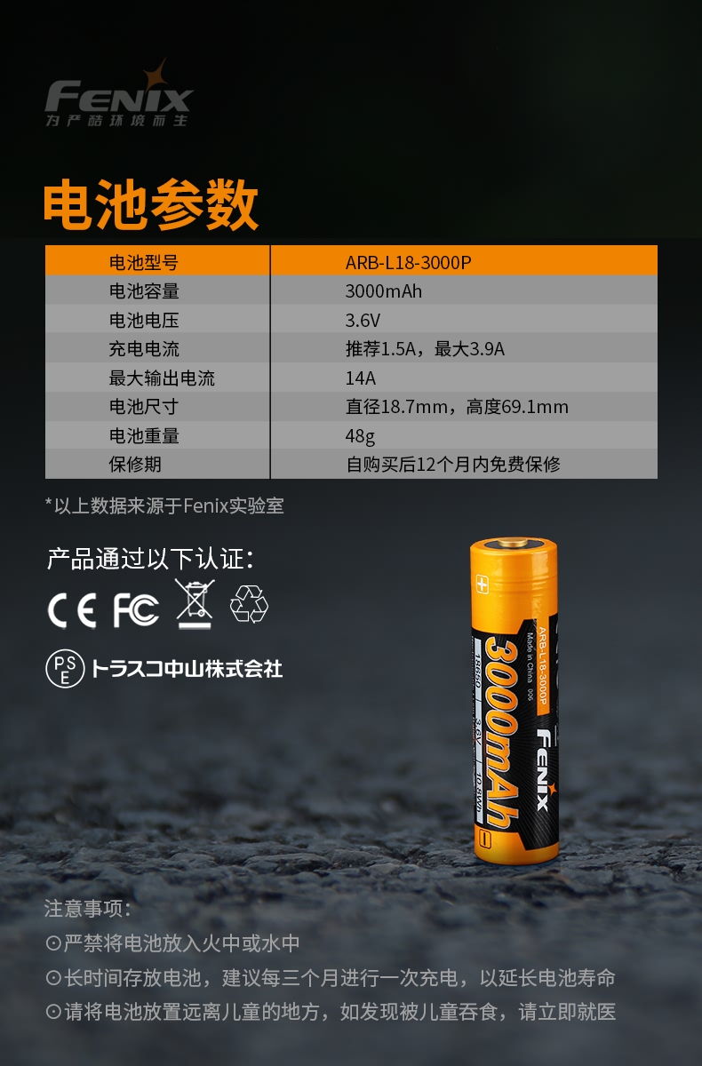 Fenix菲尼克斯ARB-L18-3000P TK35UEV2.0手电18650锂离子动力电池