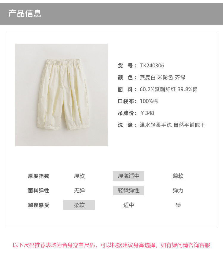 【马克珍妮 芦芙】女童优雅舒适宽松气球裤240306