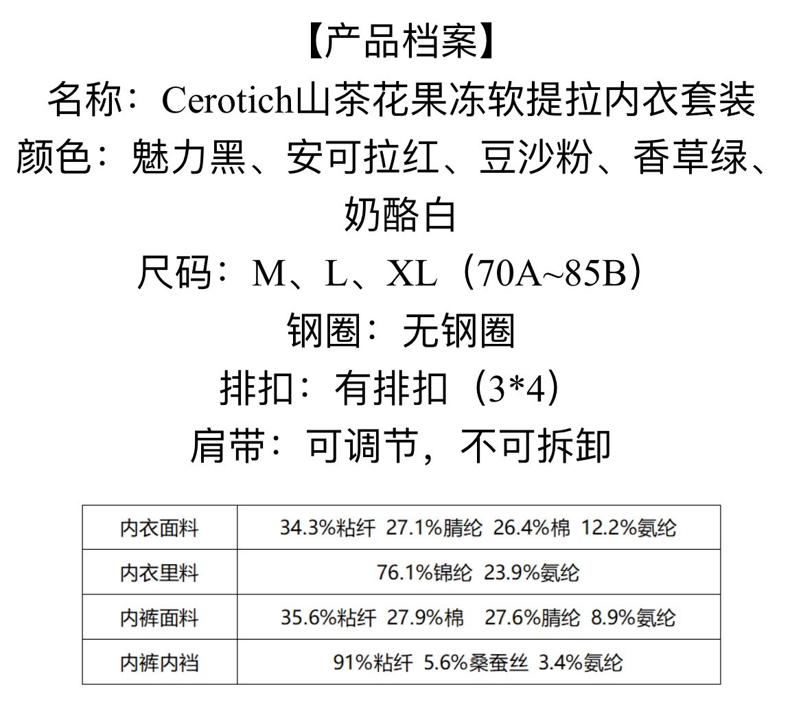 内衣+内裤一整套!冬天穿上不想脱了!~山茶花果冻软提拉内衣套装