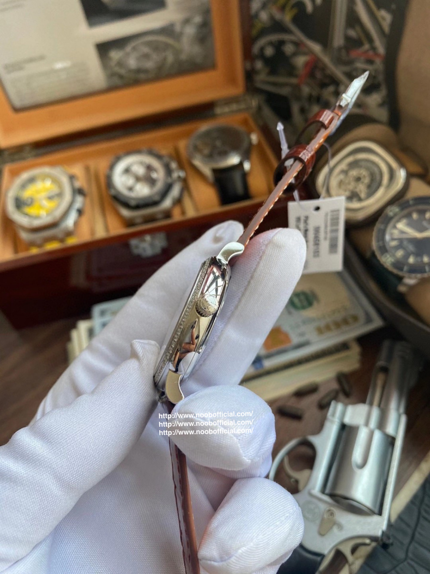 V7厂七星怒荐佳作之女款柏涛菲诺 极致典雅 为行业再添一款顶级女表1.V7厂女款波涛菲诺,系行业同款唯一敢于呈现真假对比评测的版本,修正市面现有版本的所有不足,其结构以及细节均按原装逐一复制,拆解后与原装完美保持一致,真正完美克隆。2.此枚腕表简约大气,高贵精致,V7厂字面以及指针颜色,纹理均与原装难辨雌雄,其还原程度着实叫好,且其仍配备通透度同步原装的进口蓝宝石镜面使其观感完美同步原装。V7厂细节把控向来严谨,此款字面的颜色,太阳纹以及刻度效果放大来看亦无可挑剔,而其出色的日历印刷工艺也丝毫不减,与正品保持一致。3.高难度高成本字面,V7厂此款字面其刻度外围钻钉令腕表奢华感倍增,其难度在于采用原装同样的底座四爪镶嵌工艺,而且采用的是顶级的带标施华洛晶石,明显区别于市面上普通底座贴锆石的做法,其成本是市面一般版本的数倍。效果也不可同日而语!4.V7厂仍采用原装同源纯进口瑞士全新ETA2892A2机芯,其结构同原装保持一致,性能也与原装同样出色,精准恒久,无返修烦恼!V7亦同时提供亲民版的海鸥2892稳定版供选,其外观细节均与瑞士版本一样。把头,把芯的外形以及尺寸都是经过专业定制,同步原装的。5.得益于使用同步原装的2892机芯,又有正品开模加持,V7厂此表的所有配件可与正品互换,这是市面其他版本所不能及的。其内影,字面和指针的高度均完美吻合原装,解决了部分市面9015机芯版本此处的明显破绽以及缺憾!且其调时上链手感完美吻合原装,调历方向亦是同步原装的逆时针调法,避免了又一大破绽。密底设计又给腕表完美度加分,V7底盖拉丝以及刻字工艺到位,完美还原。6.V7厂顶级表壳制作工艺,其直径,厚度,线条以及弧度100%温和原装,倒角打磨亦十分到位。各角度均无死角。7.底盖内部不偷工减料,刻字同步原装,包括底盖边缘线条细节也不放过,完美还原!其拆分结构与原装毫无偏差,可完美互换。8.V7厂沿袭顶级皮带工艺标准,采用高成本美洲鳄鱼皮,车线工整,压字清晰,底皮亦采用进口法国牛皮,质感给力。亲民海鸥版本搭配顶级工艺法国进口小牛皮。表带颜色可供选择。针扣按原装开模,同步了刻字,弧度以及打磨。十分精致。9.表壳尺寸数据表现完美,V7厂与原装无差。10.V7厂此款波涛菲诺上可见的均为世界最顶级的120切面施华洛世奇锆石,每一颗都纂刻有SWAROVSKI ZIRCONIA(用放大镜可见,行业唯一,成本较普通版本贵数倍),完全符合国际钻石评级权威GIA在评定钻石切割等级的综合标准,凭借无可比拟的璀璨光芒,可媲美钻石!整体效果已无限接近正品!可谓用心良苦,超高性价比带来的正品既视感为其点赞!V7厂此款女表系行业为数不多的顶级女表之作,其超高颜值,精细做工,可为怒荐的一款女士腕表神器!堪称经典!