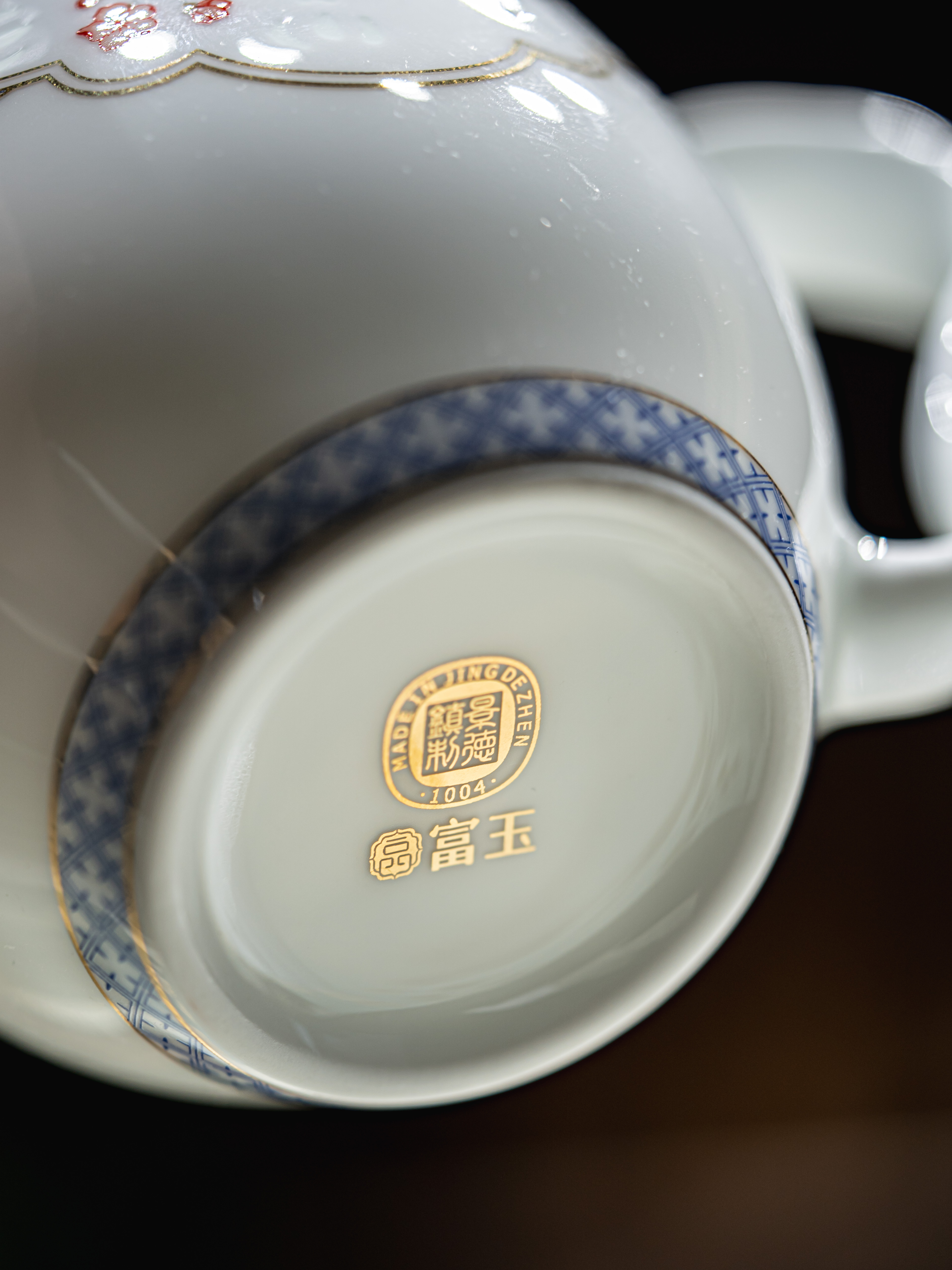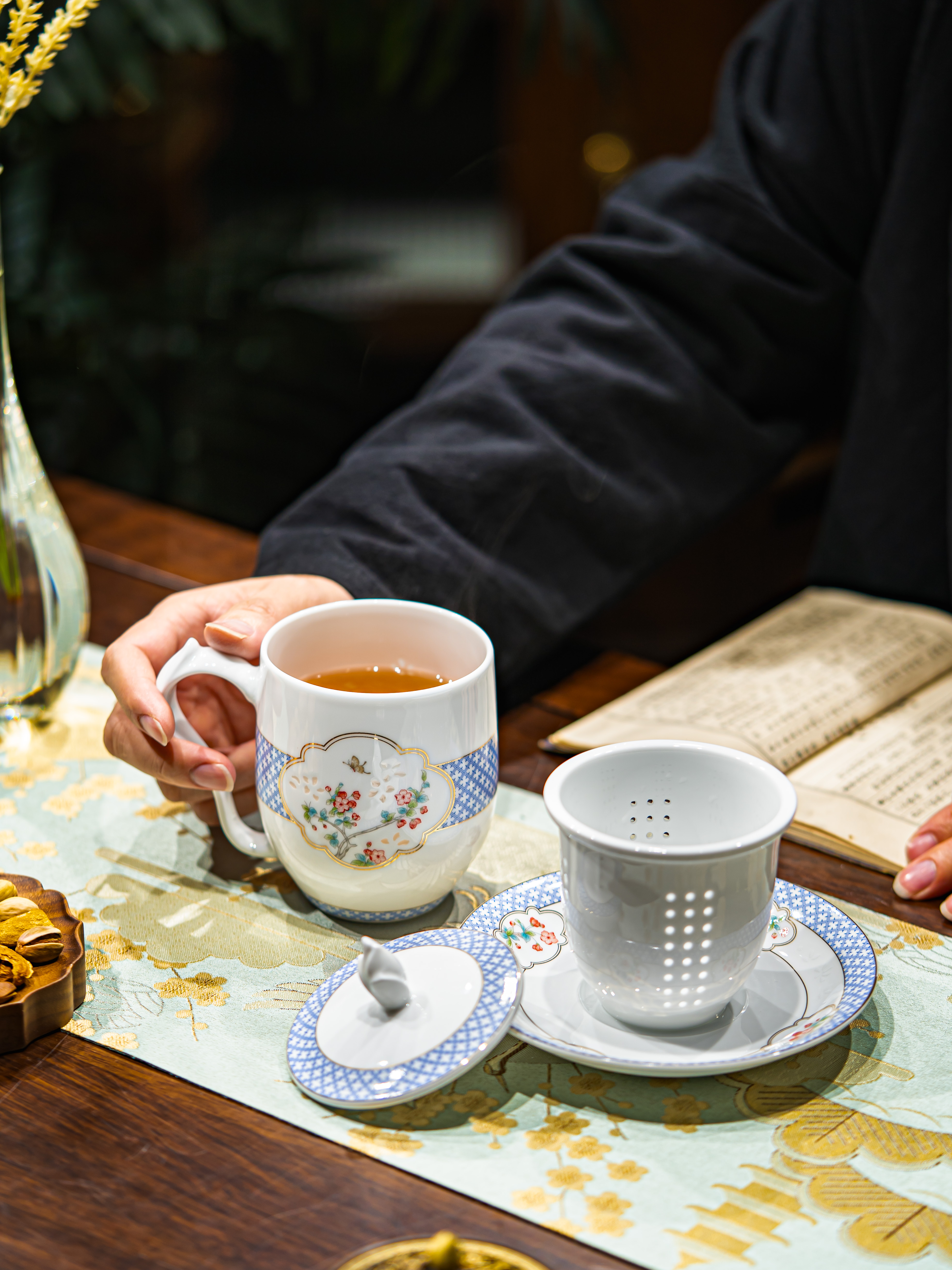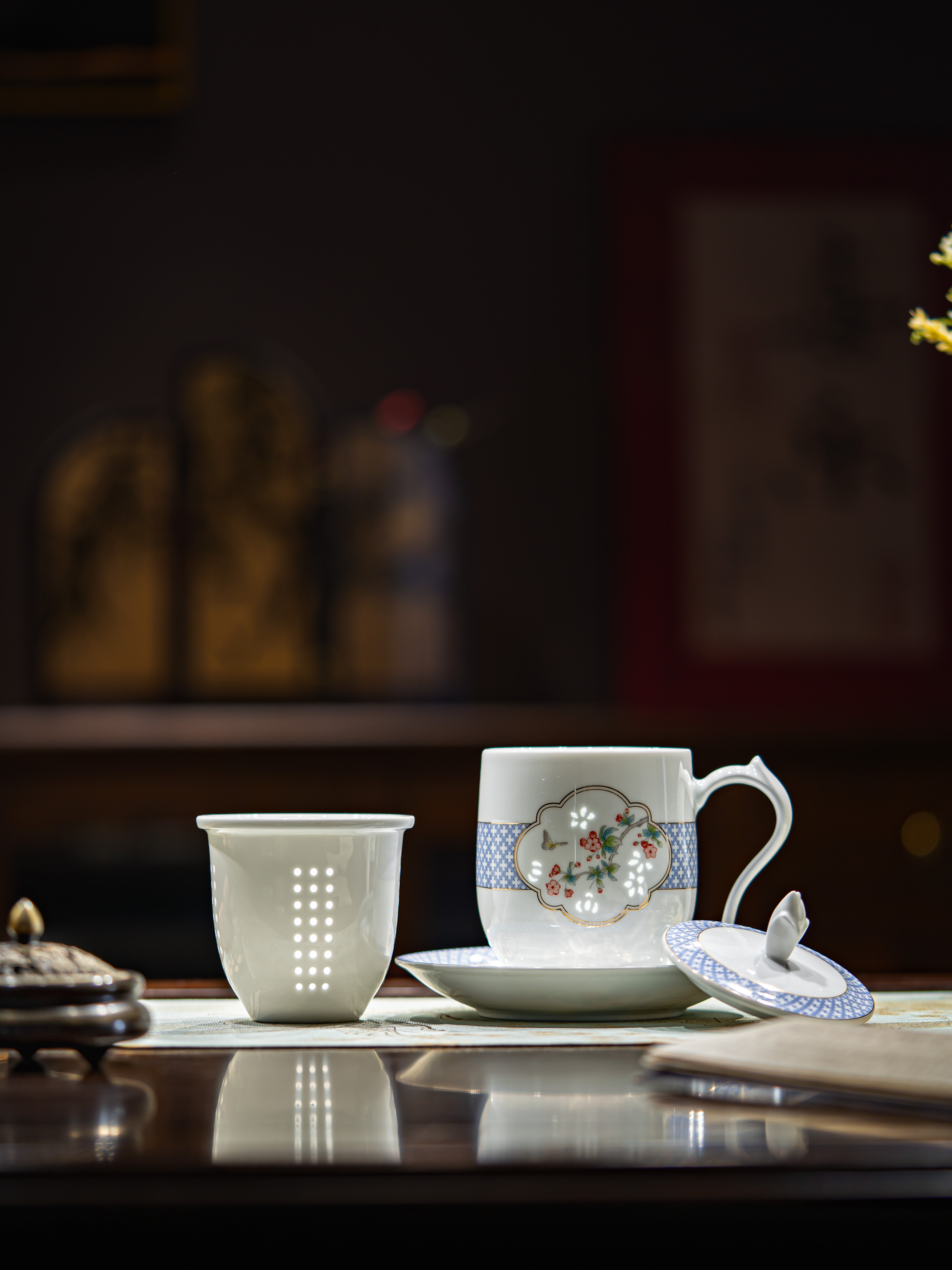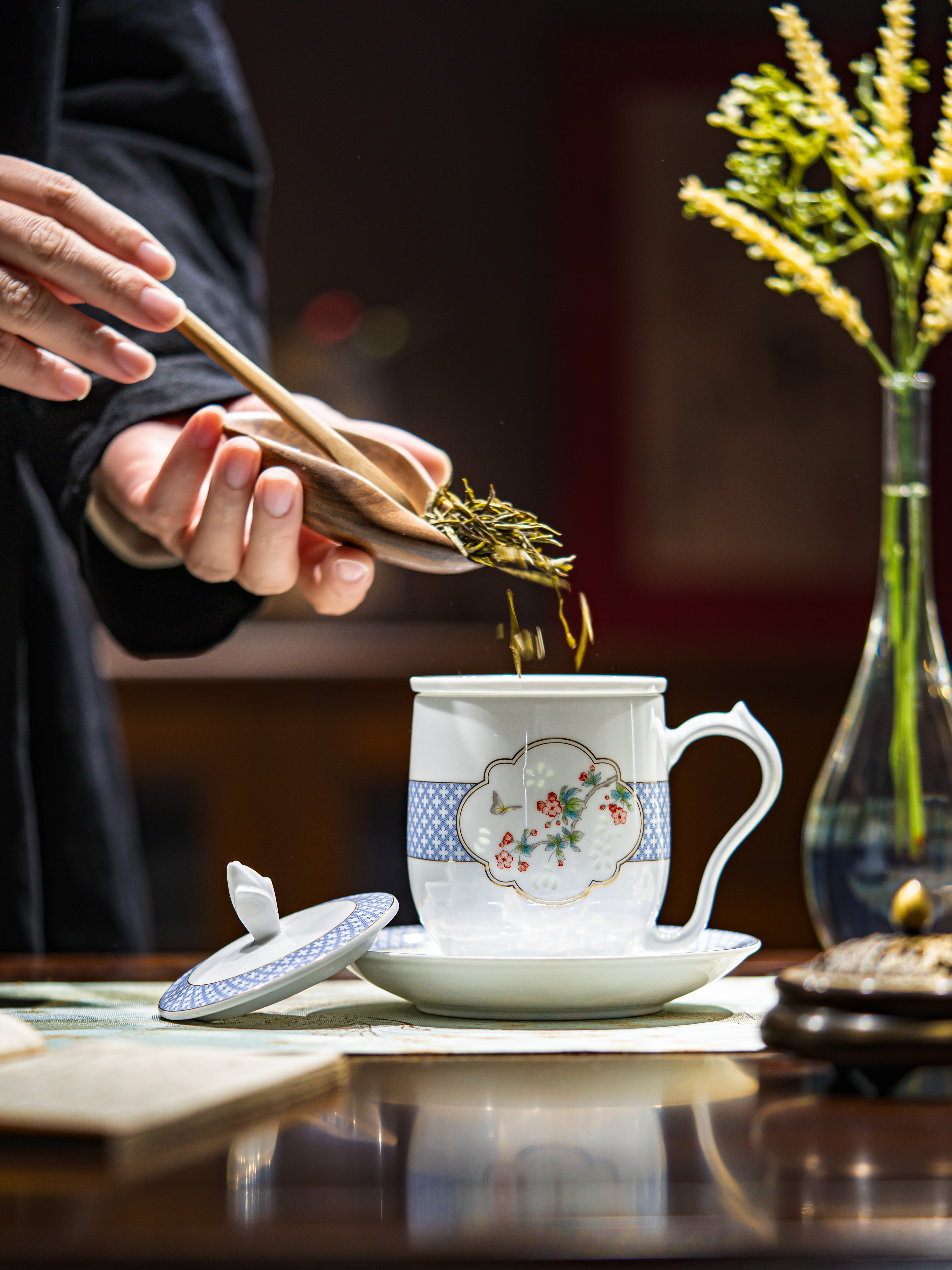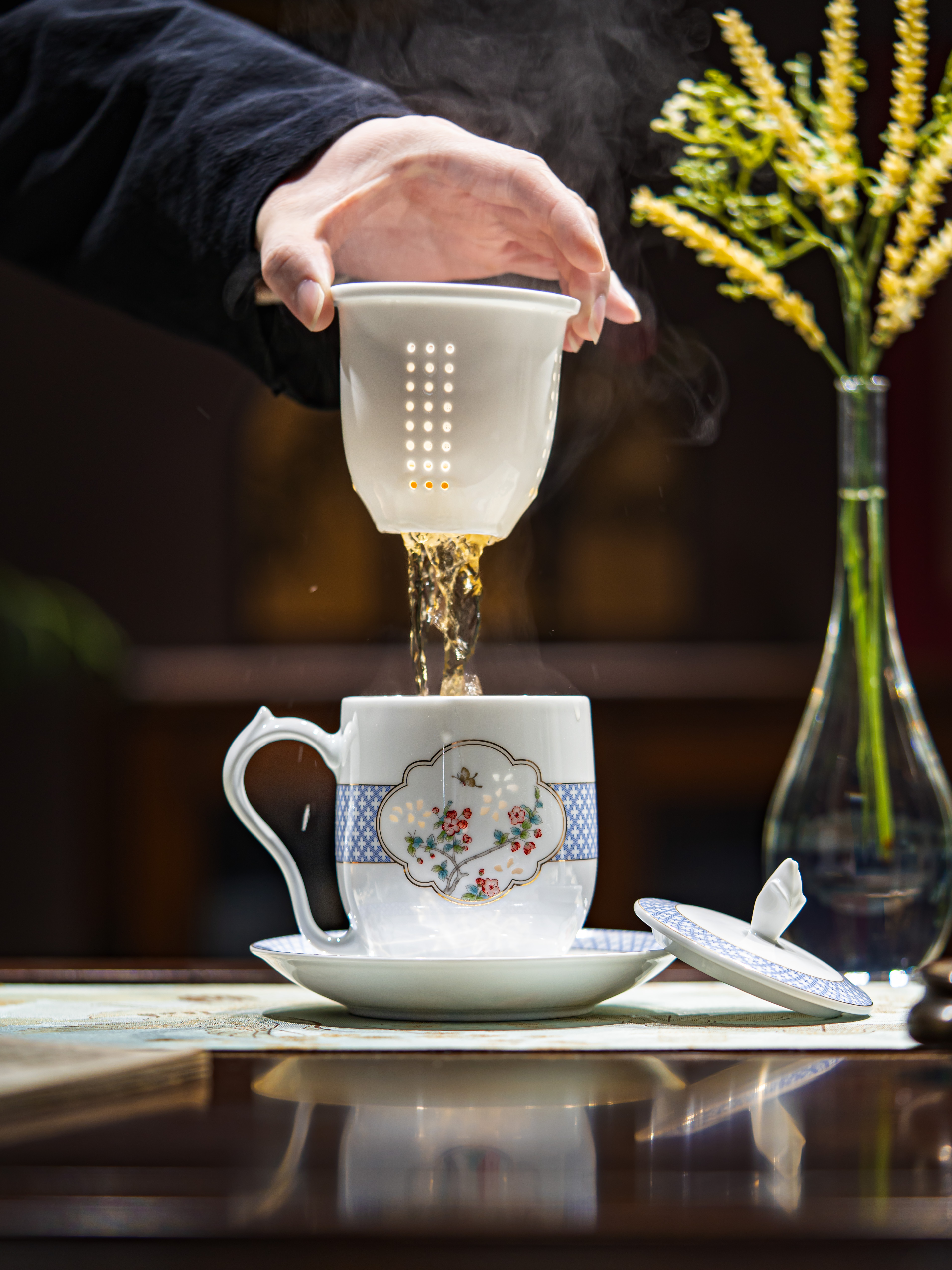 新品 富玉 | 景德镇陶瓷海棠雅韵茶漏杯带盖水杯