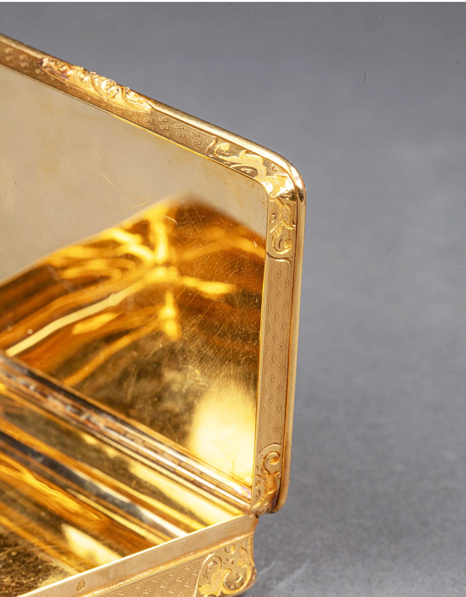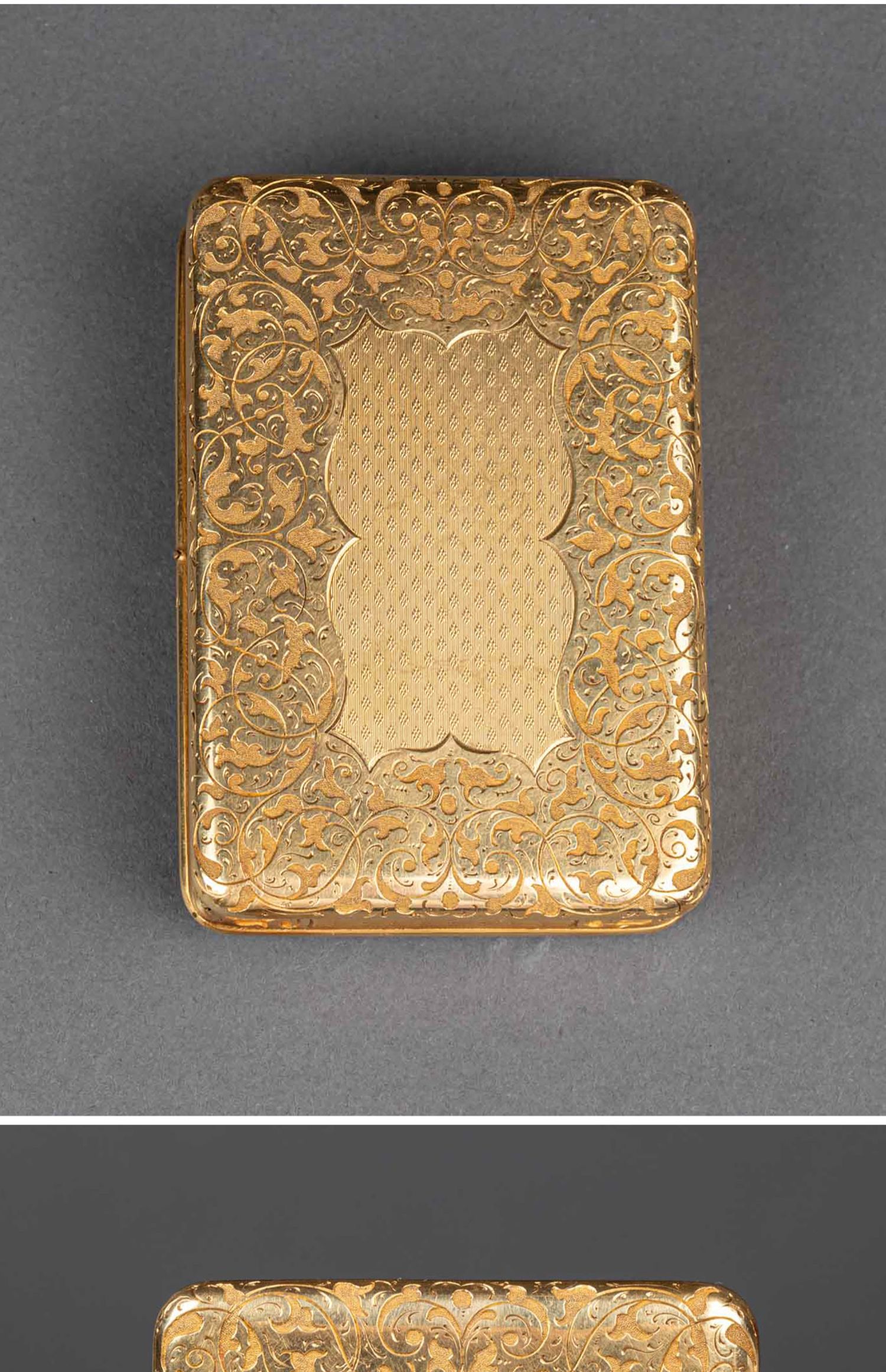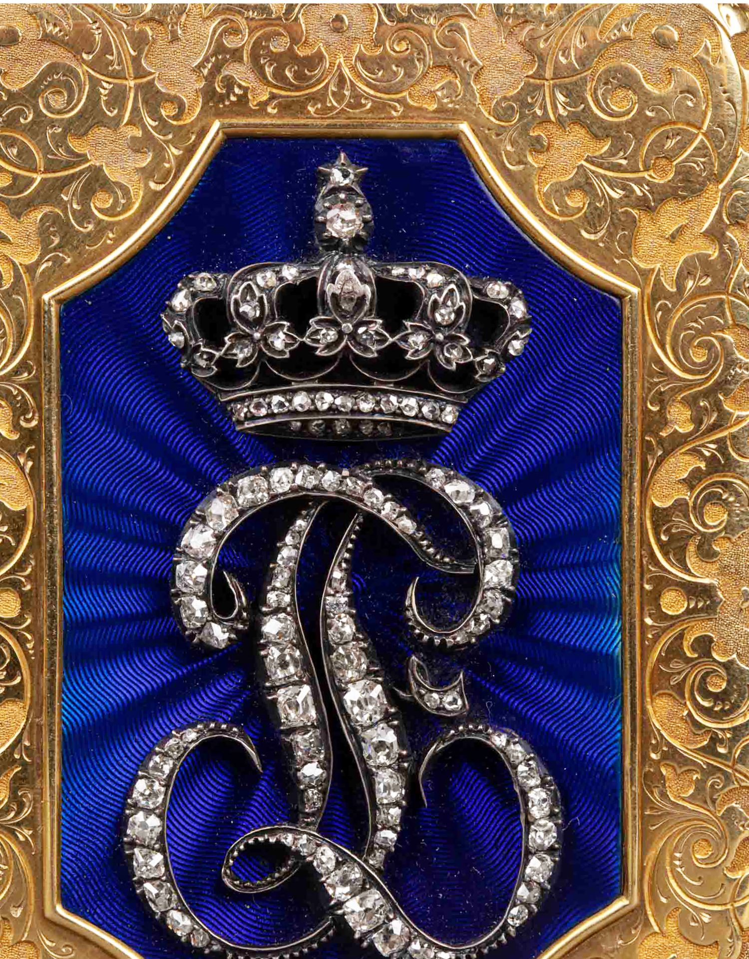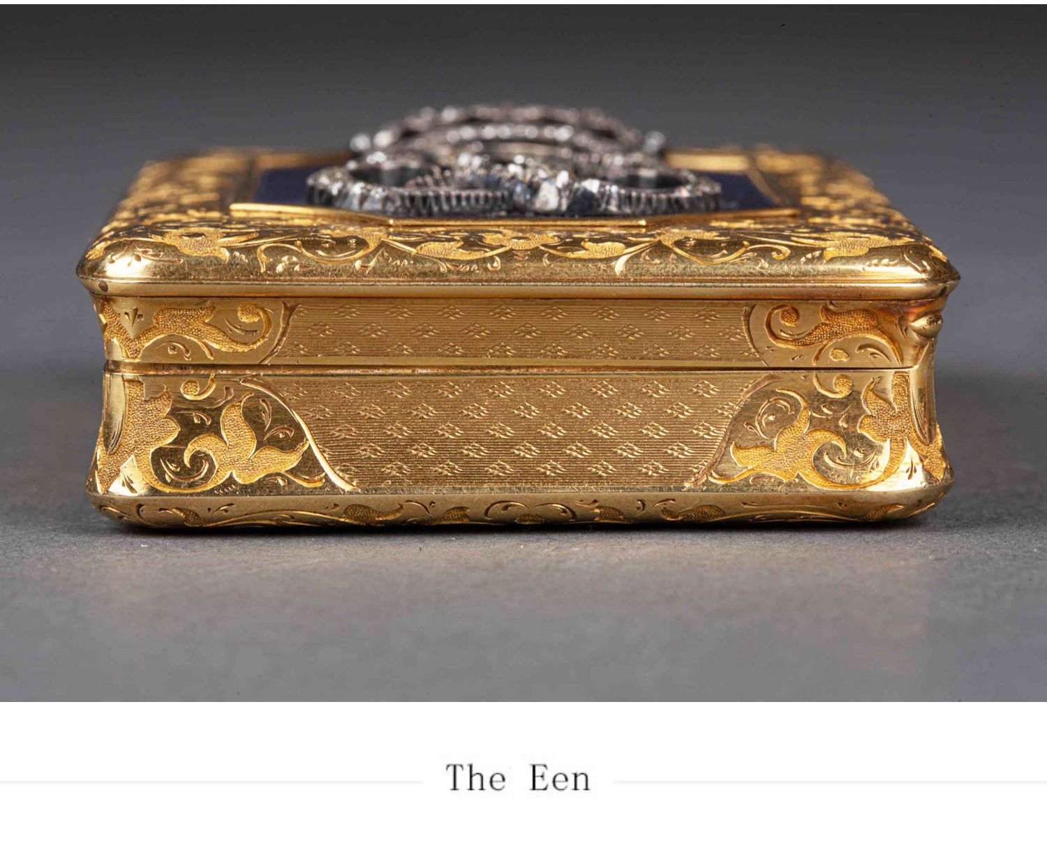 独角鹿西洋古董法国18K金镶嵌钻石玑镂纹珐琅装饰方形鼻烟盒