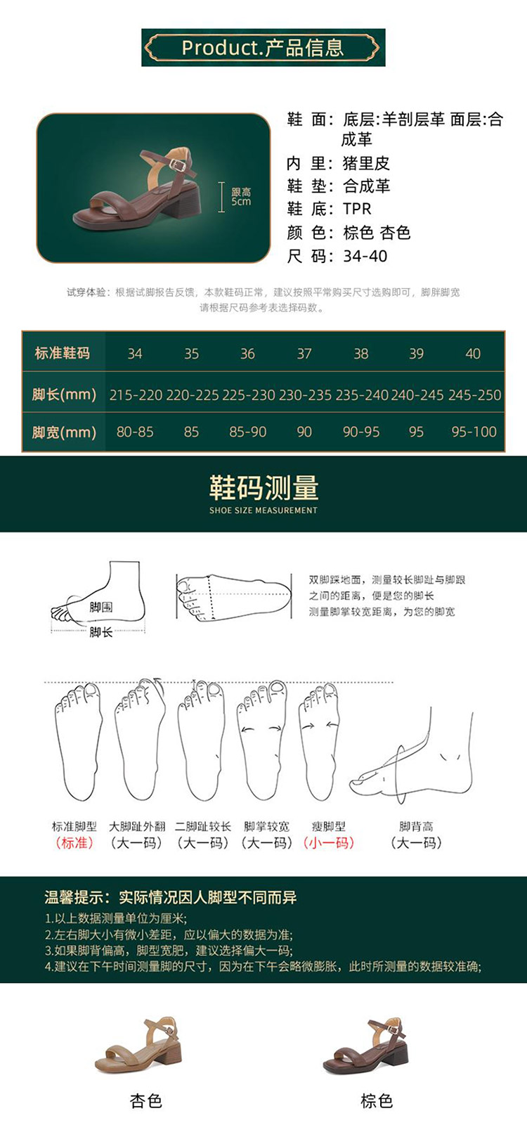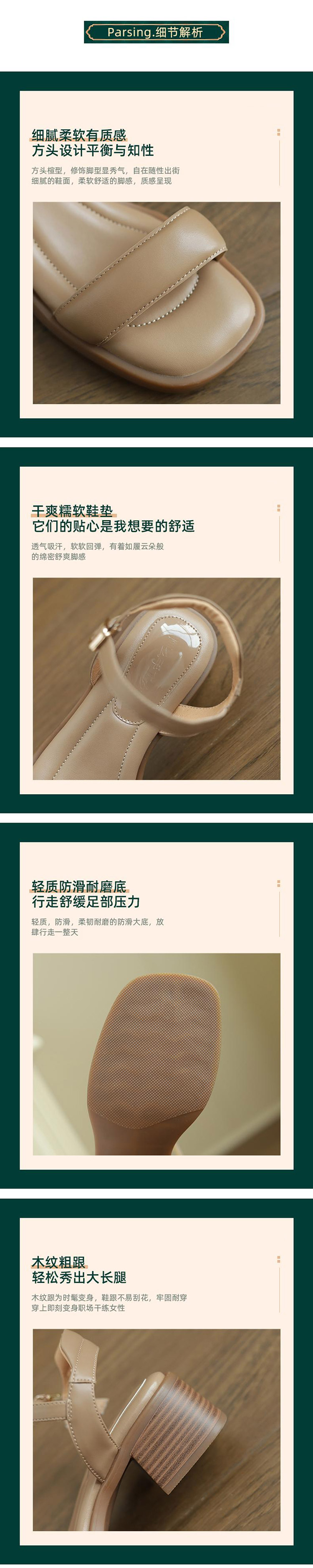 【单鞋】露趾一字带真皮粗跟凉鞋女夏软底复古风2024新款百搭 商品图2