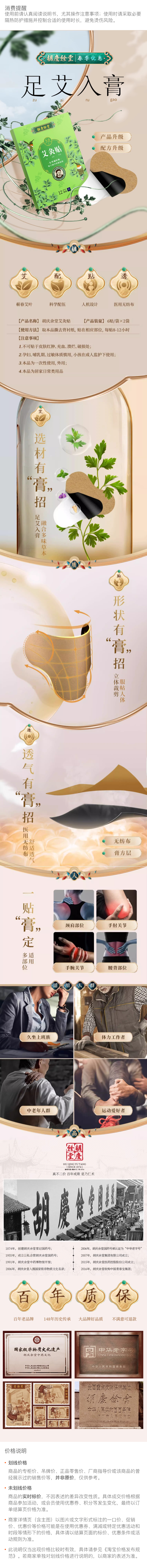 胡庆余堂艾灸贴12贴/盒 颈椎贴膝盖肩颈艾草贴透气热敷(dbxb)