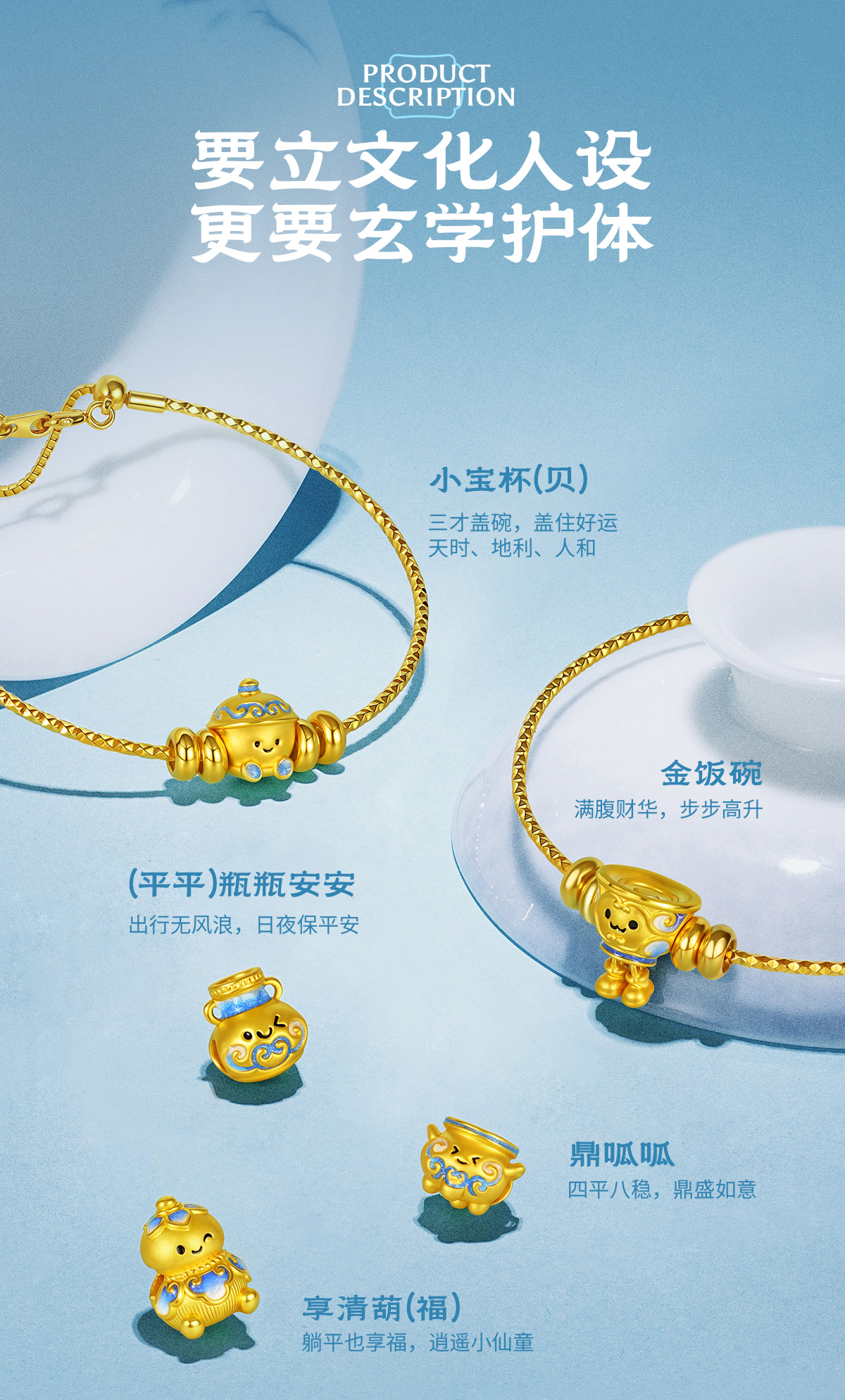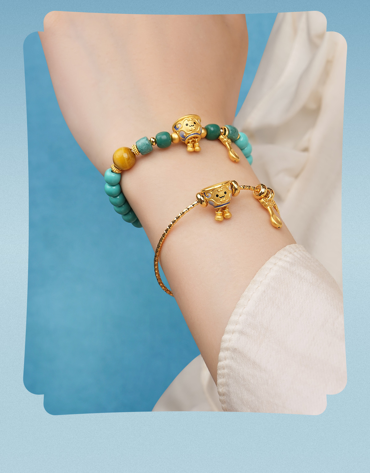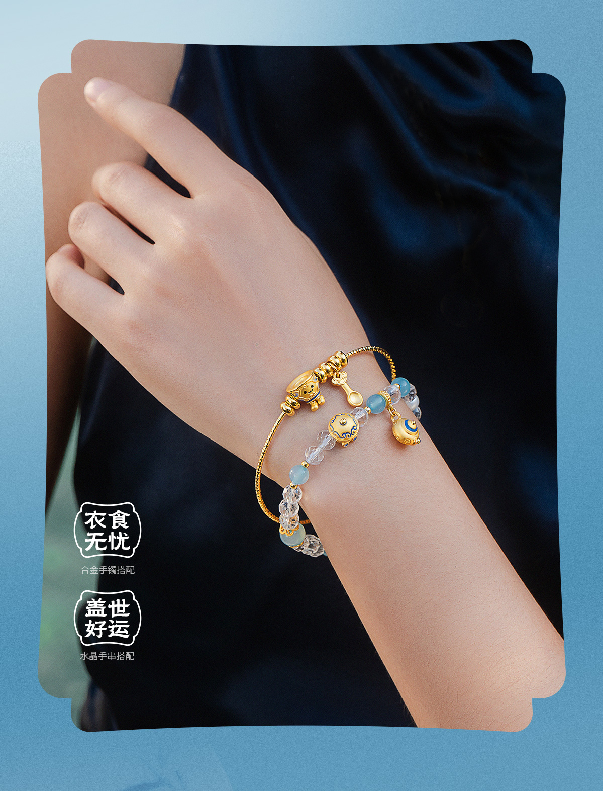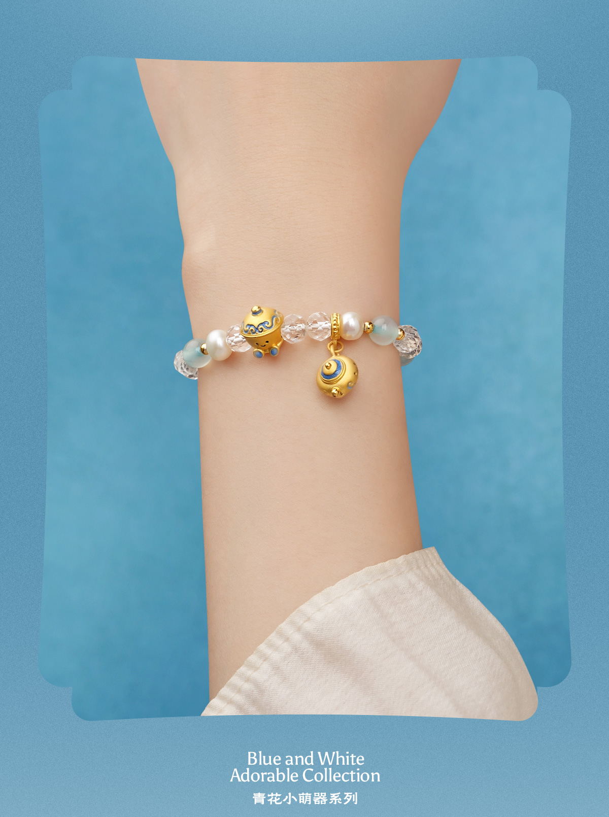 【新品折扣】周大生腕美系列黄金青花葫芦转运珠女硬金国家宝藏系列金饭碗荧光珐琅手链