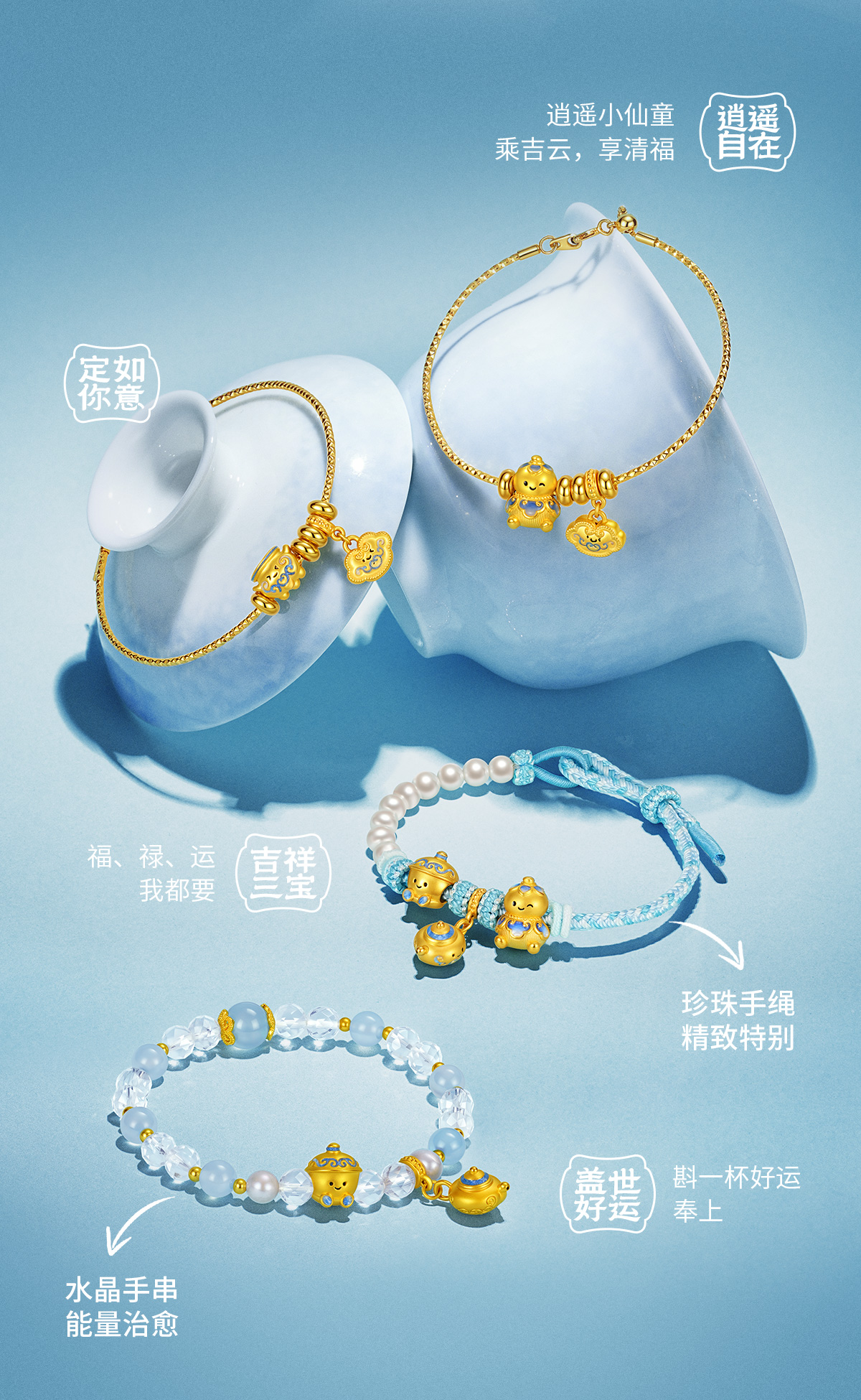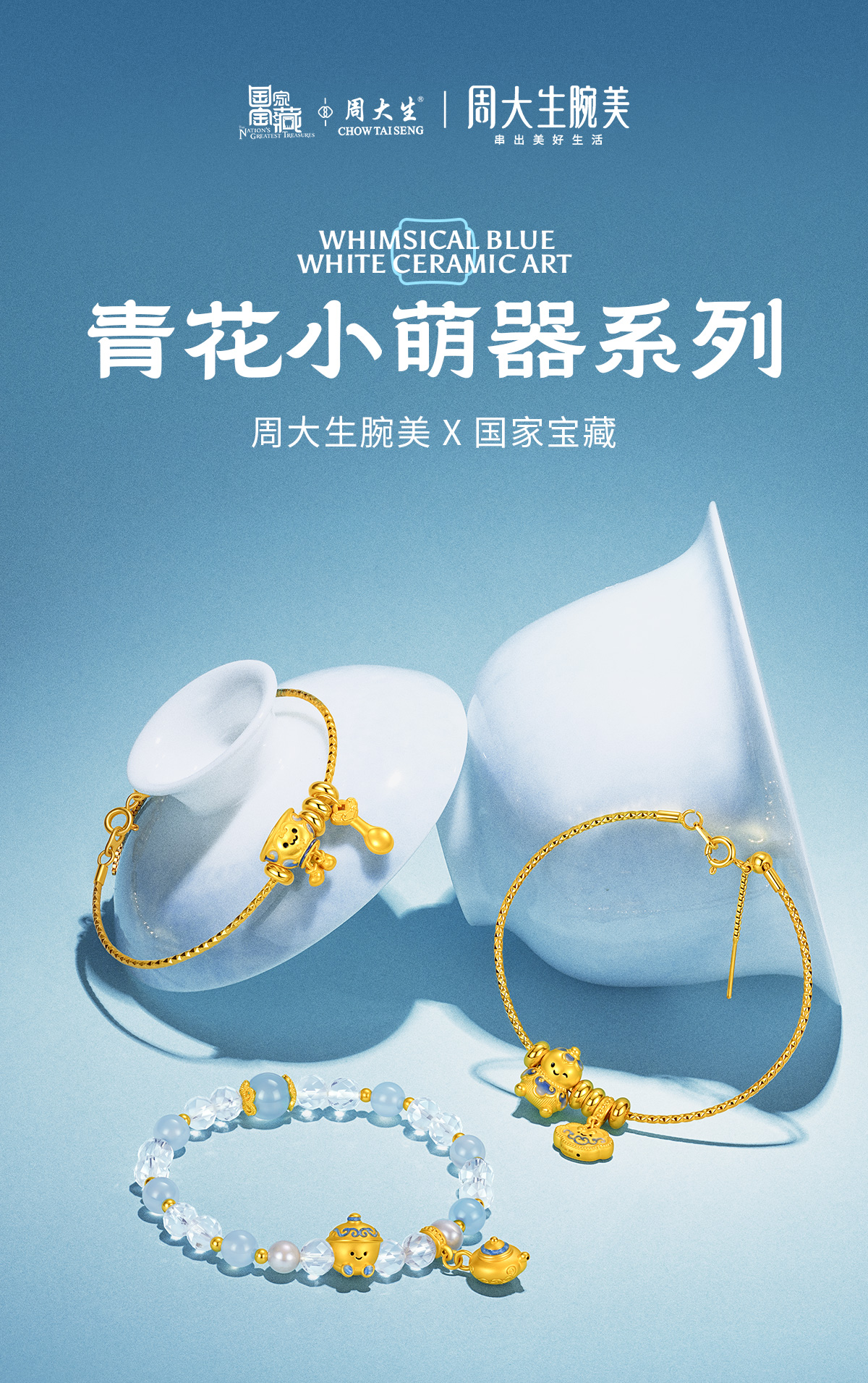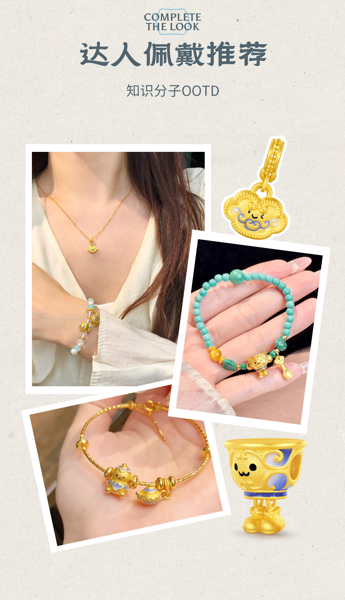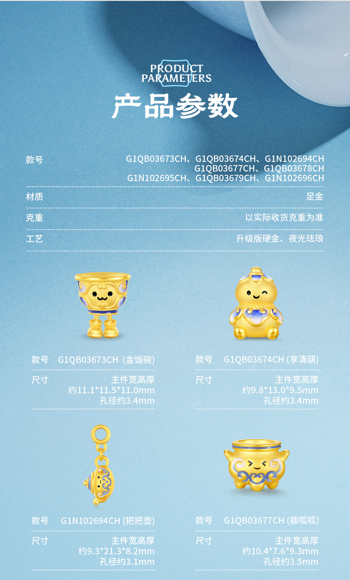 【新品折扣】周大生腕美系列黄金青花葫芦转运珠女硬金国家宝藏系列金饭碗荧光珐琅手链