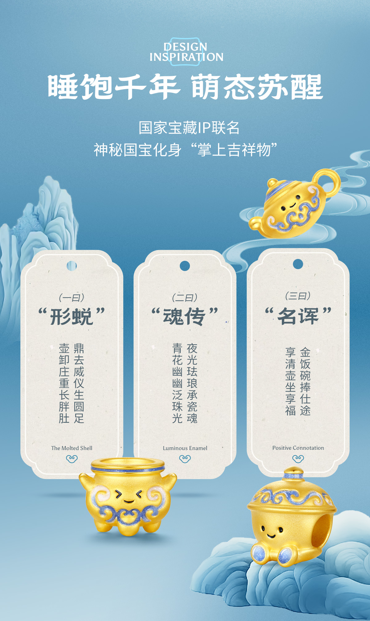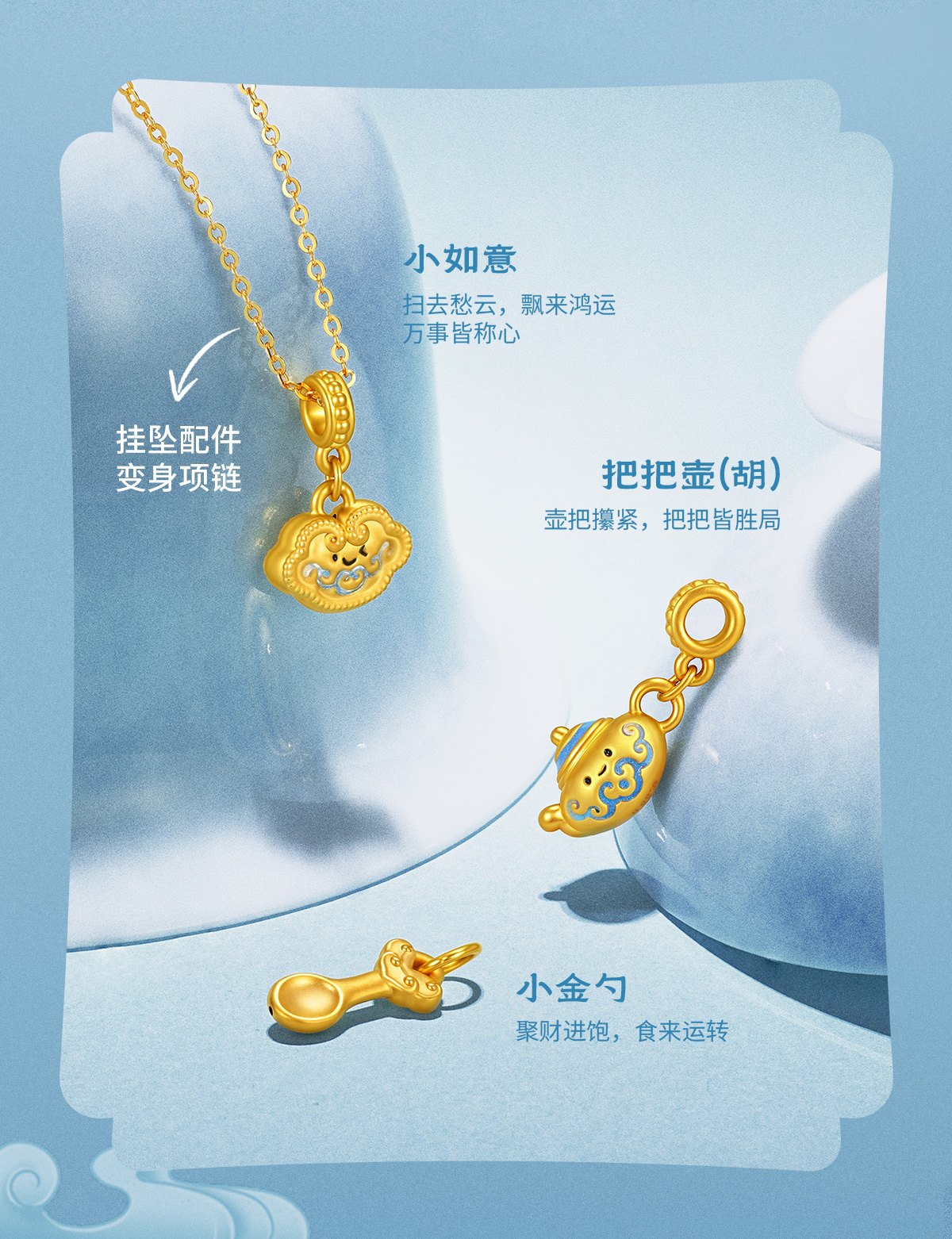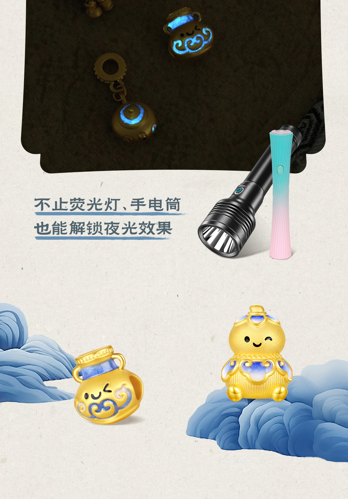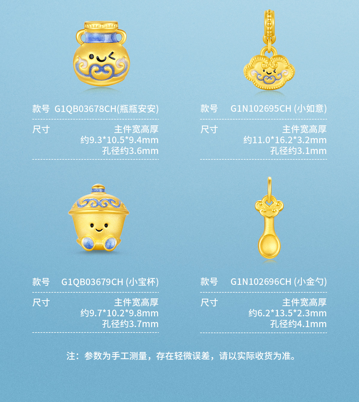 【新品折扣】周大生腕美系列黄金青花葫芦转运珠女硬金国家宝藏系列金饭碗荧光珐琅手链