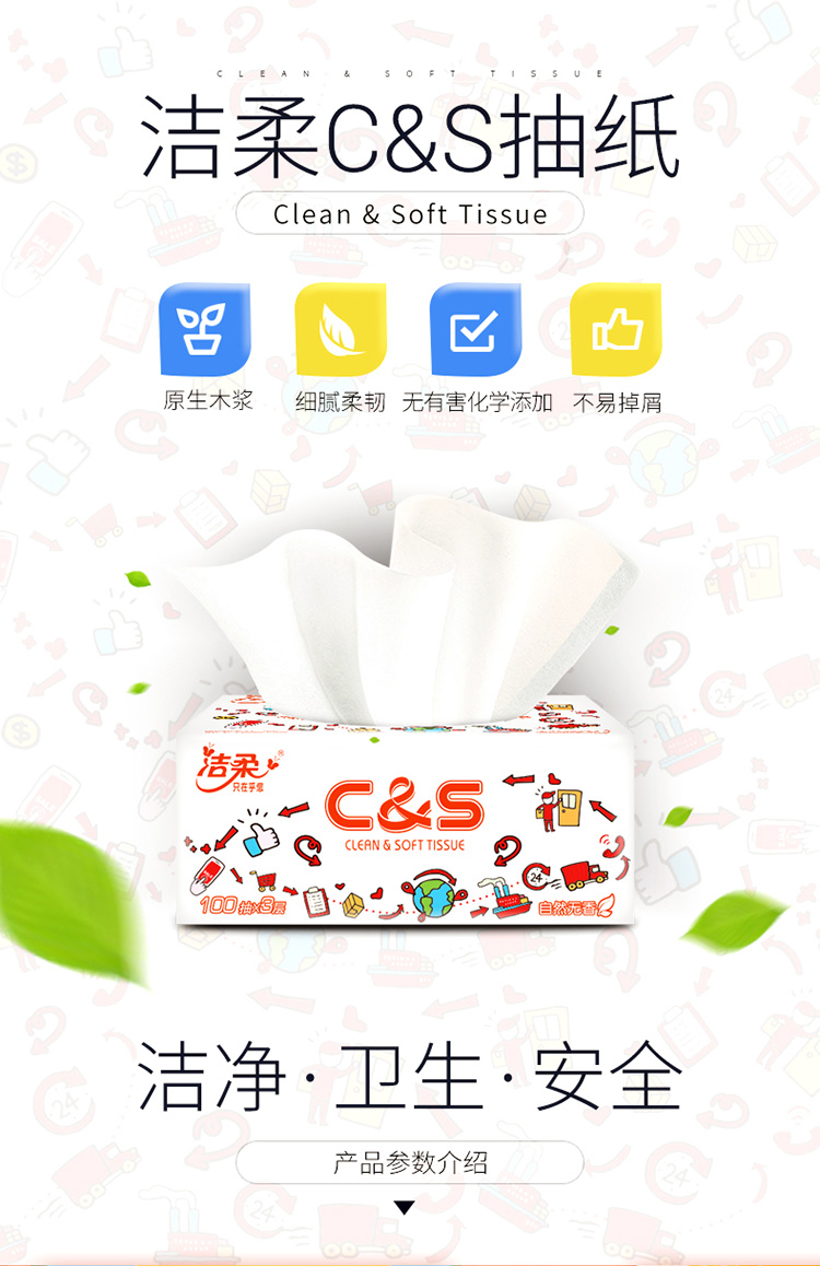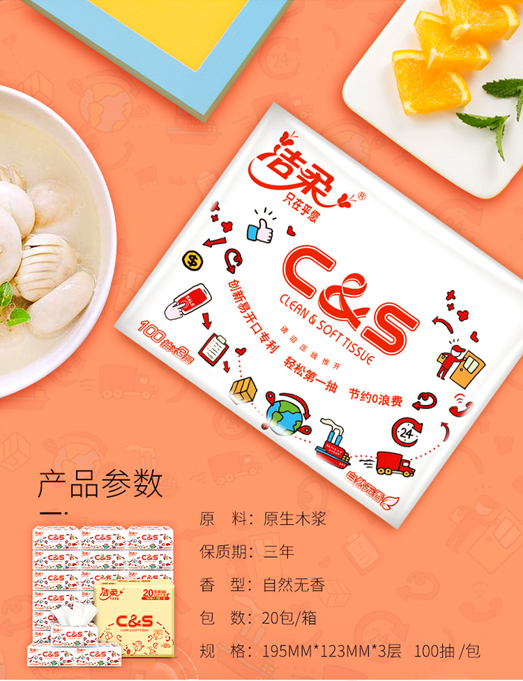 洁柔(C&S)抽纸 100%原生木浆3层面巾纸*20包 无香(整箱销售 实惠家庭装软抽纸巾 婴儿可用)品质严选