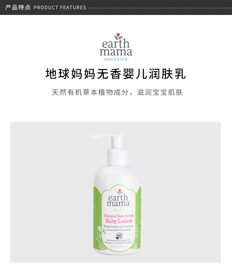 EARTH MAMA/地球妈妈 天然无香婴儿润肤乳 240MLJPY带授权招加盟代理