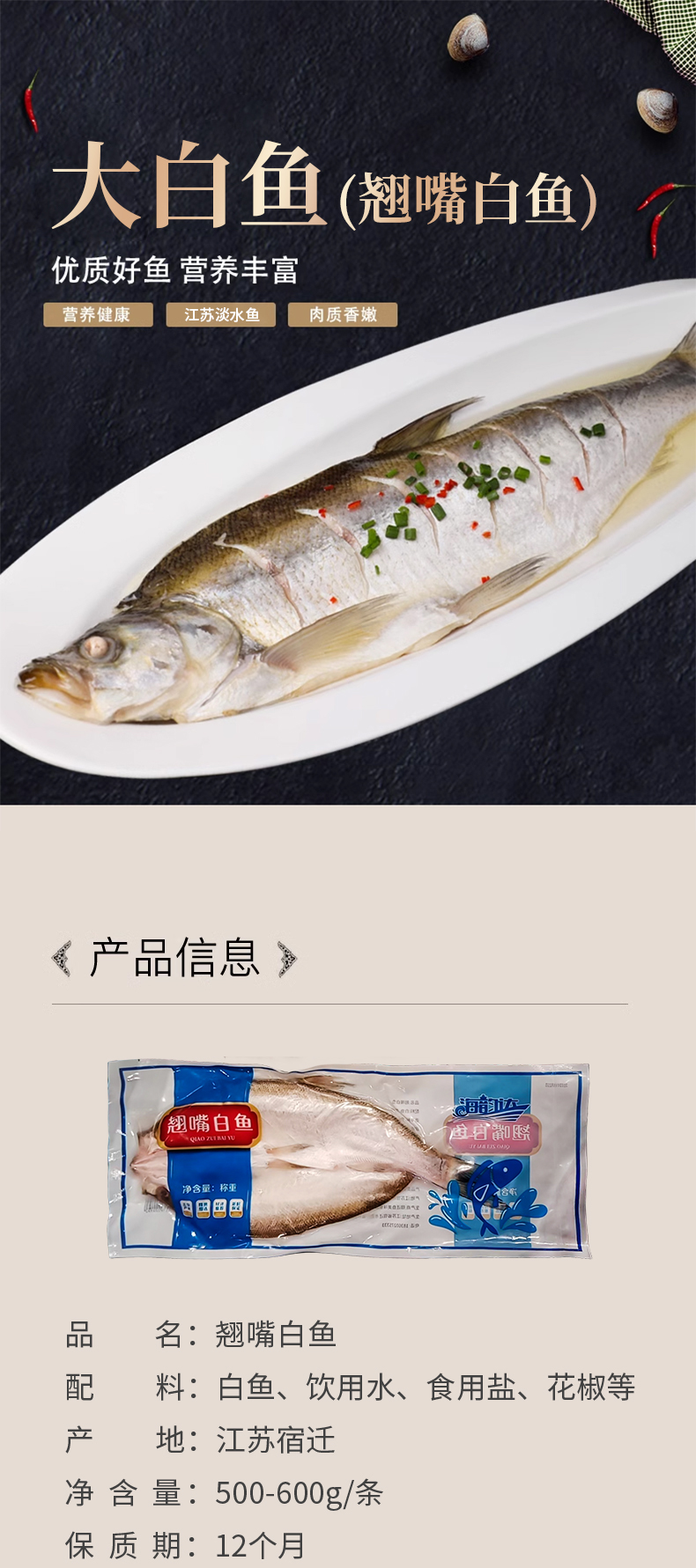 大白鱼(翘嘴白鱼)500-600g/条
