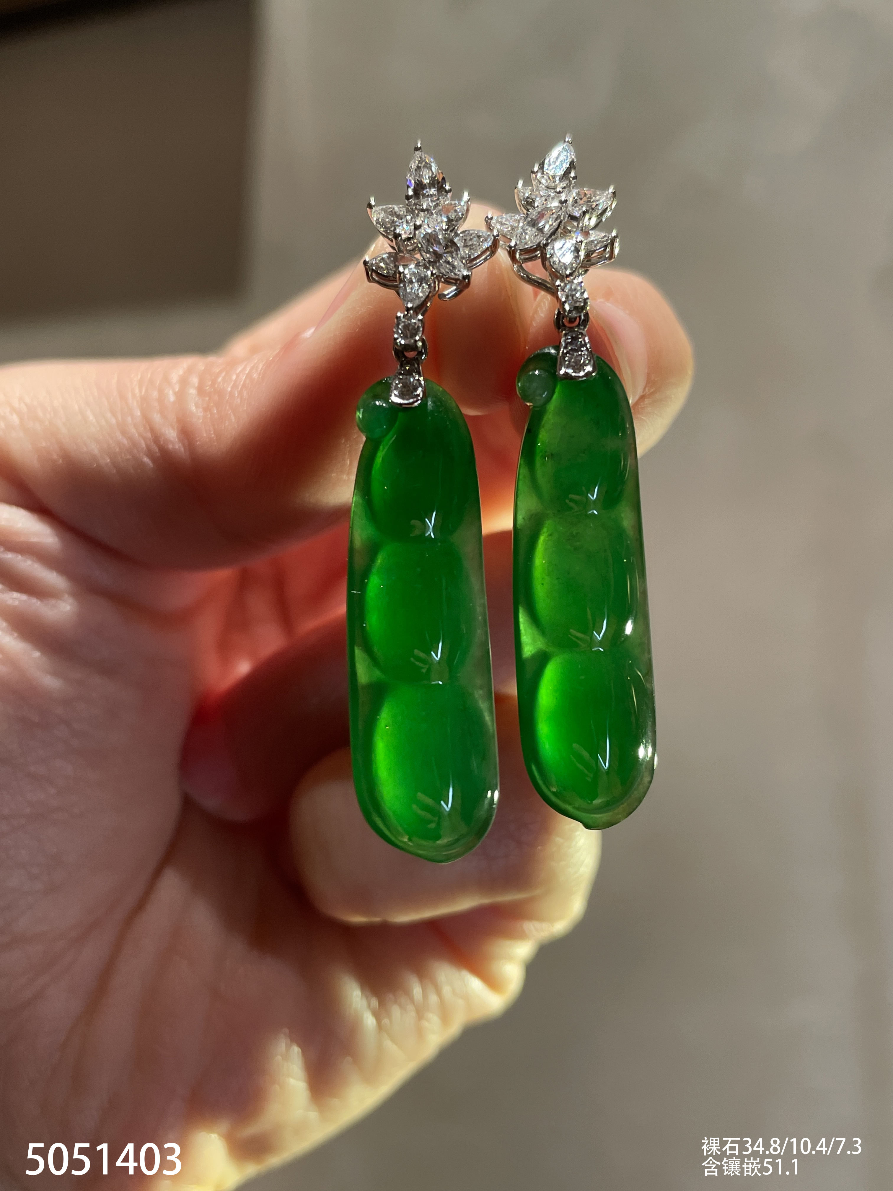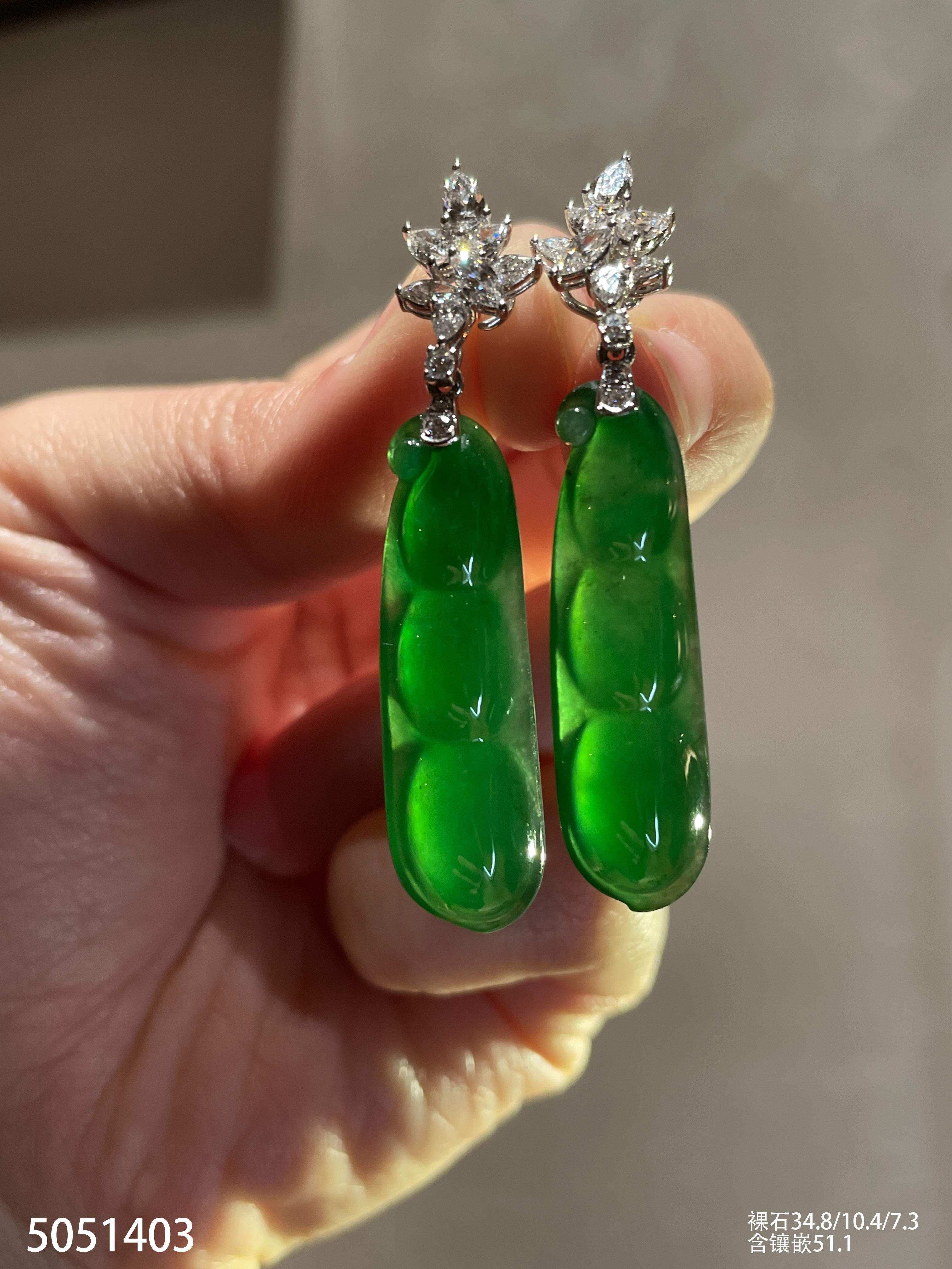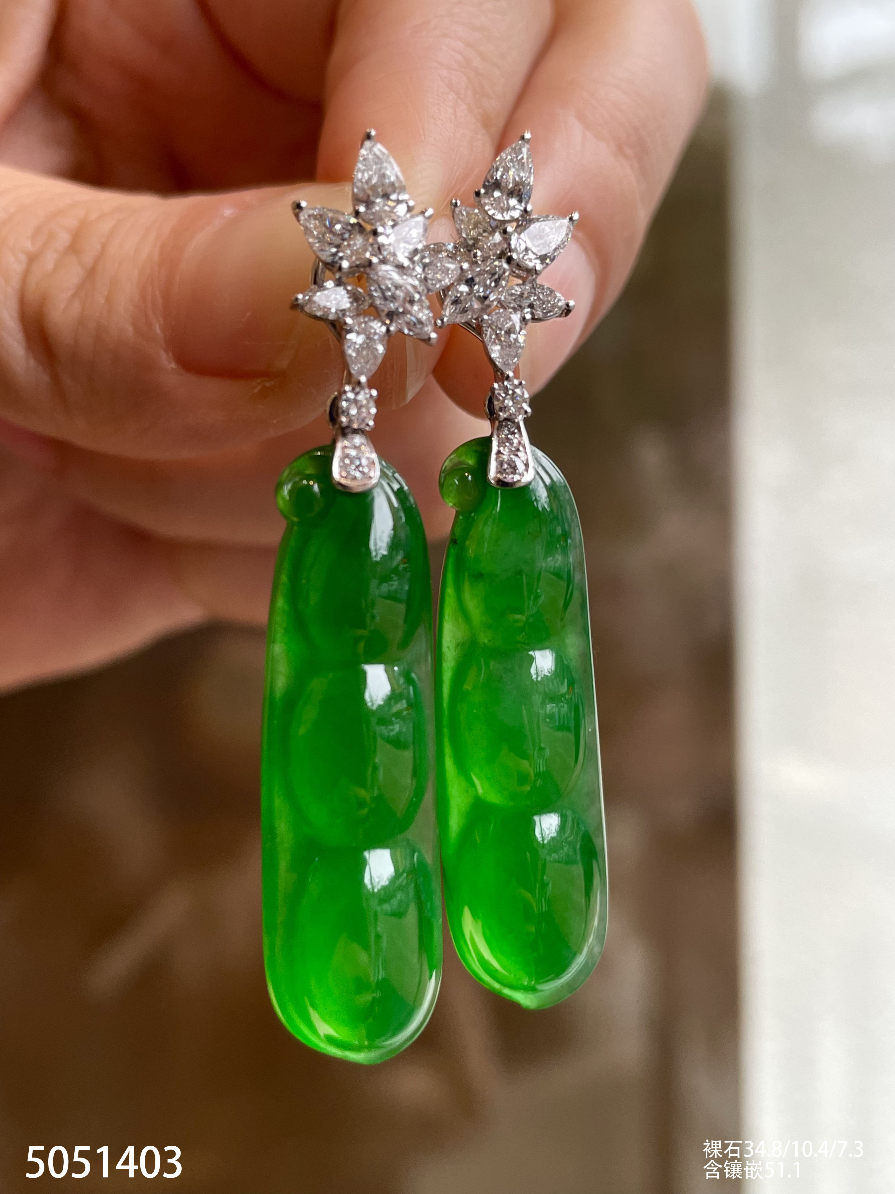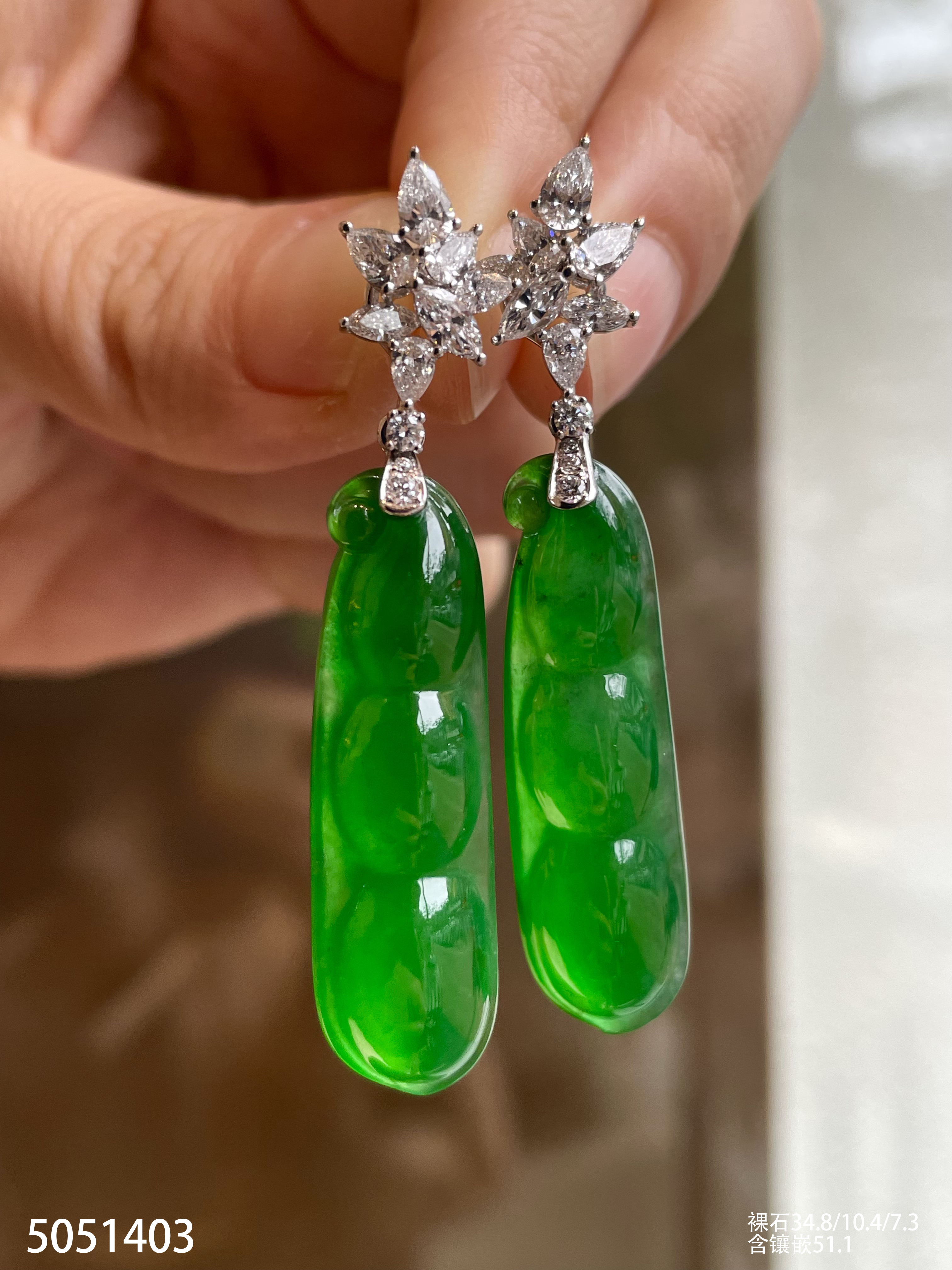 老坑玻璃种艳绿福豆耳坠【5051403】具体价格微信咨询