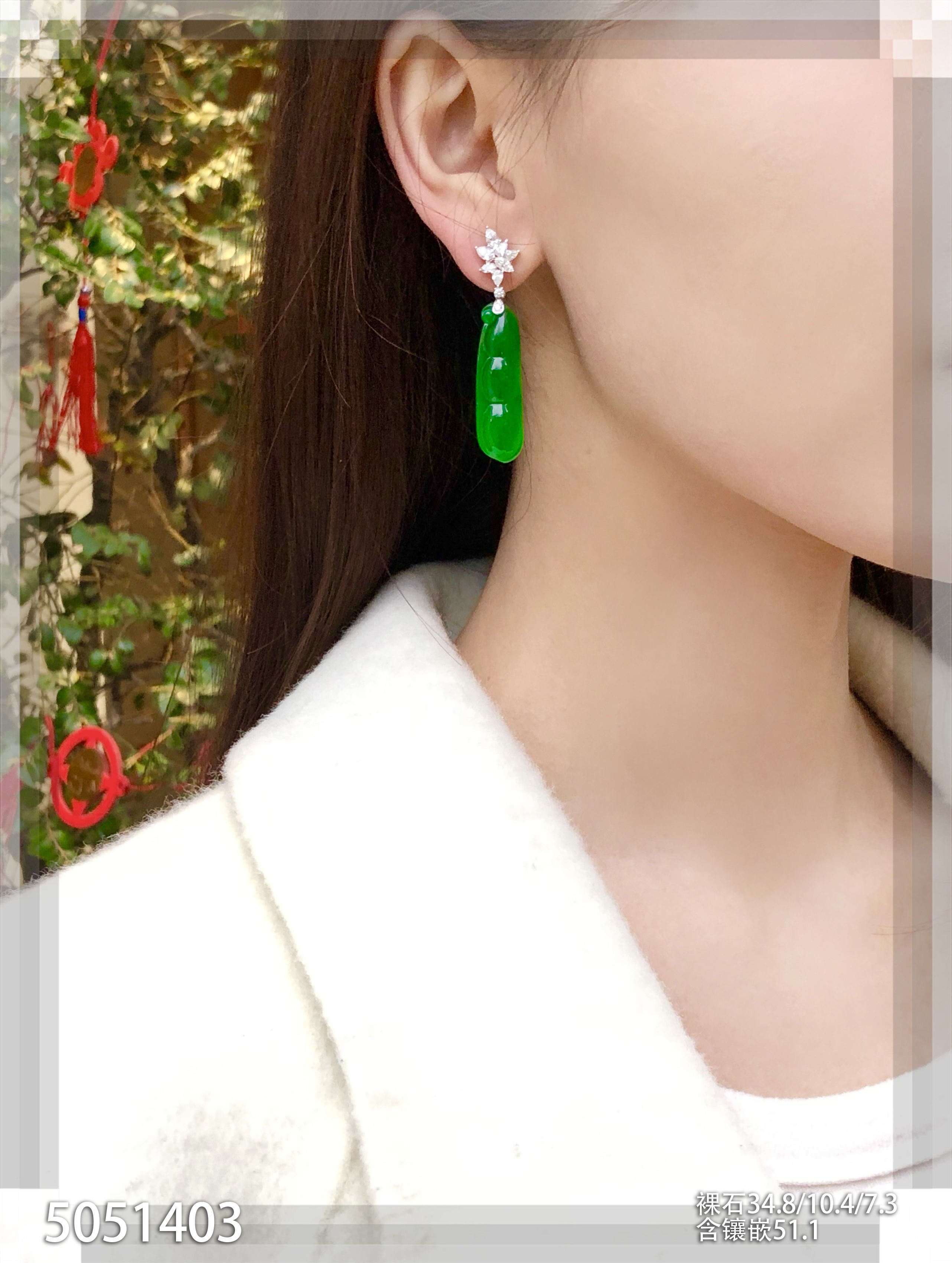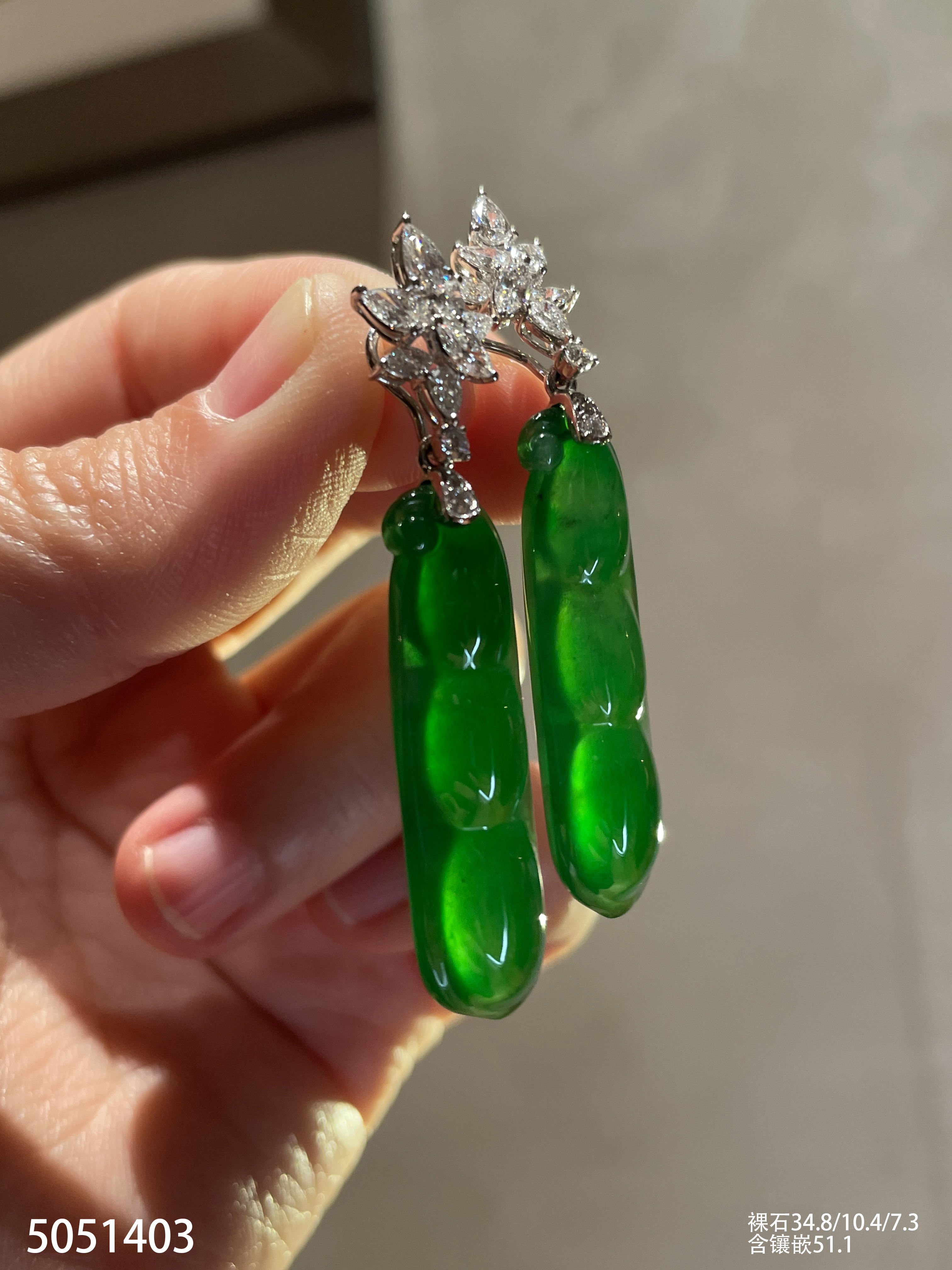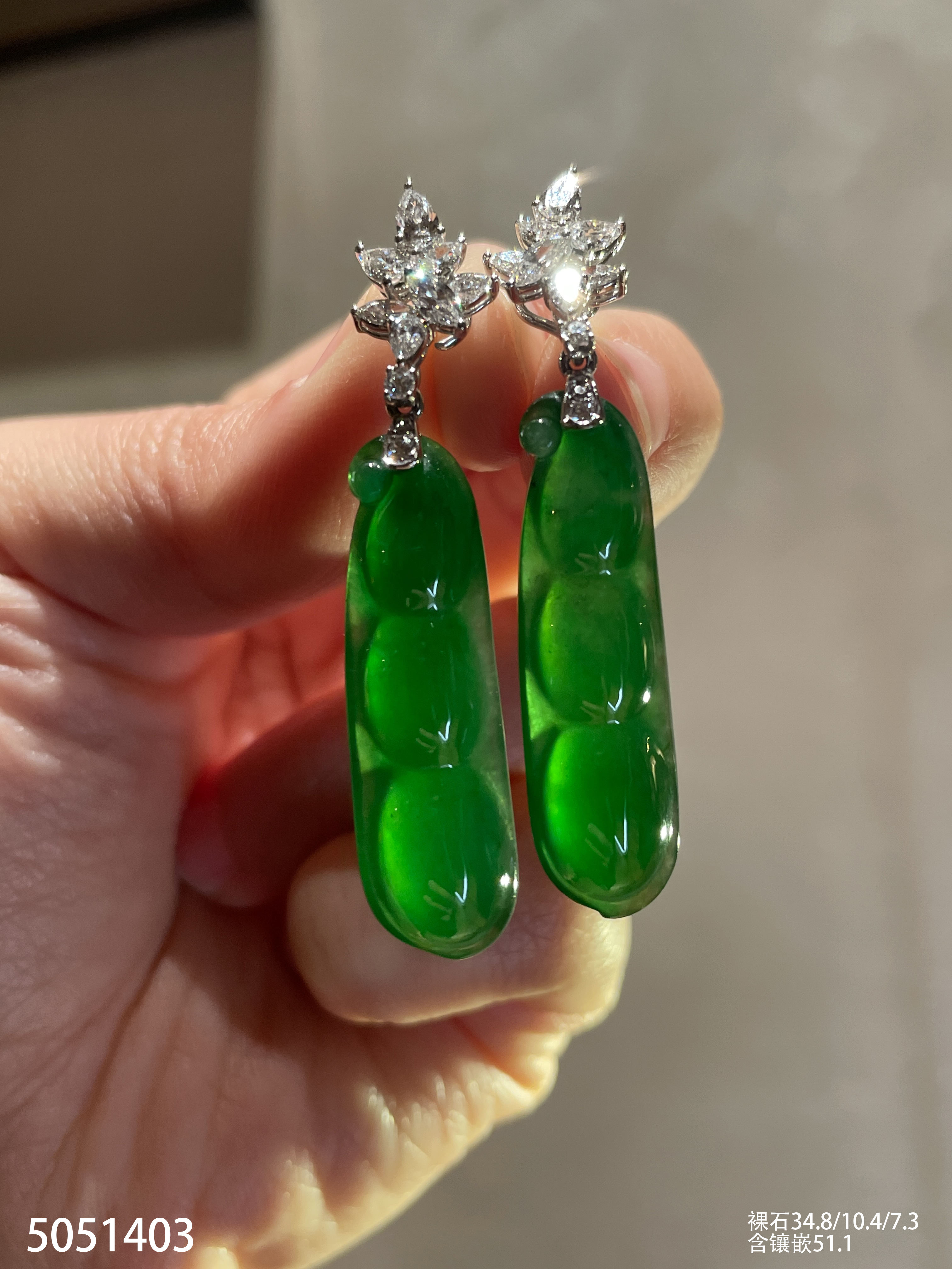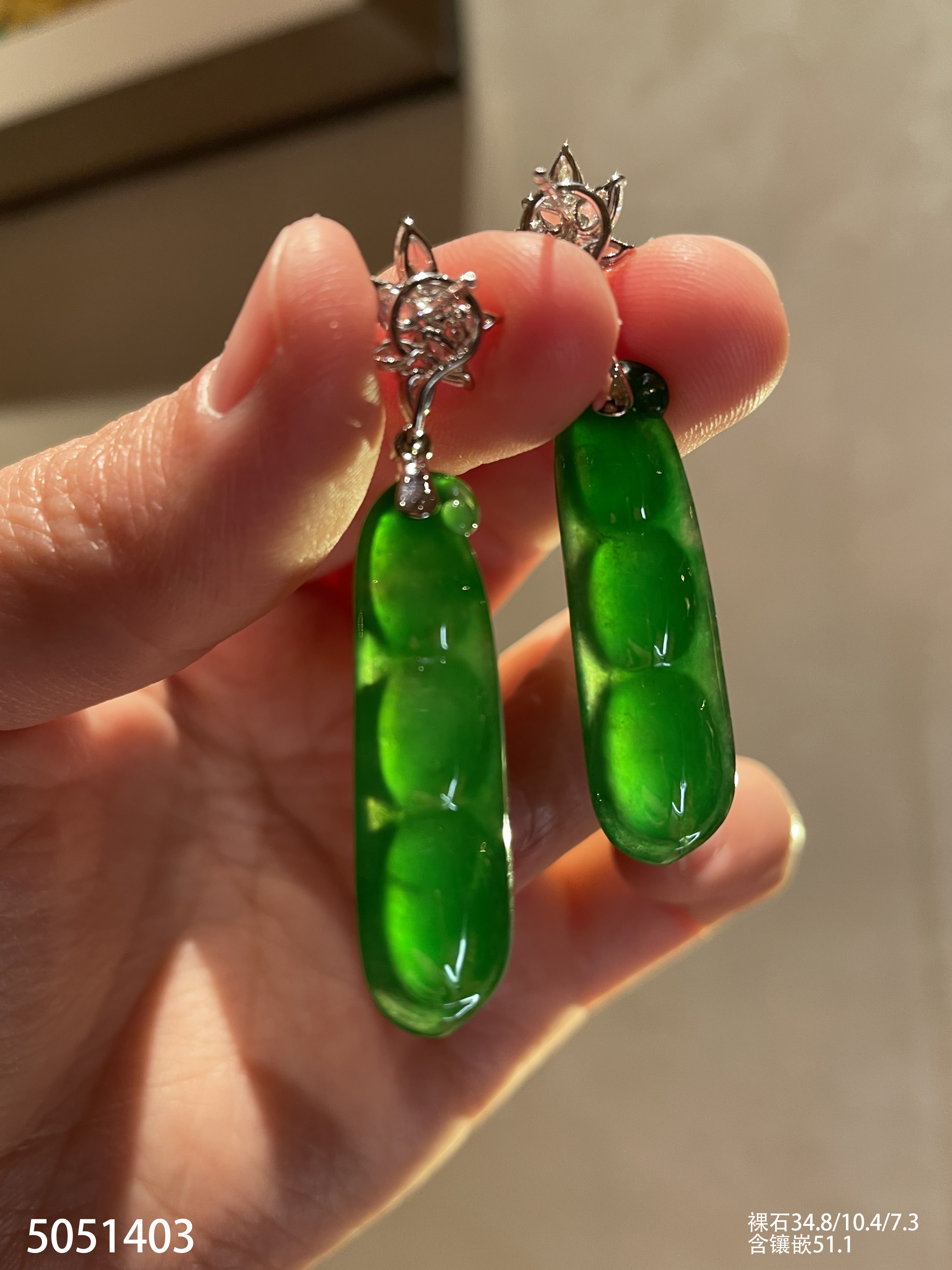 老坑玻璃种艳绿福豆耳坠【5051403】具体价格微信咨询