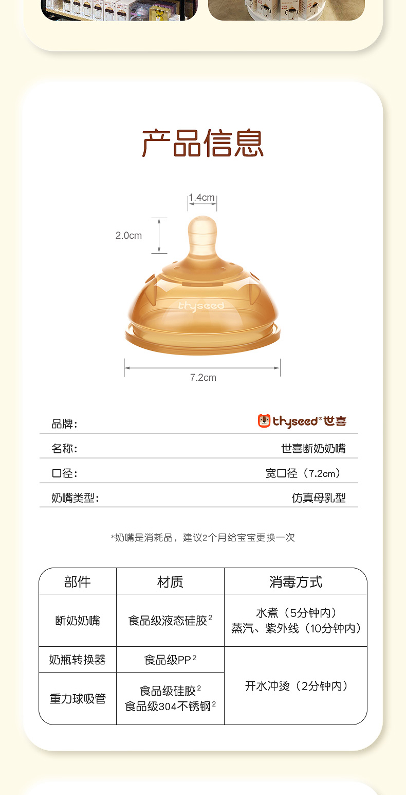 世喜断奶奶嘴婴儿硅胶断奶神器宝宝仿真奶嘴母乳实感戒夜奶乳头超软宽口径