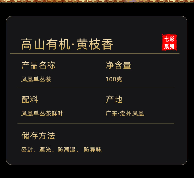 天池单枞黄枝香 乌岽黄枝香 凤凰单枞茶 天池单丛七彩礼盒装系列100g*2