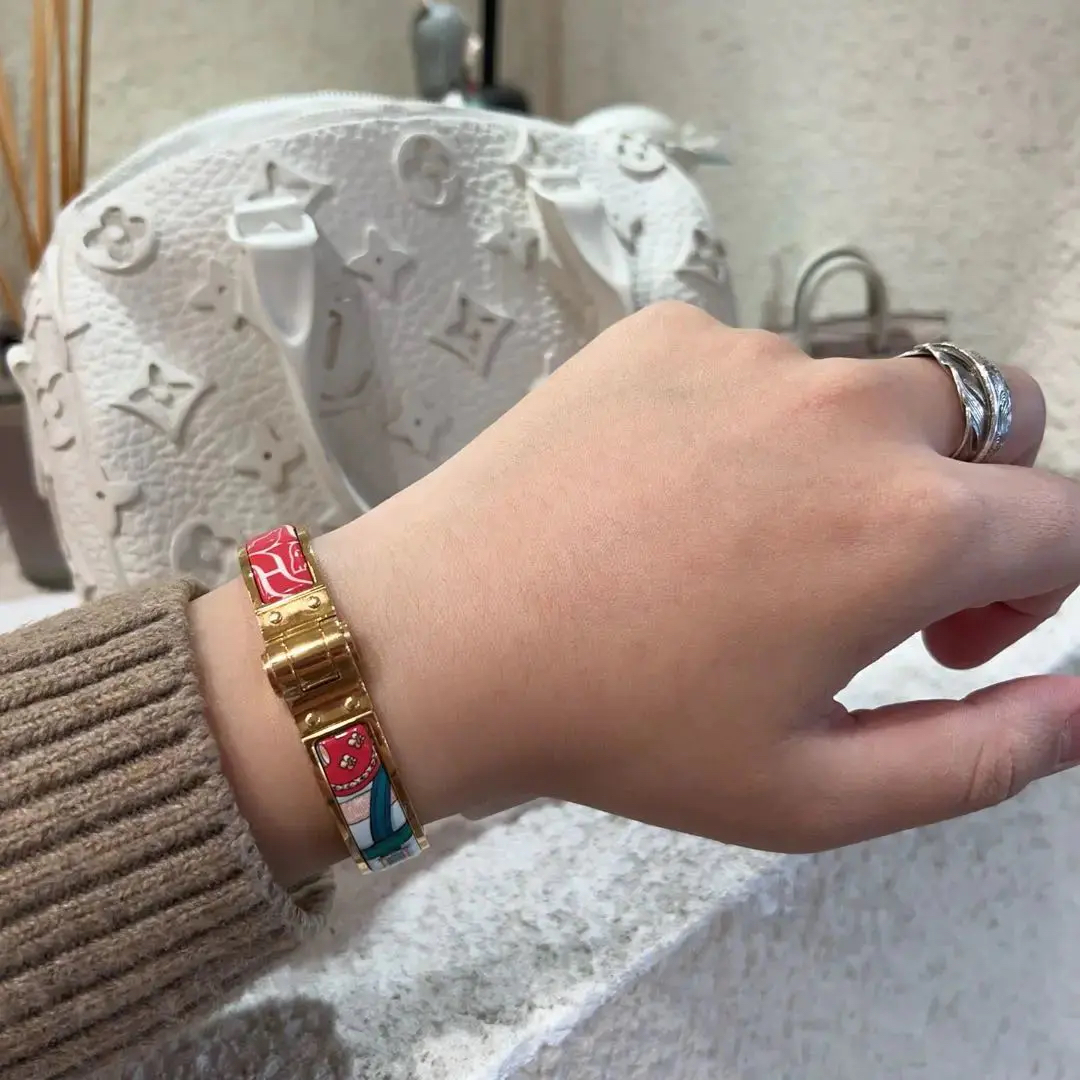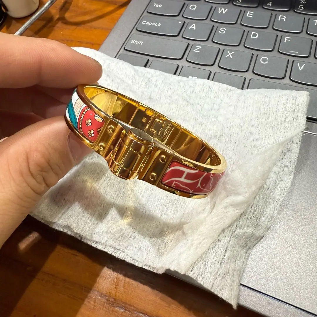 【商品详情】正品二手 爱马仕 珐琅 彩绘 手镯👋98新 6cm直径。精致显白神器