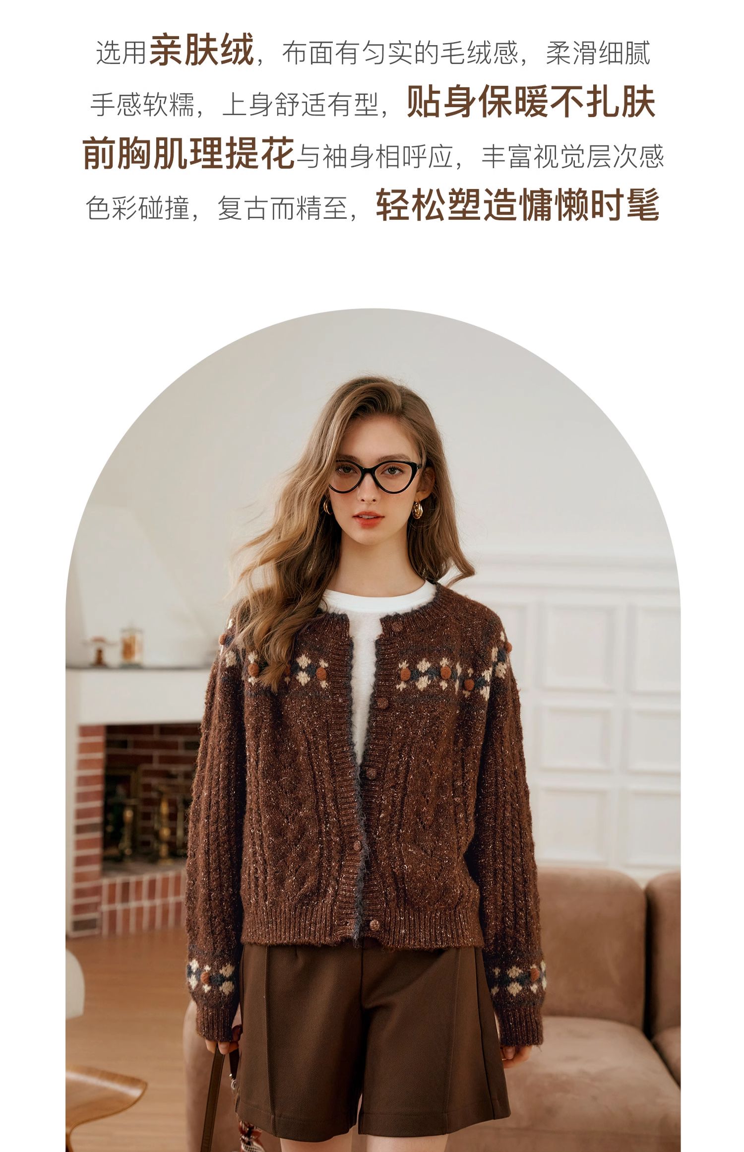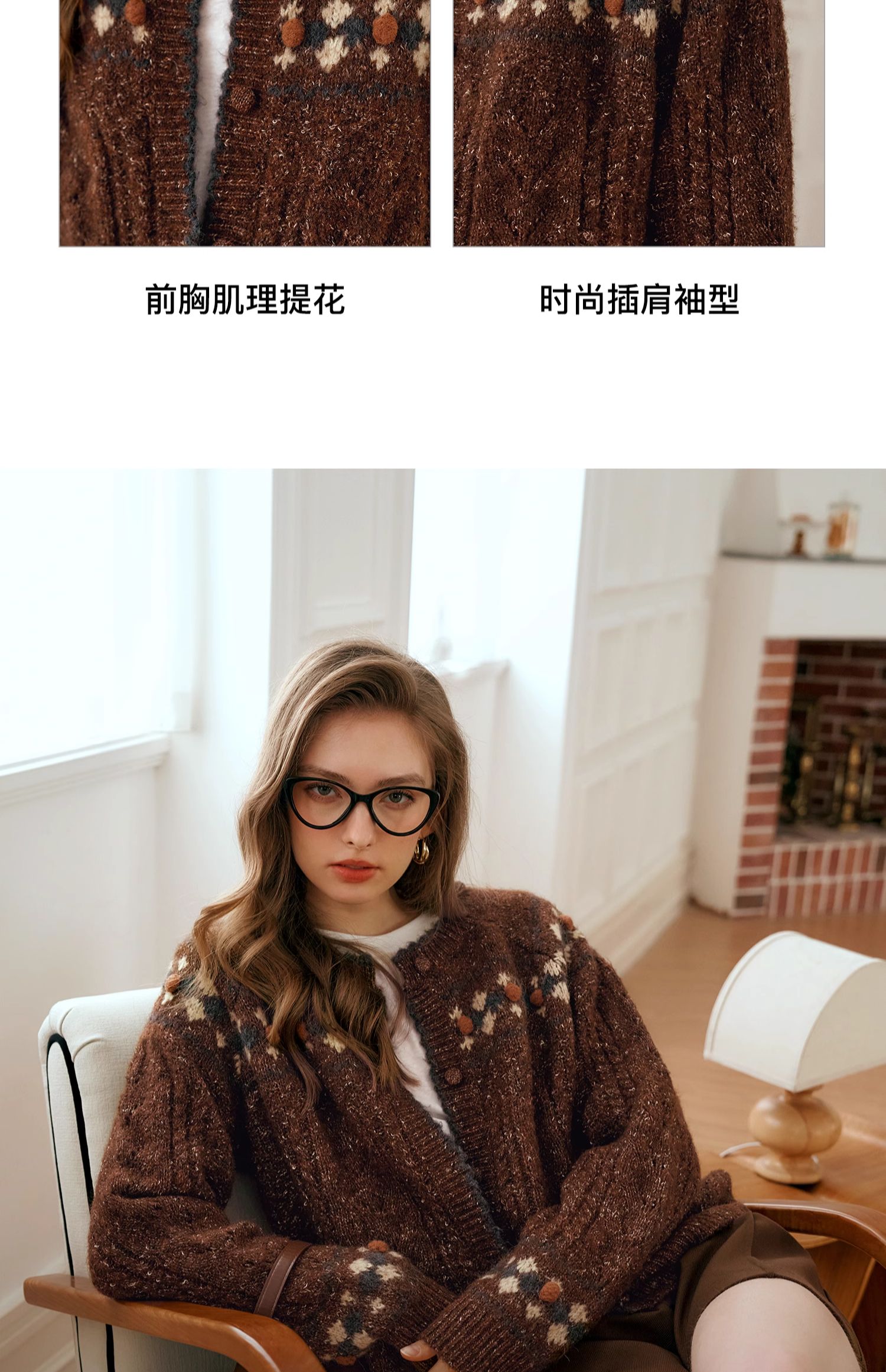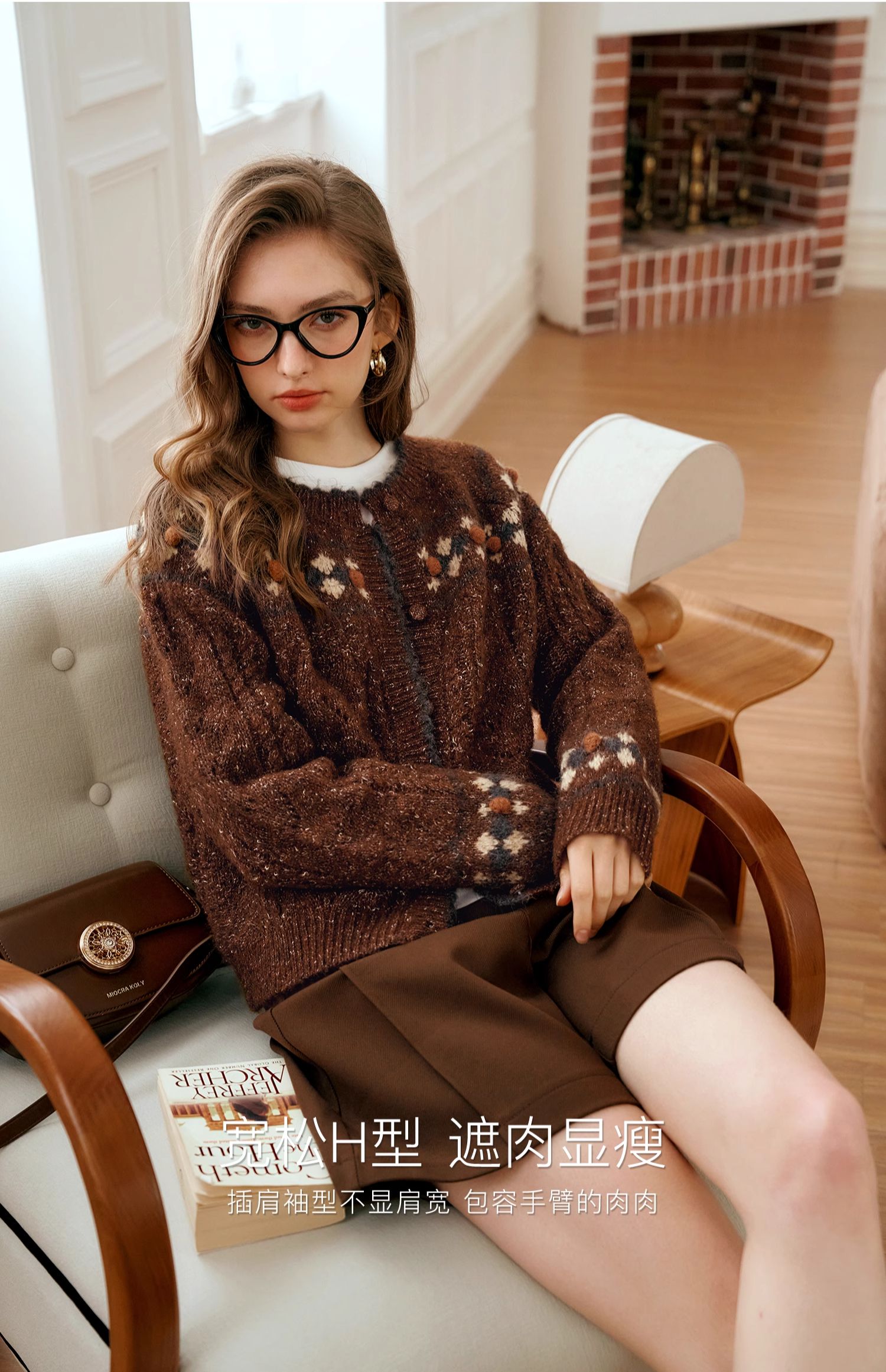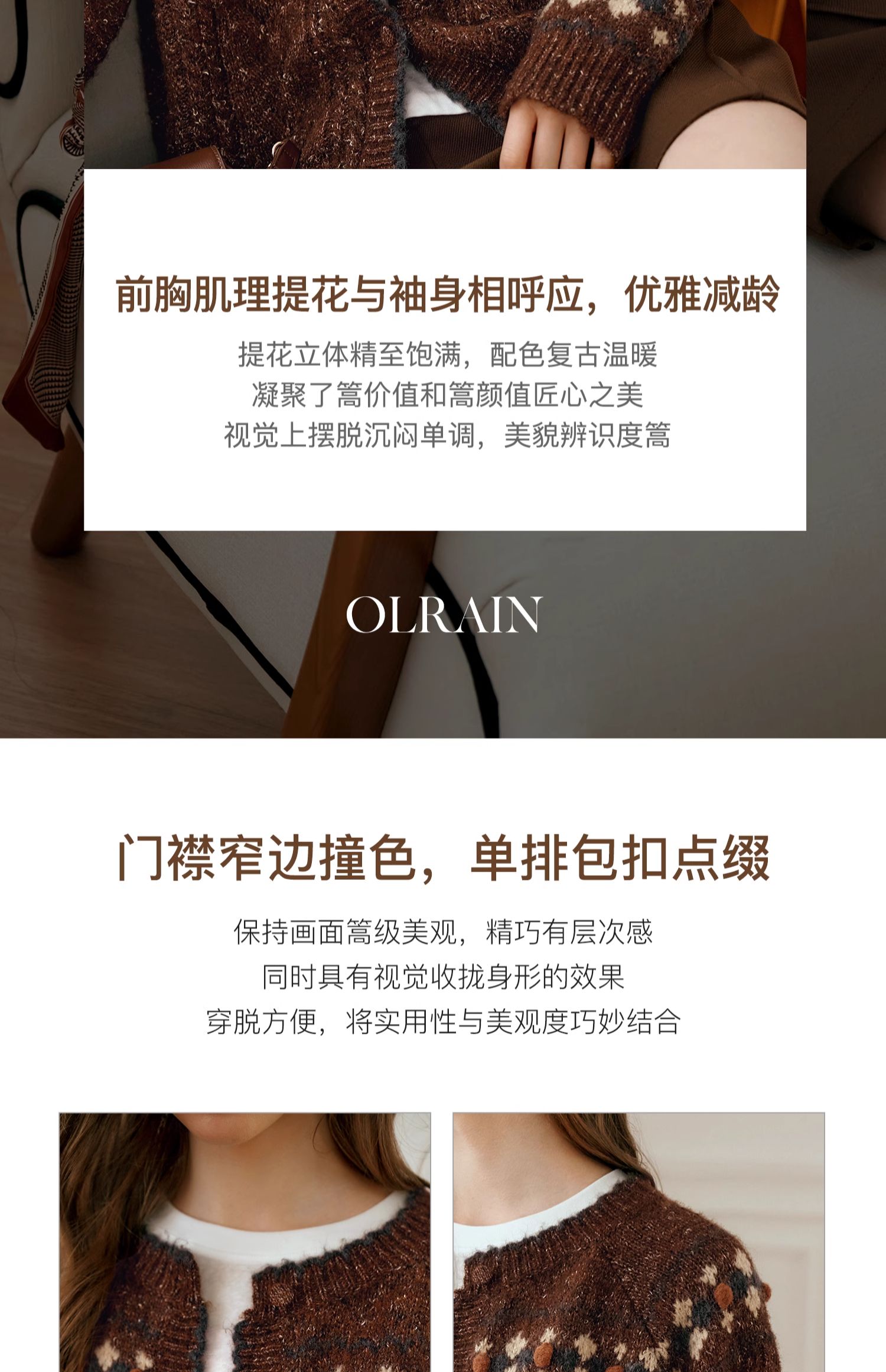 OLrain欧芮儿法式棕咖色毛衣女秋季慵懒风宽松显瘦针织开衫外套