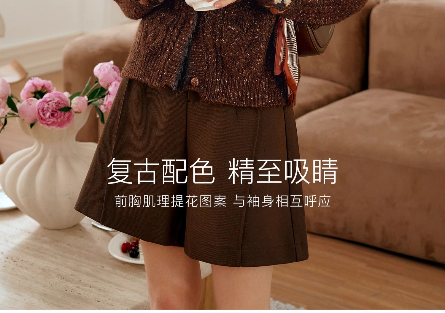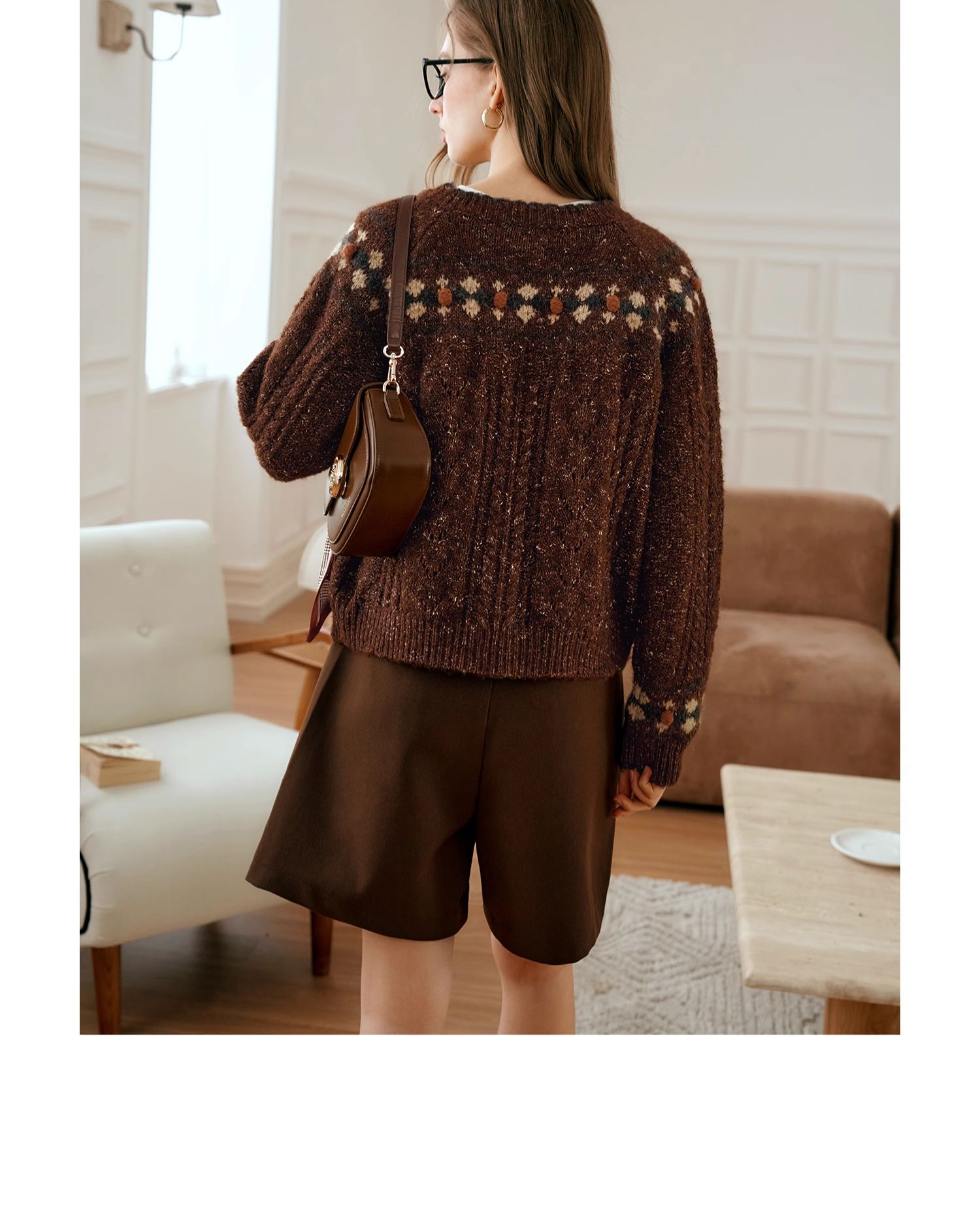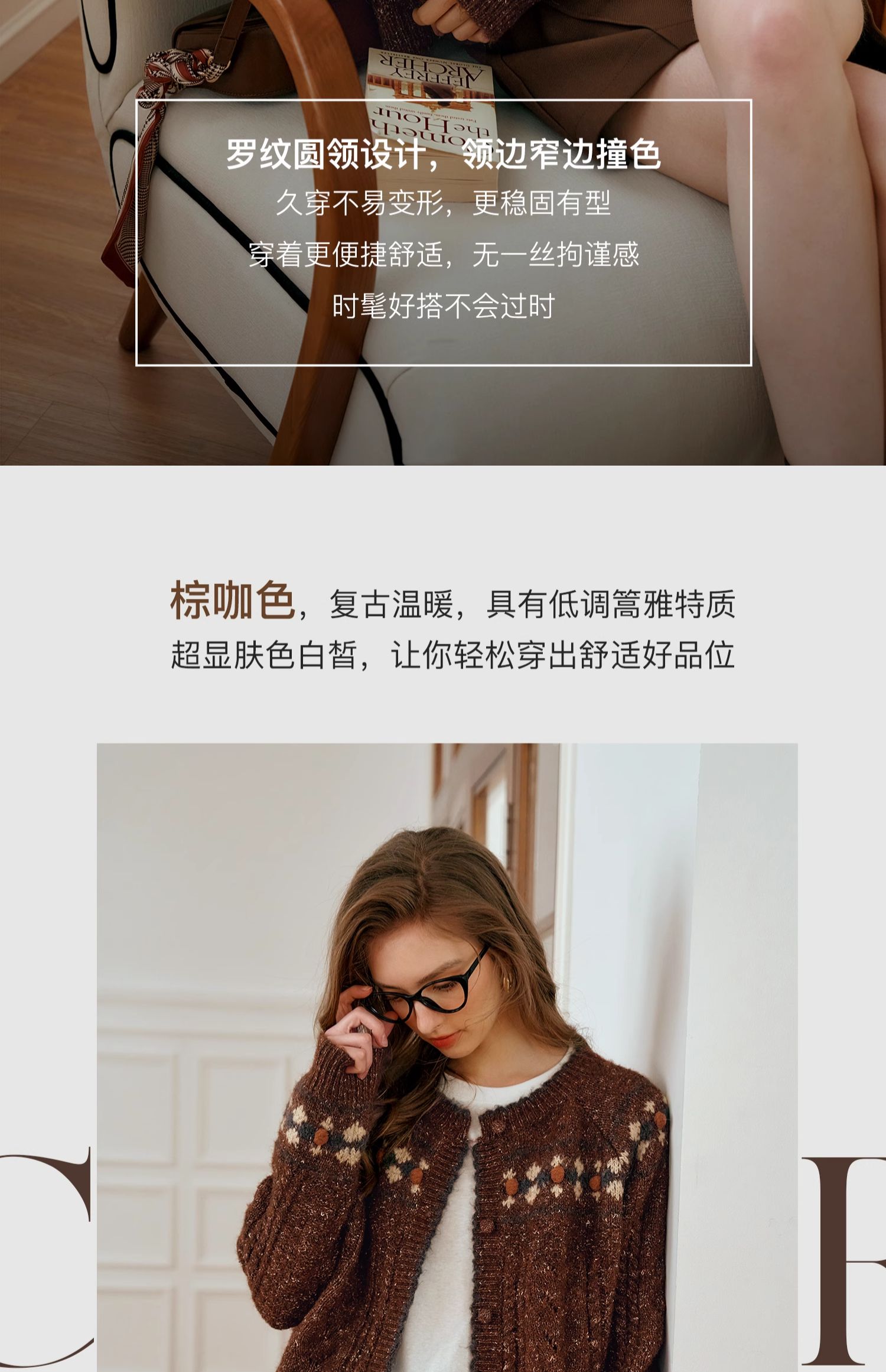 OLrain欧芮儿法式棕咖色毛衣女秋季慵懒风宽松显瘦针织开衫外套
