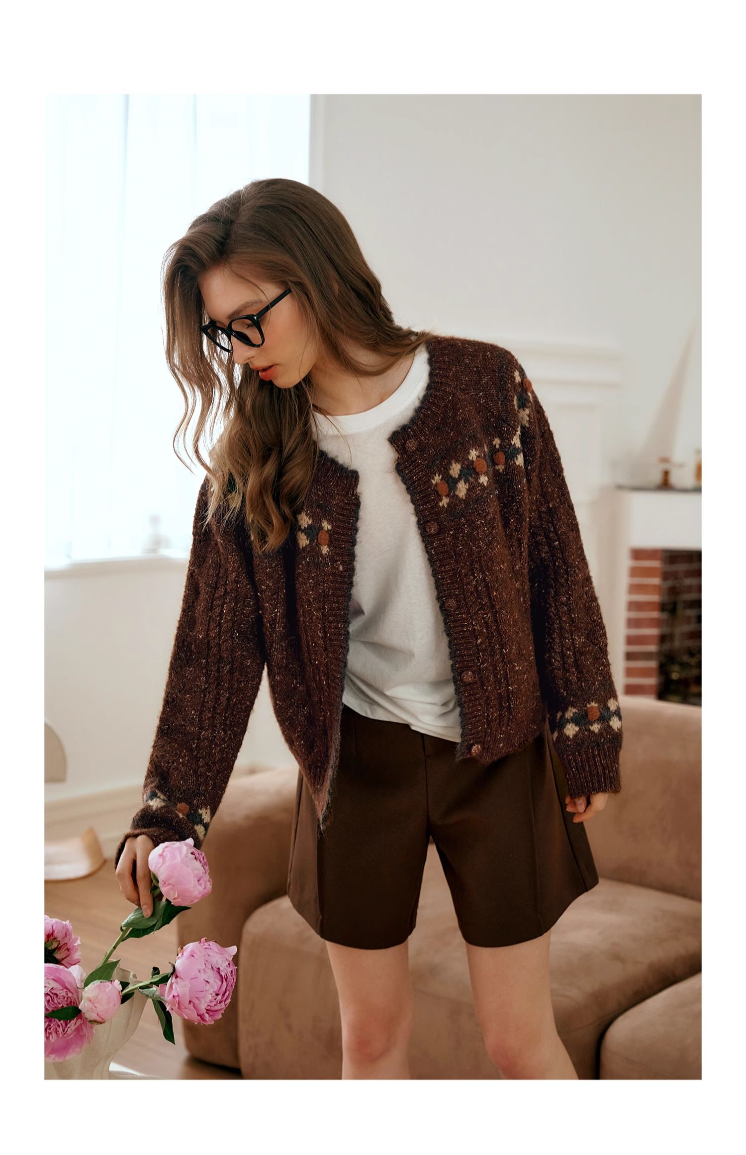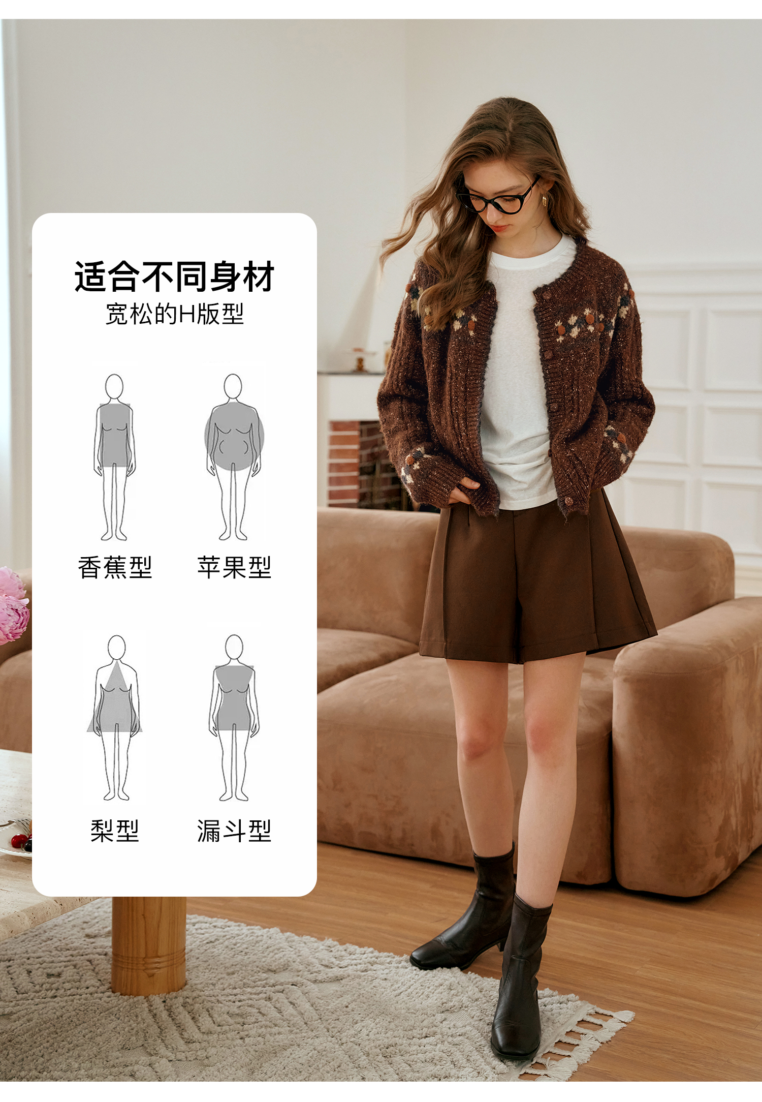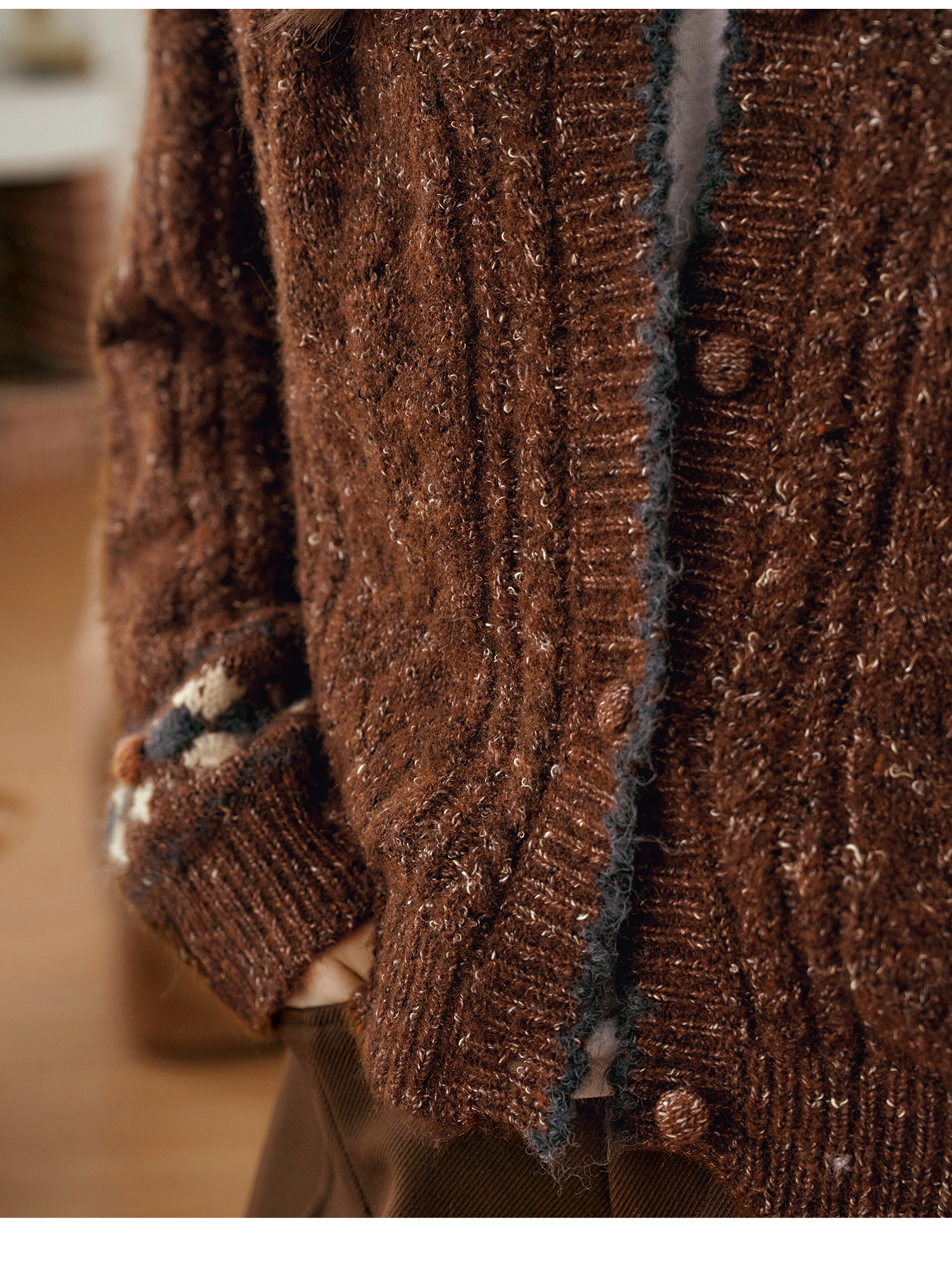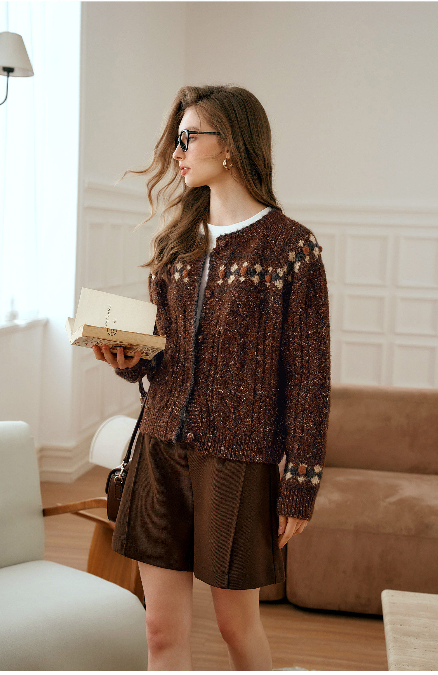 OLrain欧芮儿法式棕咖色毛衣女秋季慵懒风宽松显瘦针织开衫外套
