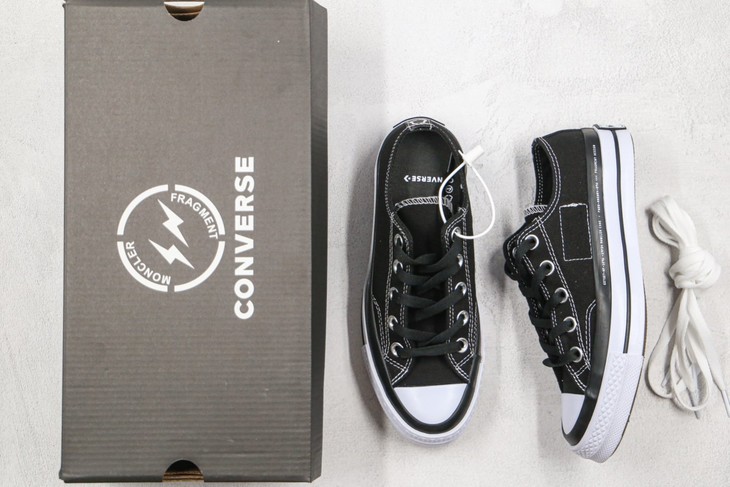 黑盒 匡威 藤原浩 闪电 补丁铭牌 缝线 黑色 白色 Fragment系列正式亮相 这次系列鞋履搭配「fragment design x Moncler x CONVERSE」三方联名,延续经典