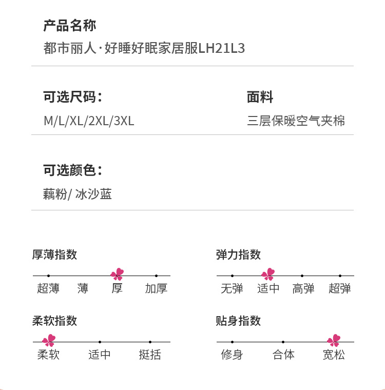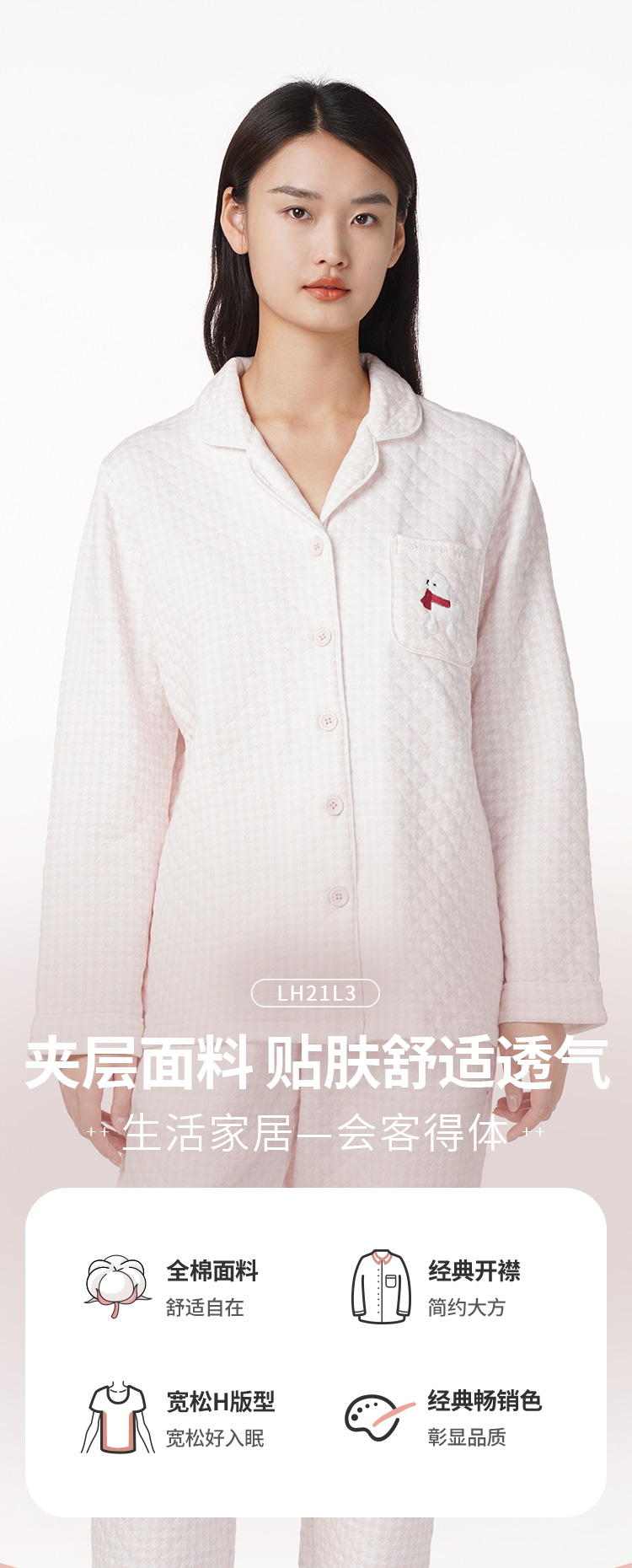 都市丽人生活家居女士夹层套装夹层厚家居服长袖睡衣LH21L3