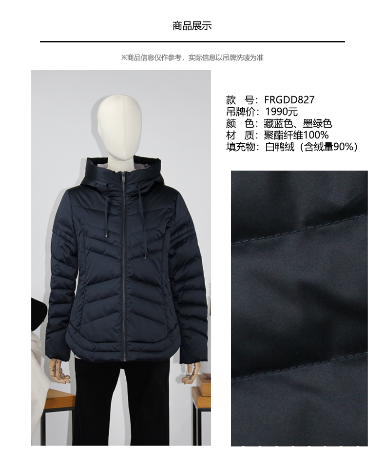 FOCALS福柯斯新款纯色修身连帽短款连帽羽绒服FRGDD827