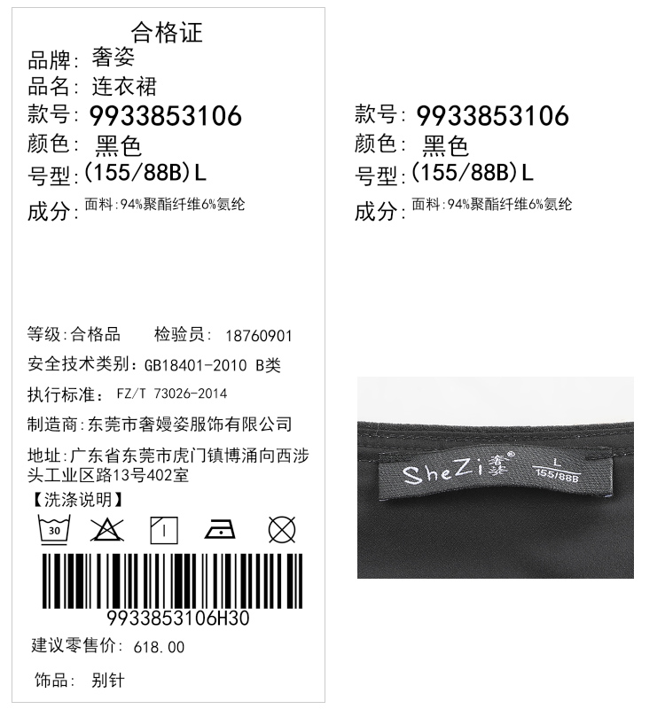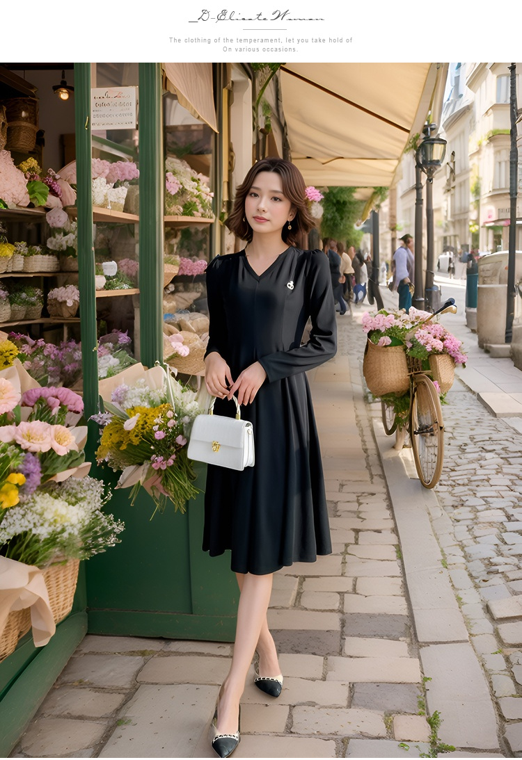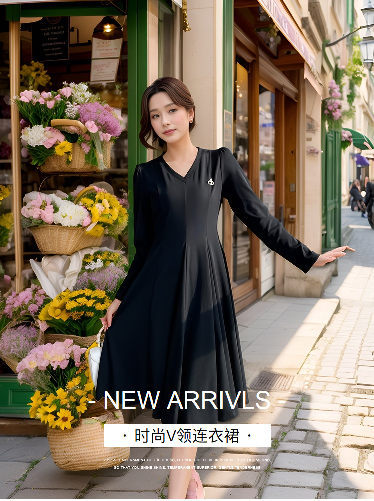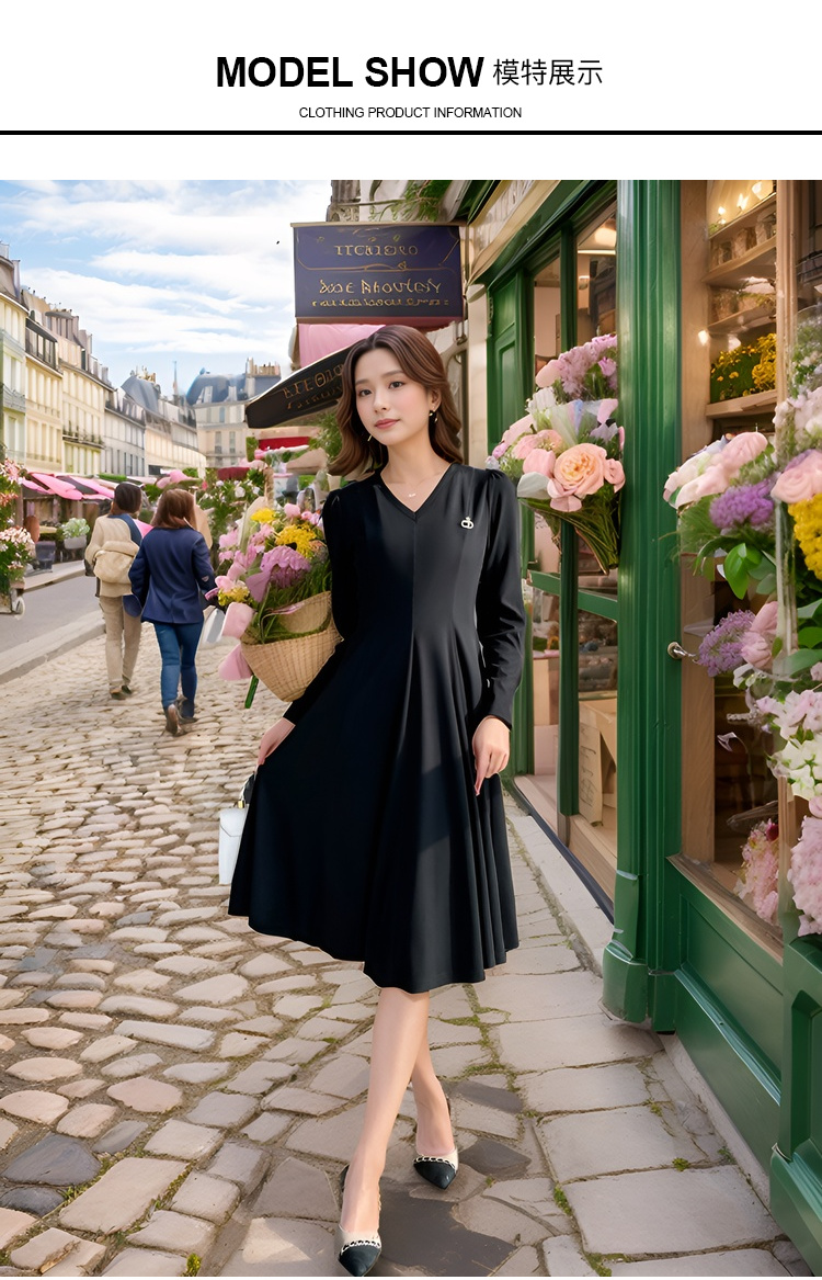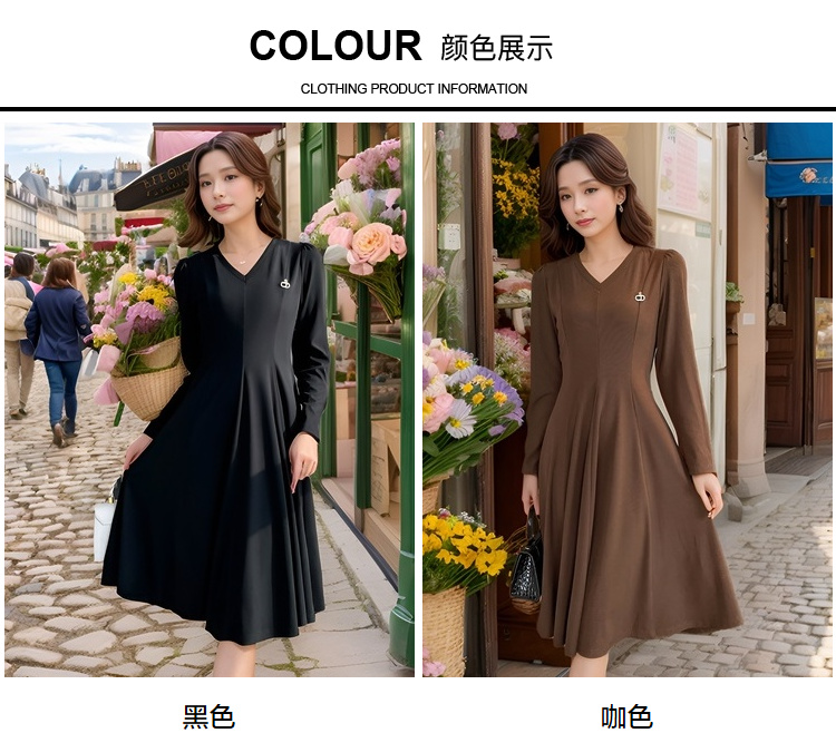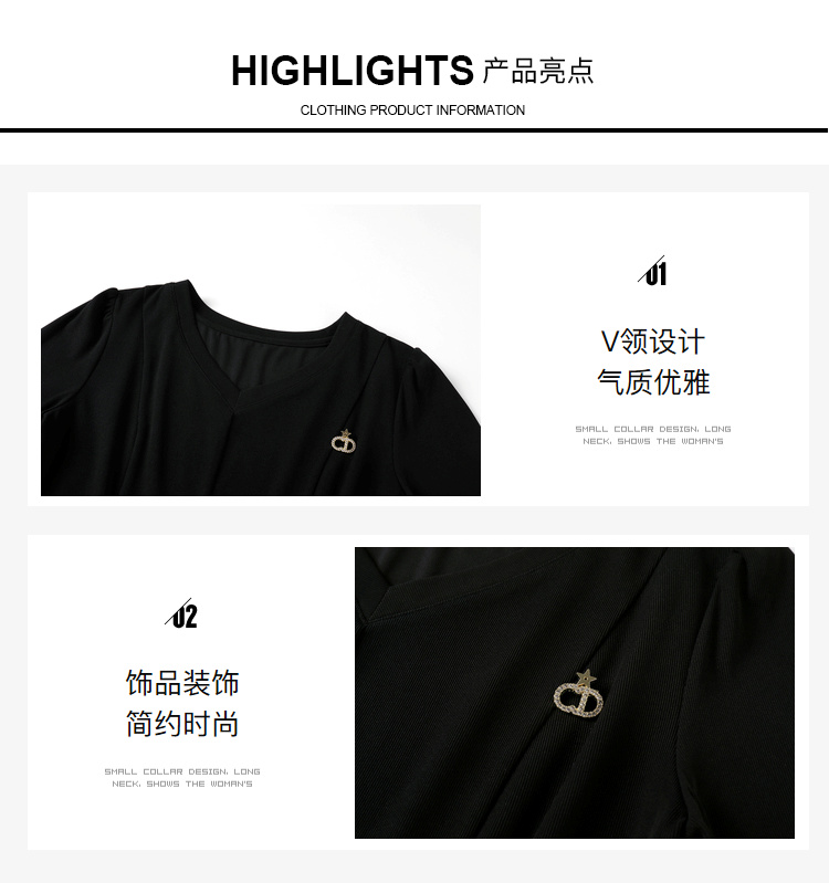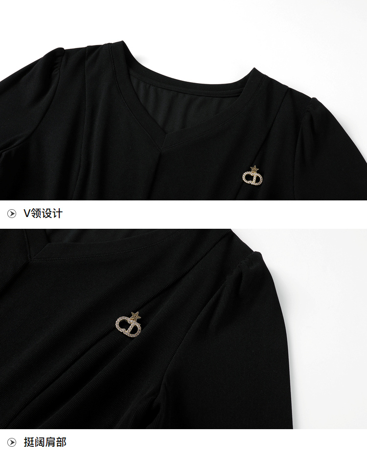 奢姿2024年秋装新款大码女装胸针装饰裙子胖妹妹气质V领连衣裙9933853106