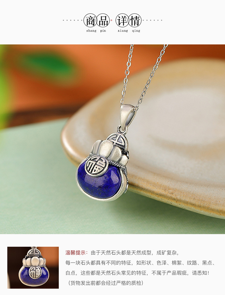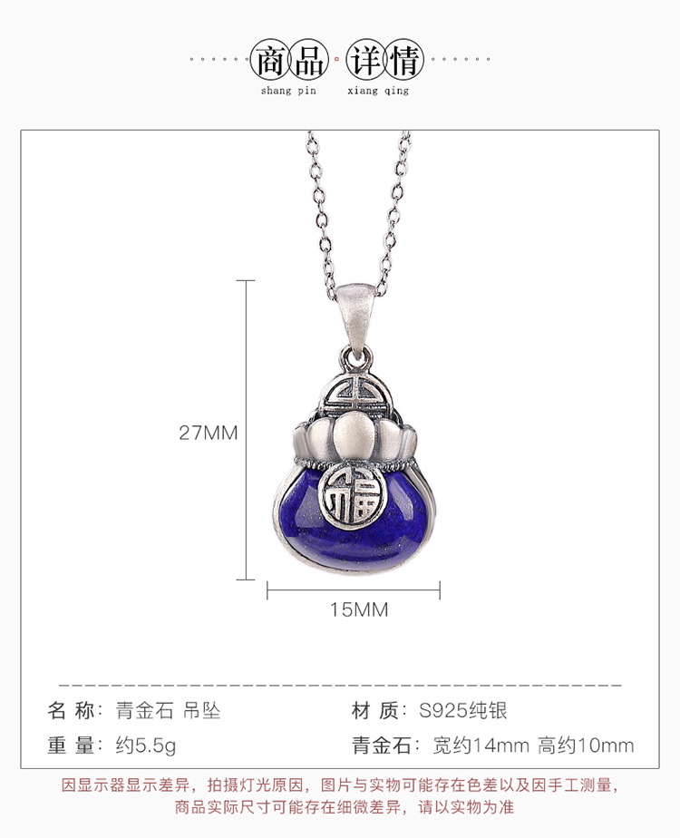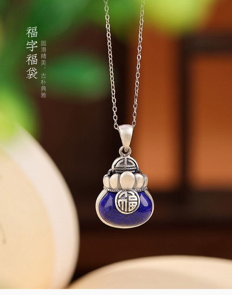 【祥云福袋】S925银青金石福字钱袋吊坠【CW-DZ06022】