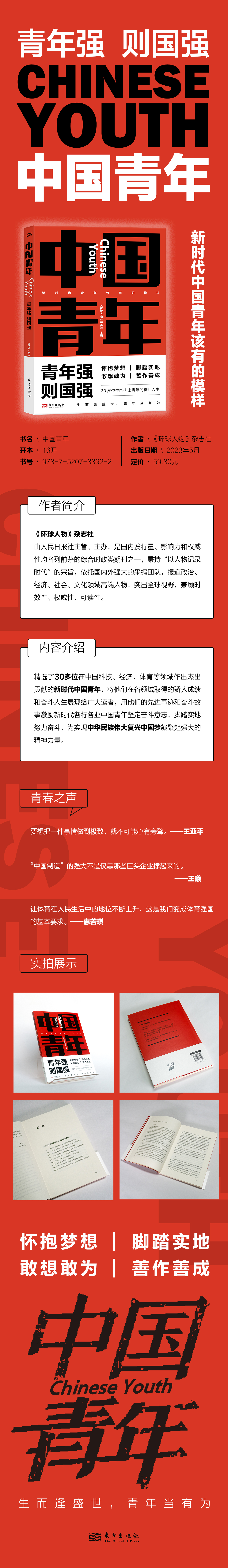 中国青年:青年强 则国强 新时代中国青年邢立达 成蒙 王亚平 叶聪 惠若琪 傅园慧 王曦 《环球人物》杂志社主编 官方正版