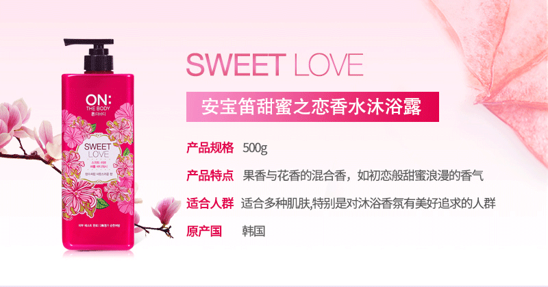 韩国LG安宝笛香水型沐浴露甜蜜+快乐组合500ml沐浴乳洗护