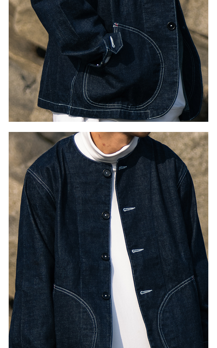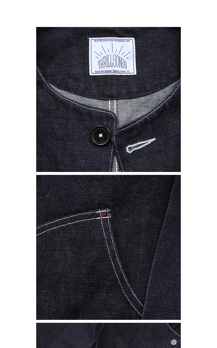 Thrillsongs/复古赤耳牛仔无领夹克外套