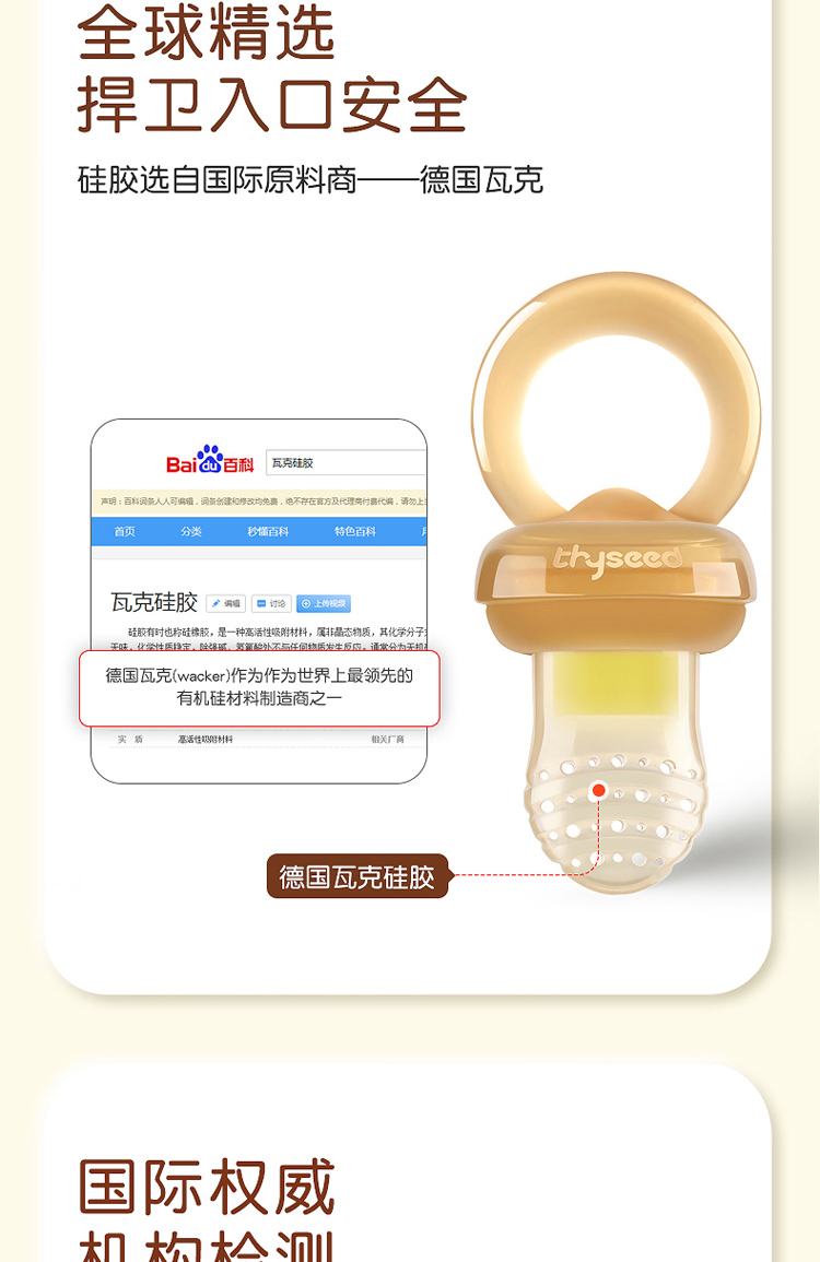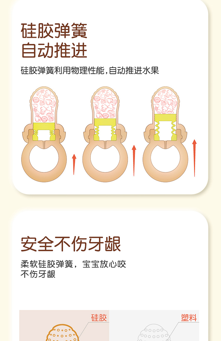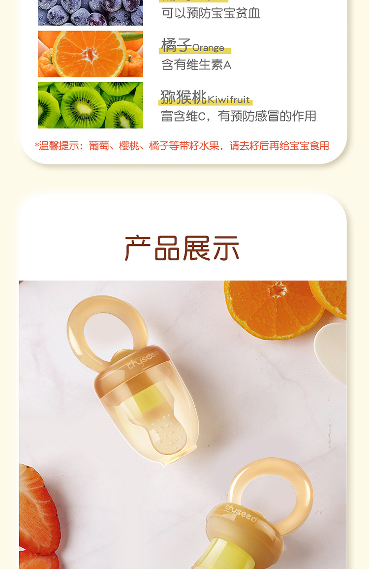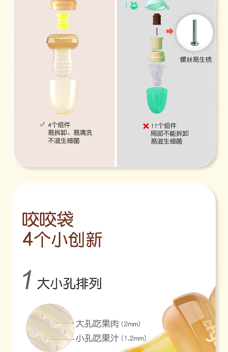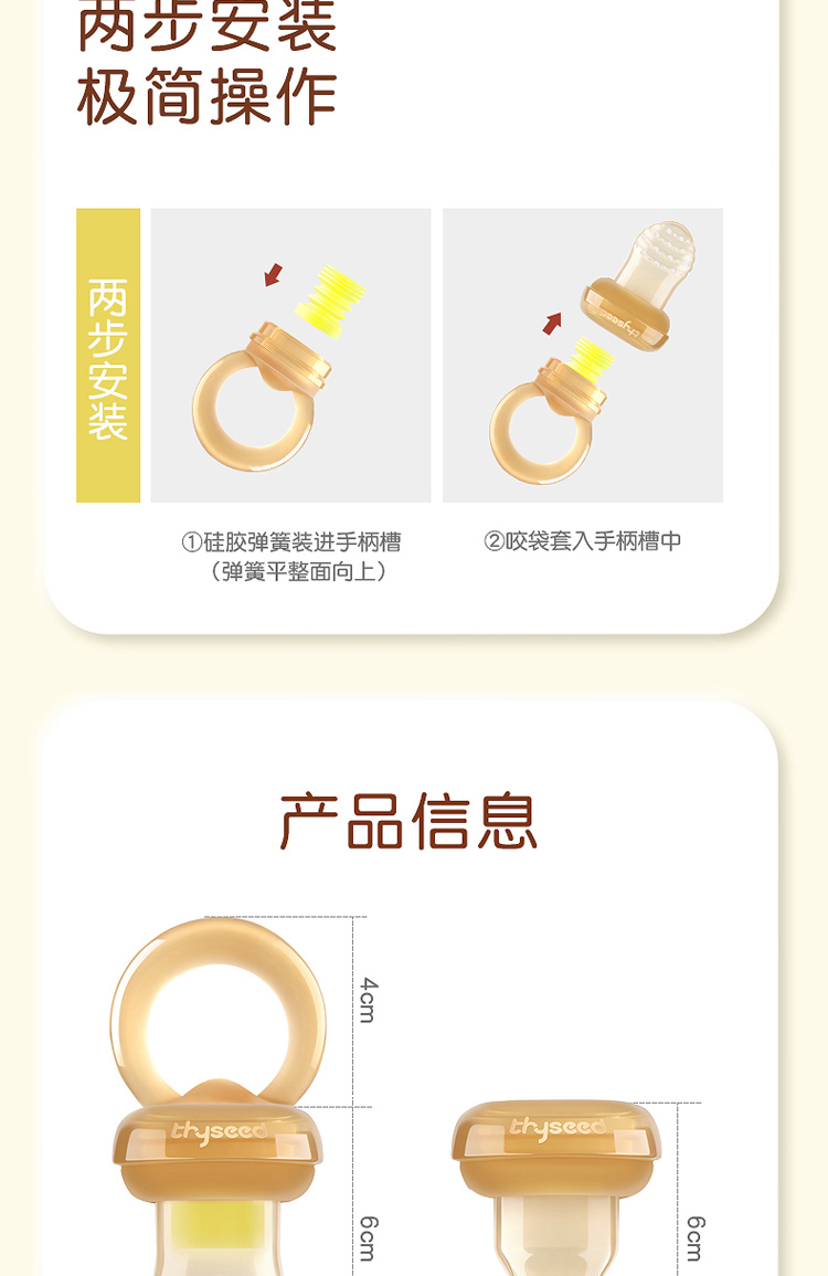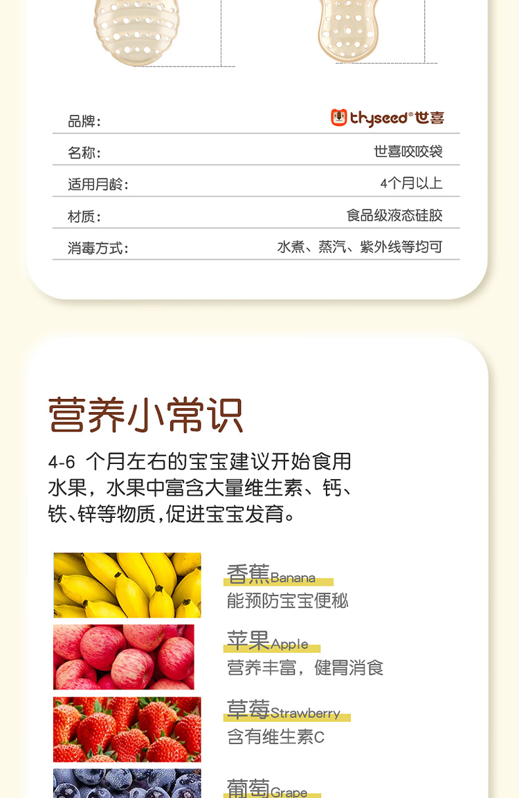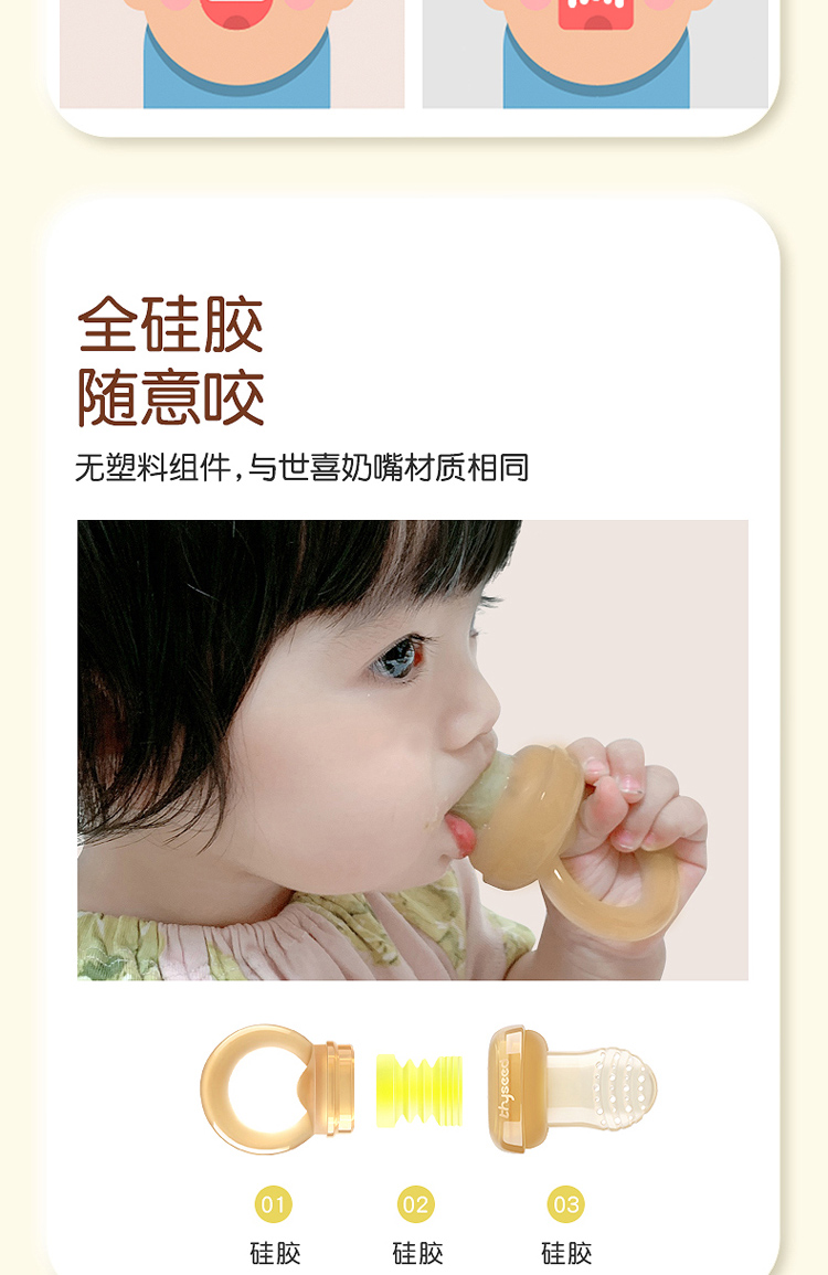 Thyseed世喜自动推进宝宝儿童硅胶咬咬乐食物咬咬袋组件少易清洗