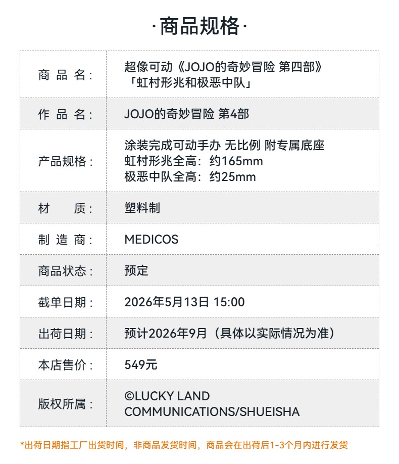 【GSC预售定金】超像可动《JOJO的奇妙冒险 第四部》 「虹村形兆和极恶中队」