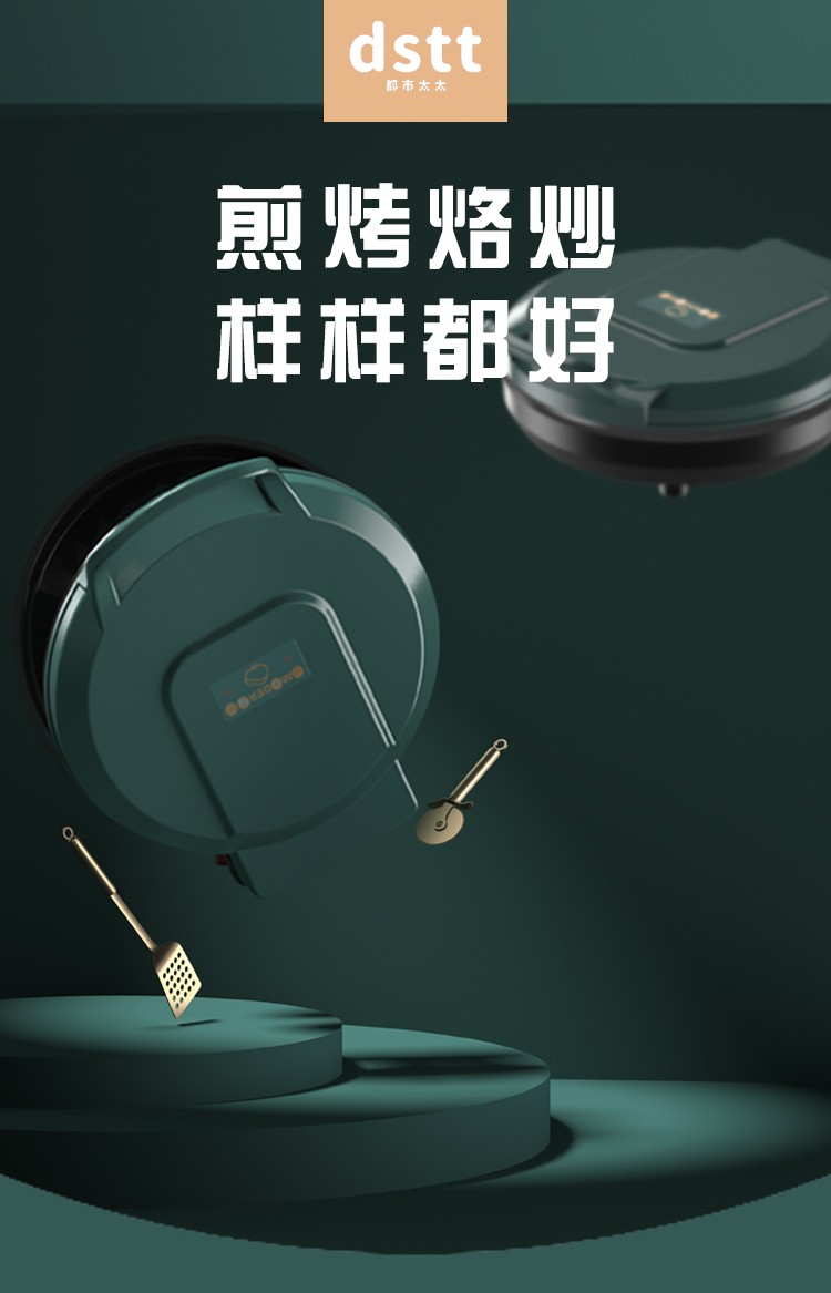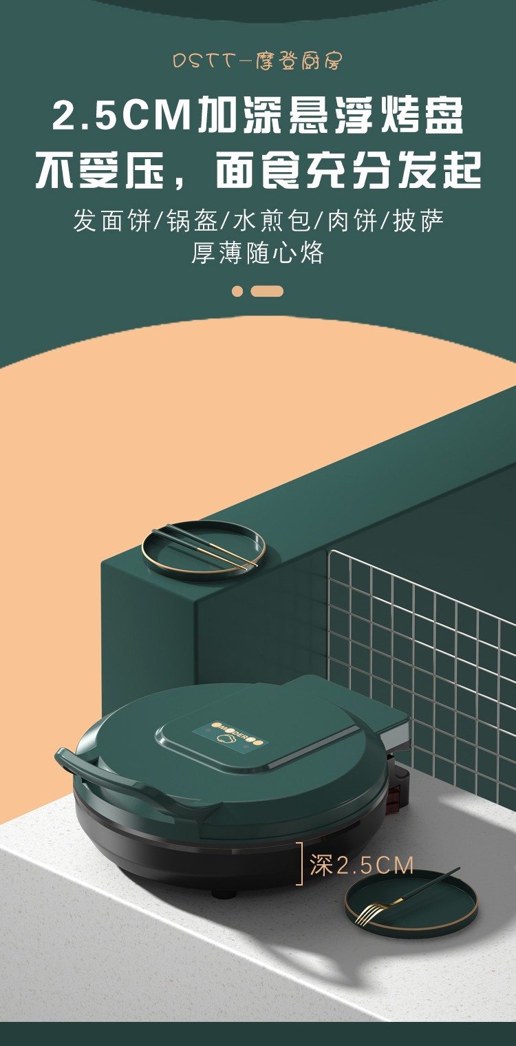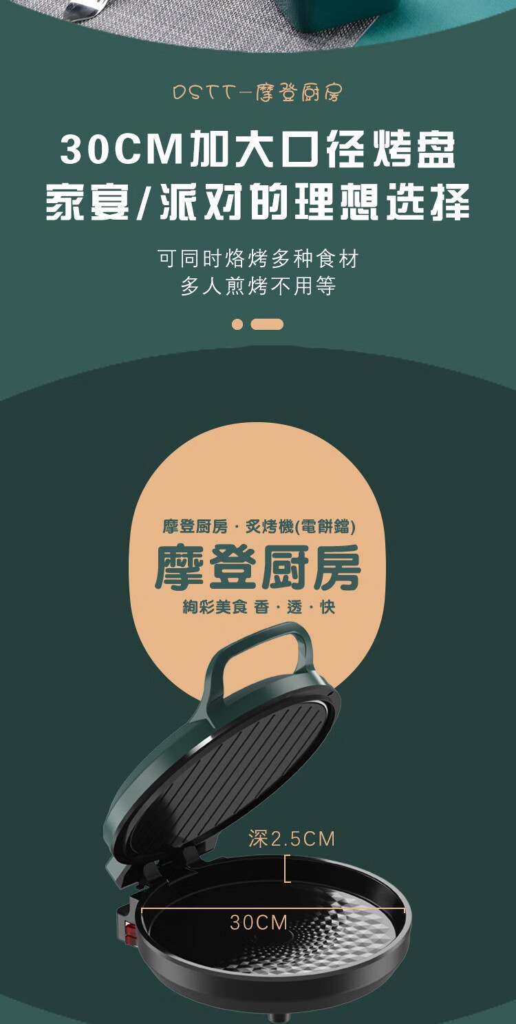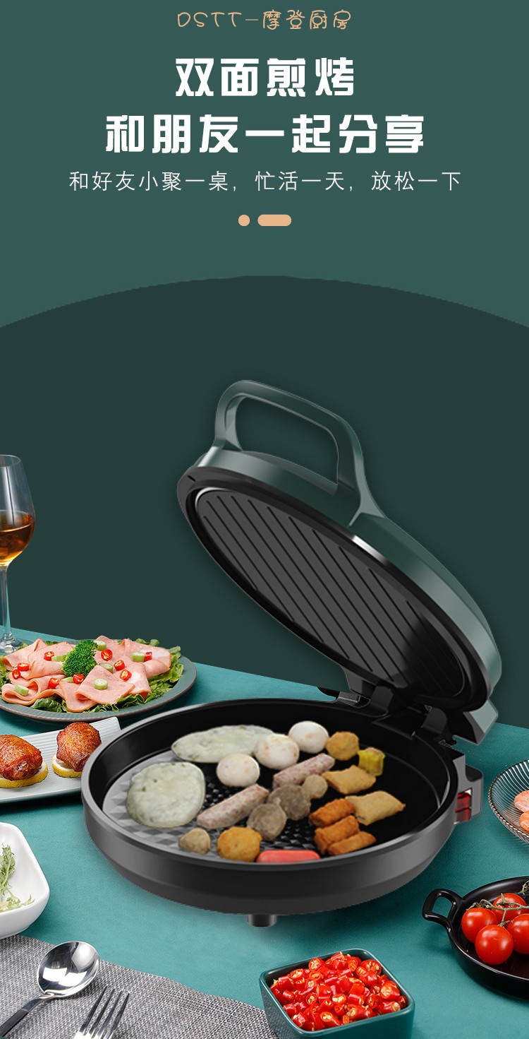 都市太太(DStt)_都市太太摩登厨房炙烤机电饼档家用双面加热烙饼锅自动断电加大加深煎饼机_松花绿