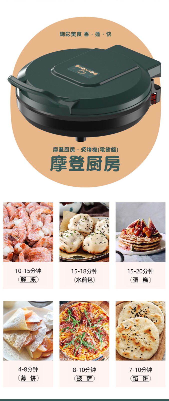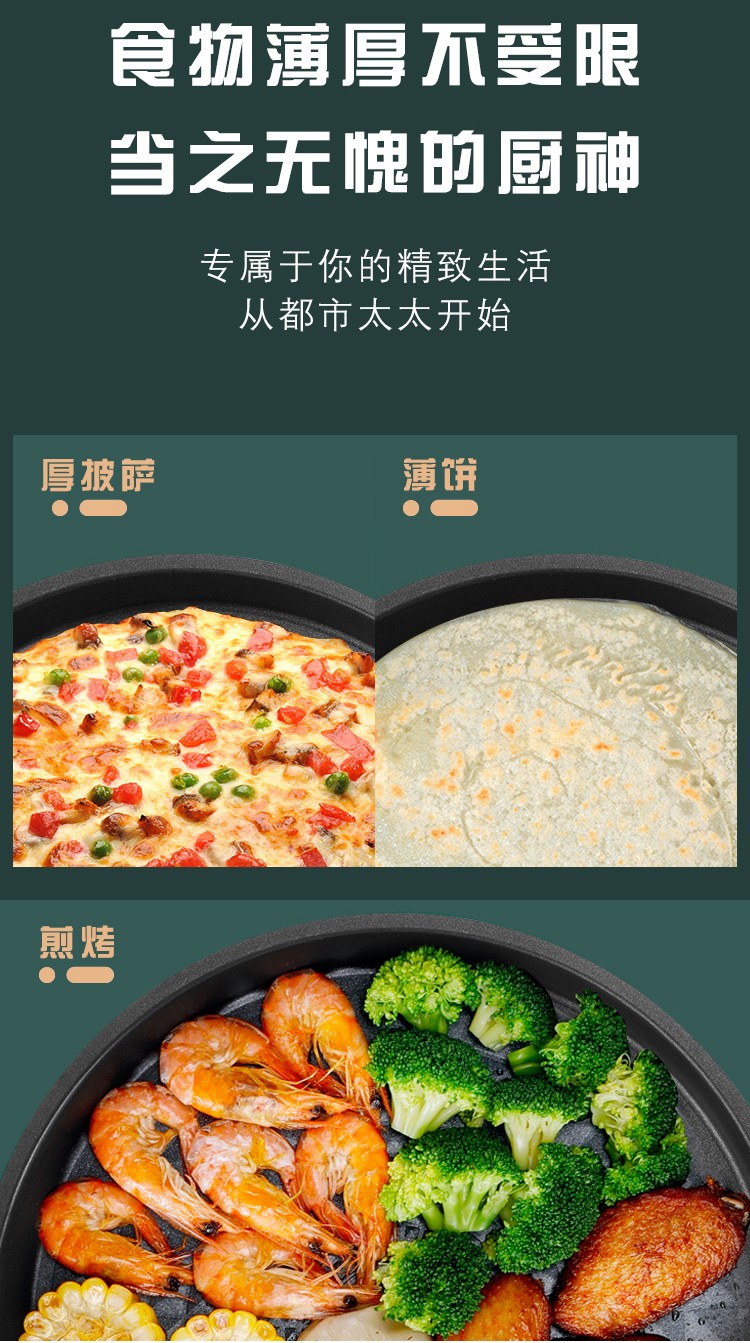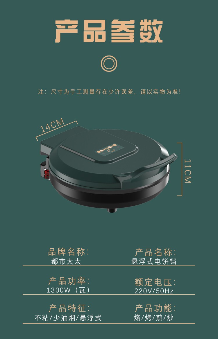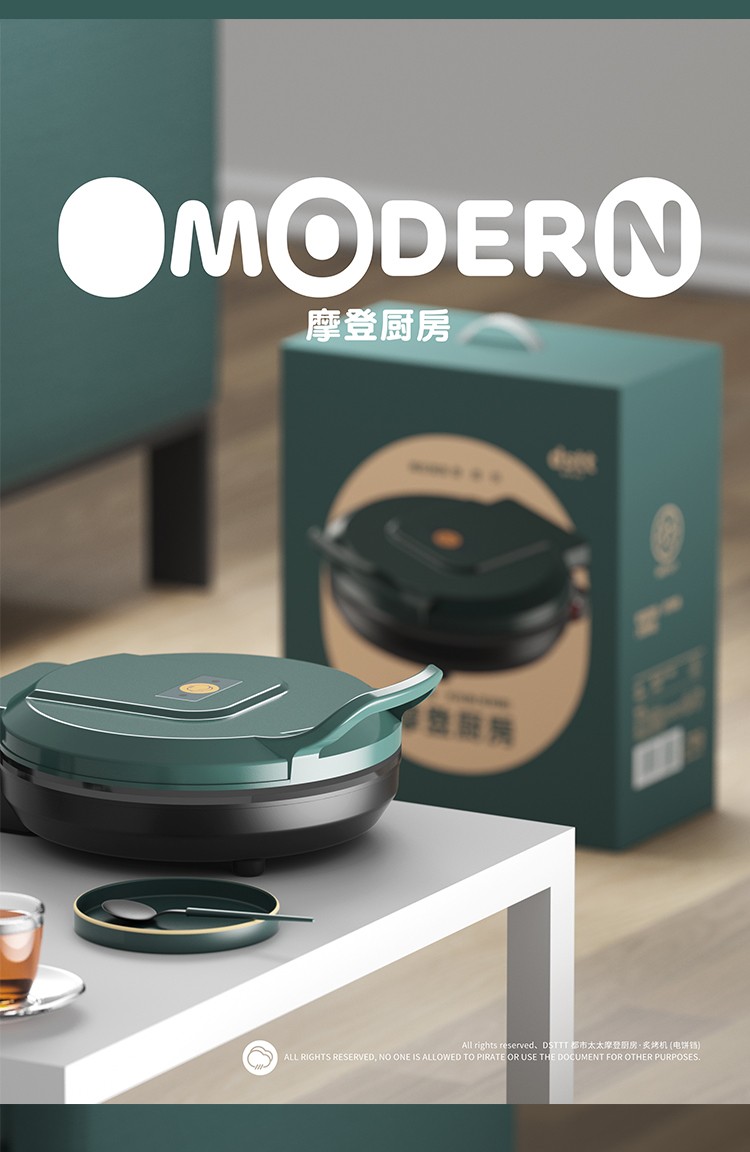 都市太太(DStt)_都市太太摩登厨房炙烤机电饼档家用双面加热烙饼锅自动断电加大加深煎饼机_松花绿