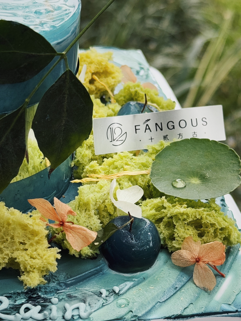 蛋糕表面呈现出富有韵律的波纹肌理,