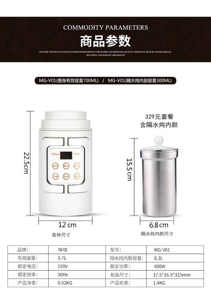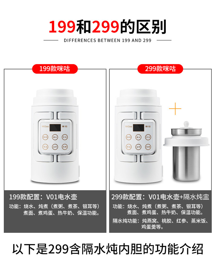 咪咕(MiGoo)旅行烧水壶电热水壶多功能电煮壶110V电压专用