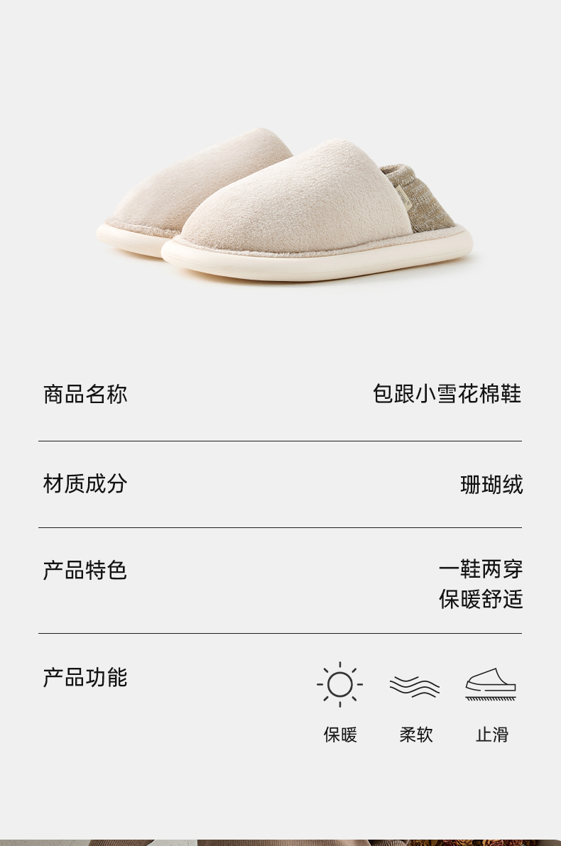 优调 包跟小雪花棉拖鞋 UDT1458 一鞋两穿 亲肤暖绒,御寒锁温不闷脚,止滑大底,安全不易摔,弹力后跟,防掉不勒脚