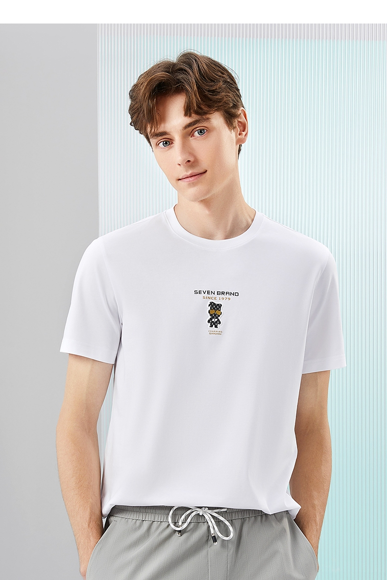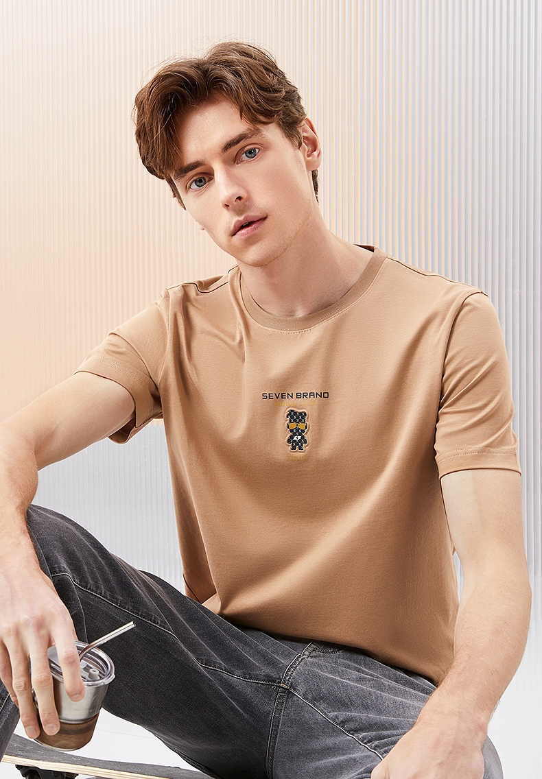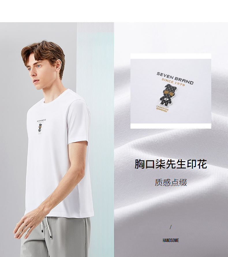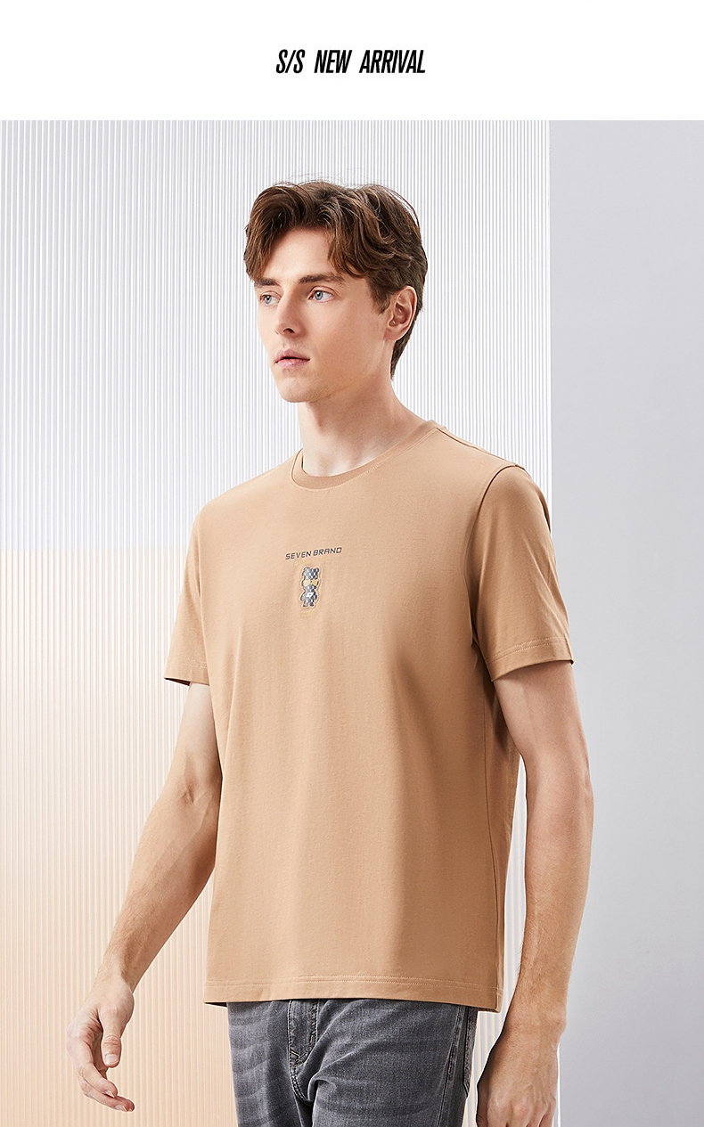 【冰藻泥】柒牌短袖T恤男2024夏季新品柒先生印花圆领休闲体恤衫 126T72280