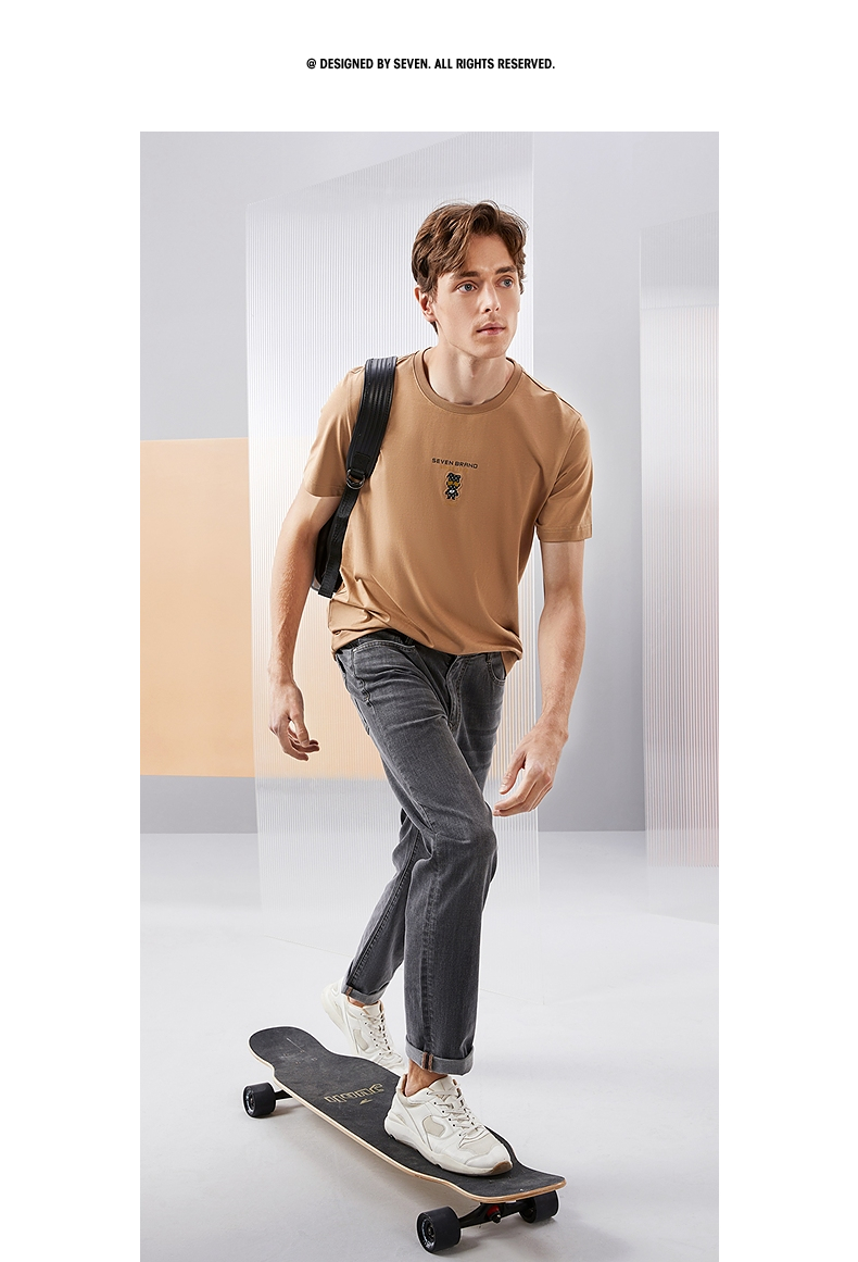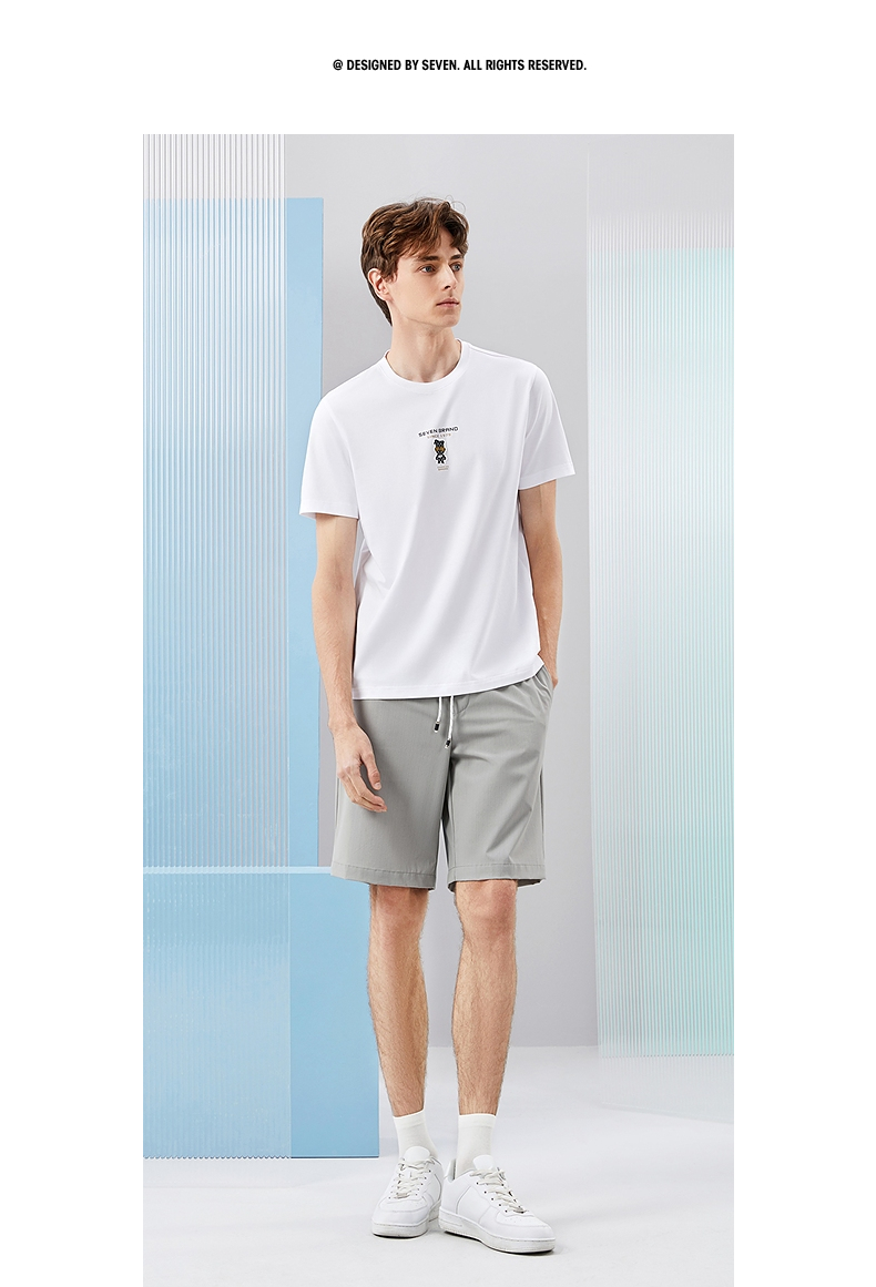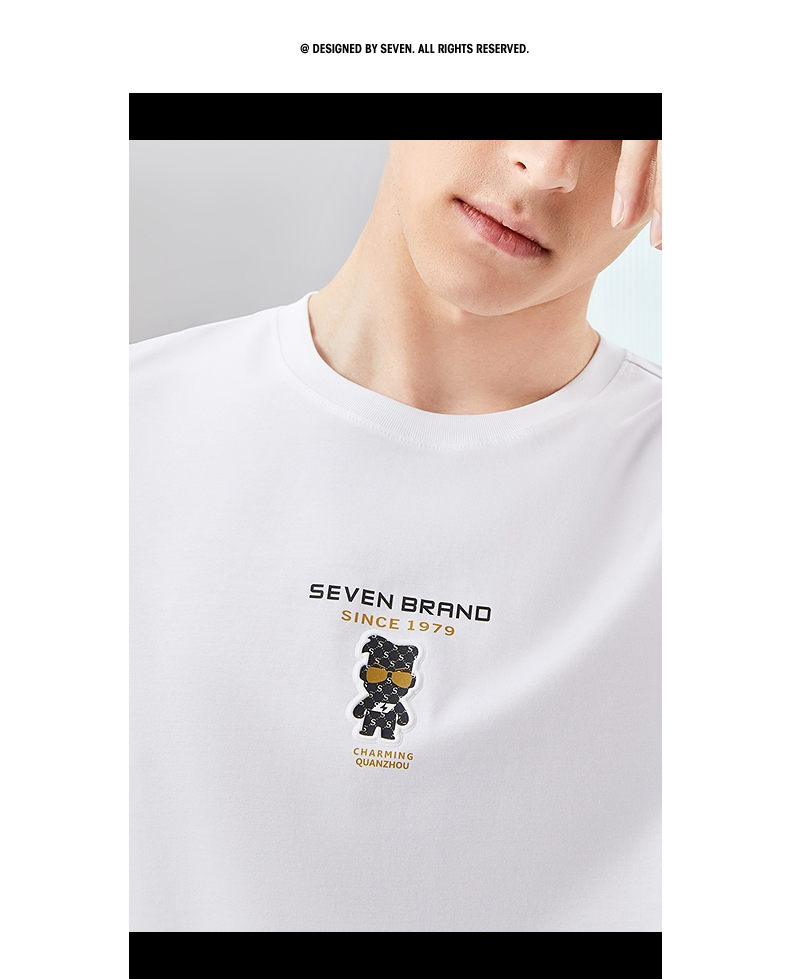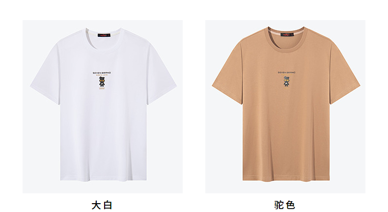 【冰藻泥】柒牌短袖T恤男2024夏季新品柒先生印花圆领休闲体恤衫 126T72280