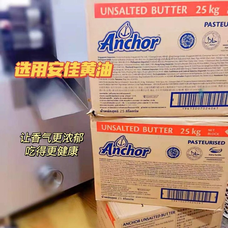 为了饼皮更酥松,我们用昂贵的安佳黄油替代了普通的起酥油,让黄油香气更浓郁,吃得更健康。