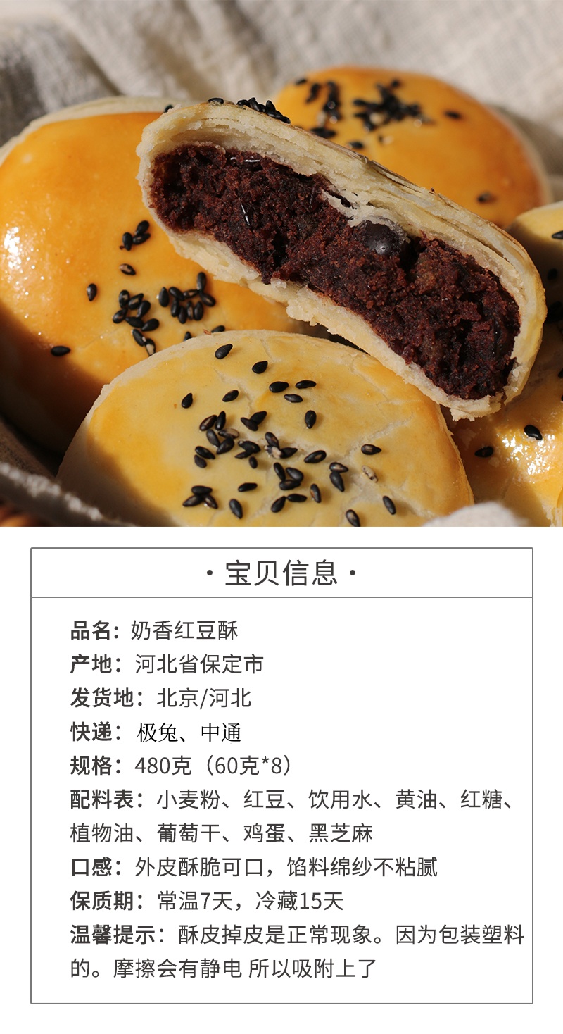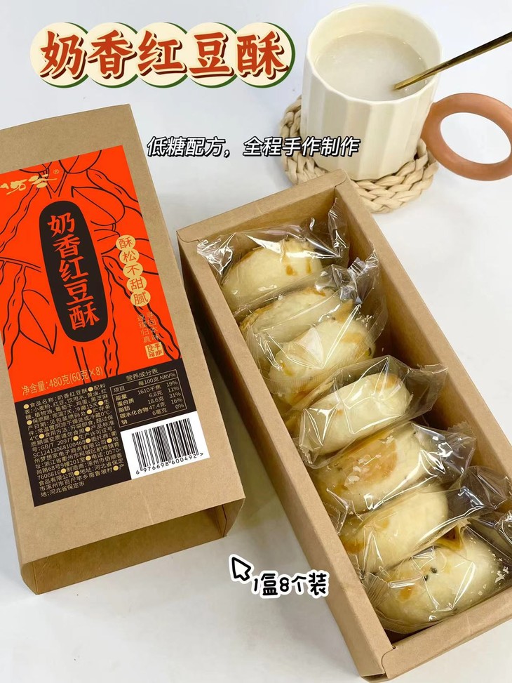 【奶香红豆酥】一盒里面有8枚哦,每包里面一枚,独立包装干净卫生。