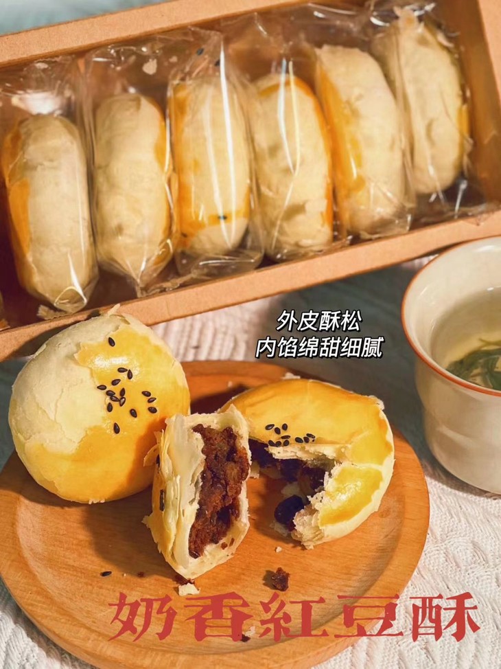 吃起来,每一口都是满满的奶香和红豆味,酸甜可口,酥到掉渣,绝对让你回味无穷!