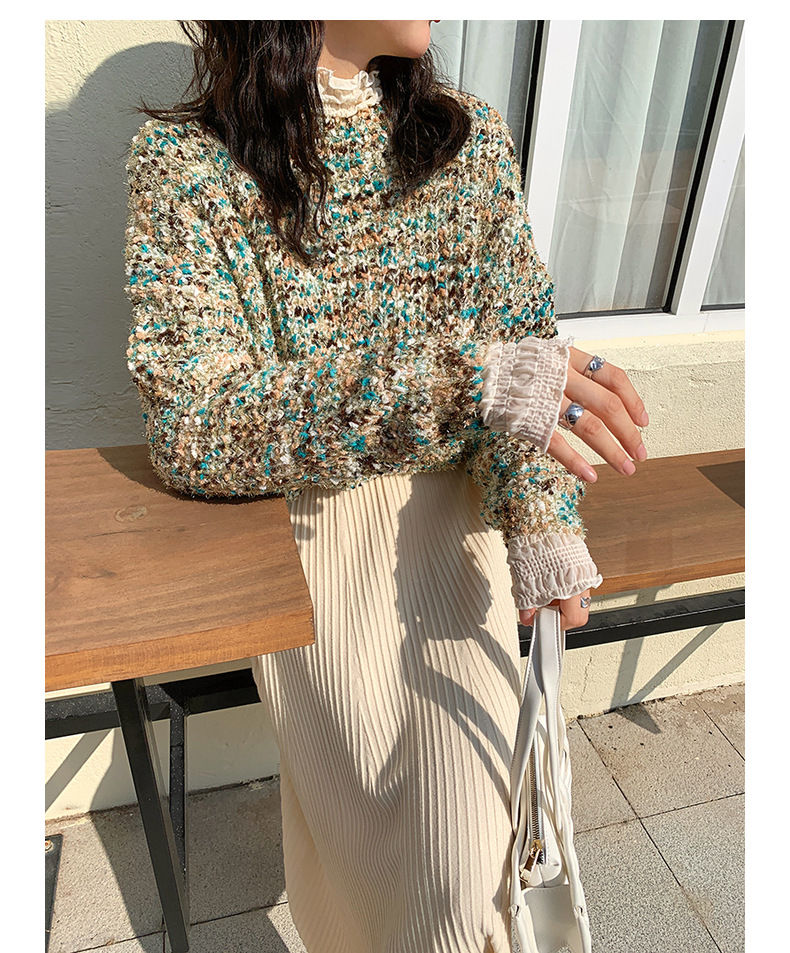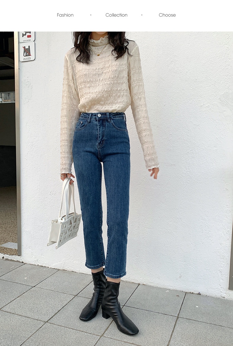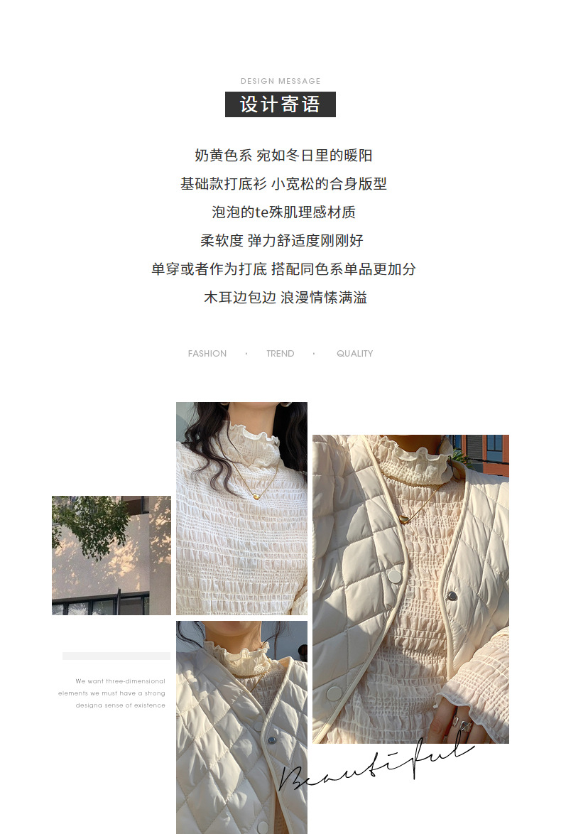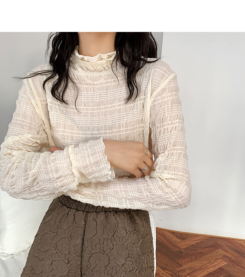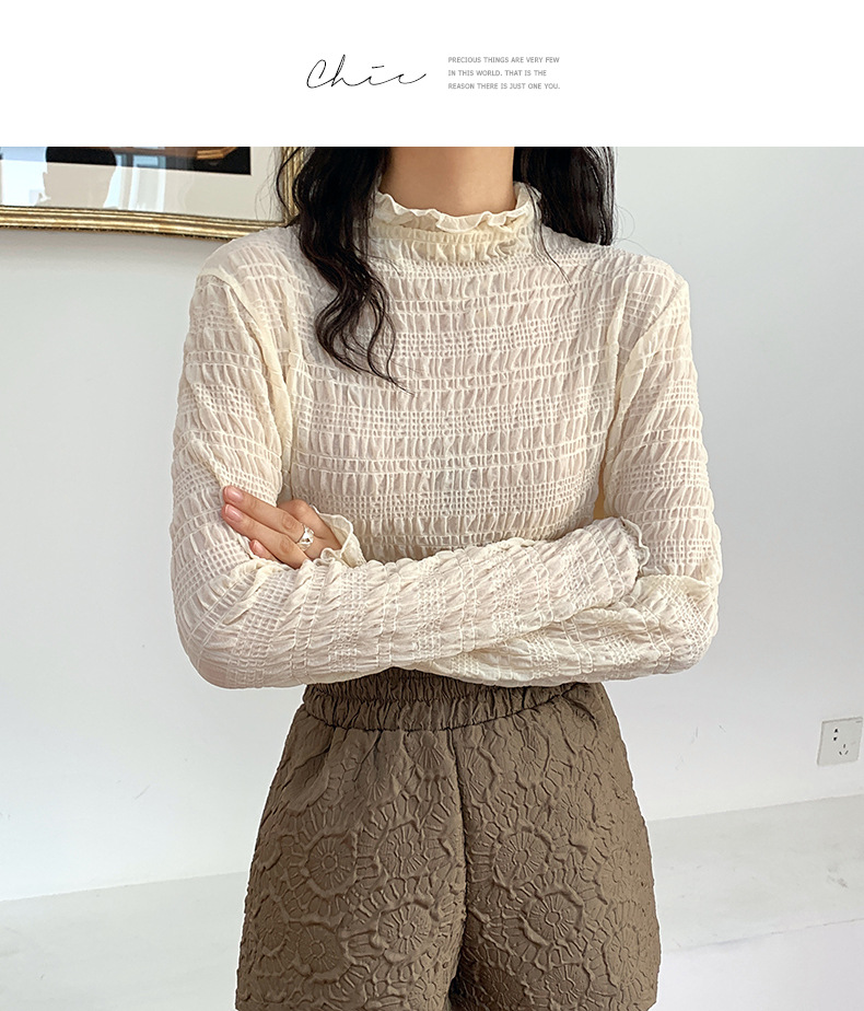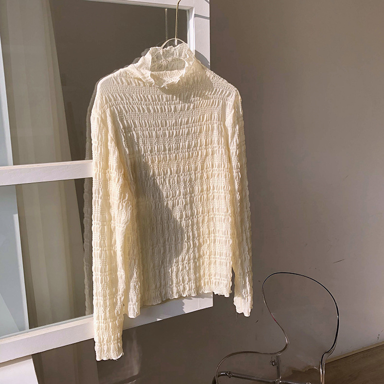 【歌铭】蕾丝高领网纱打底衫女秋冬褶皱肌理感内搭洋气上衣