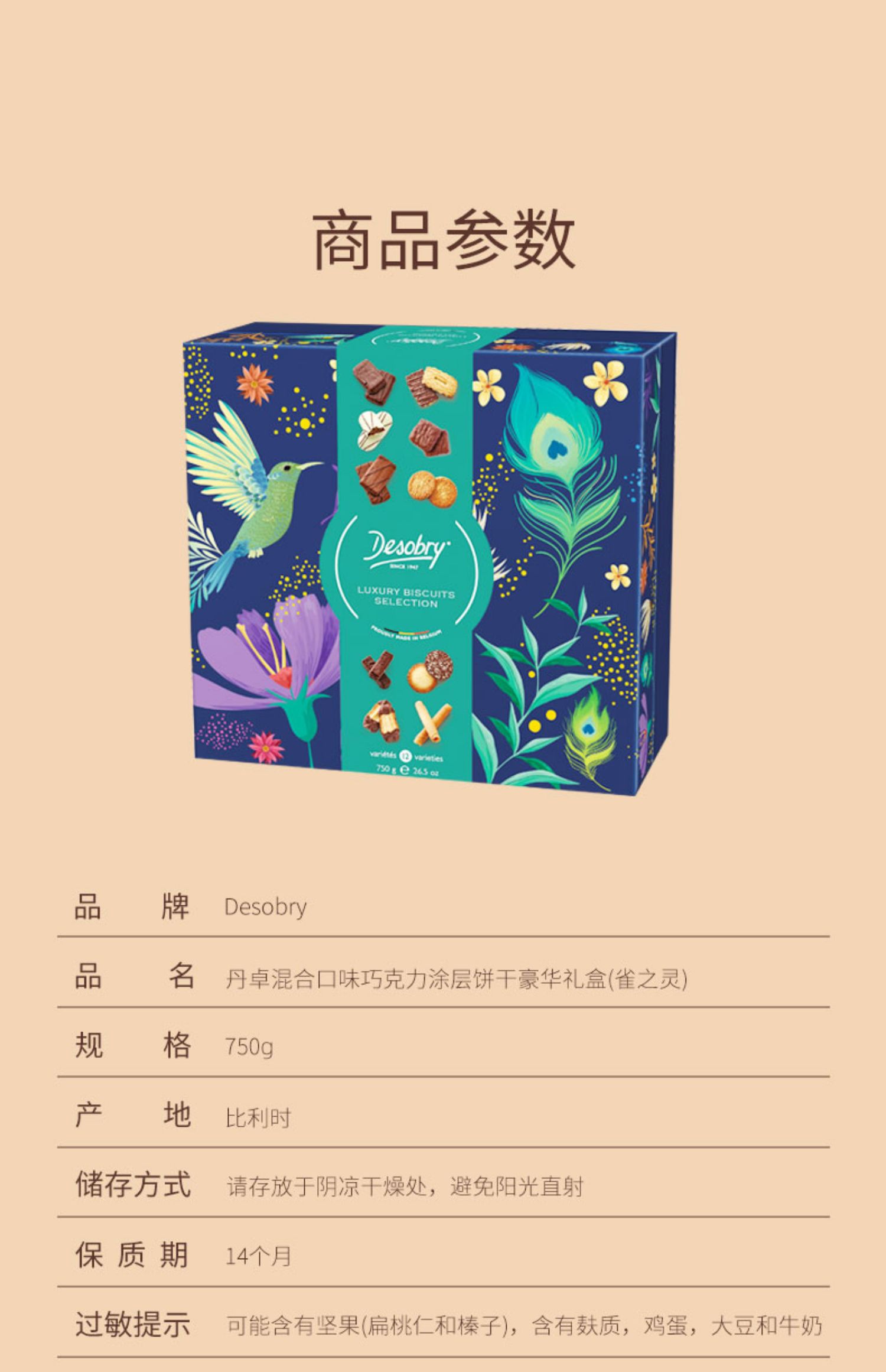 丹卓混合口味巧克力涂层饼干豪华礼盒雀之灵750g/152603 香浓酥脆美妙滋味节日送礼